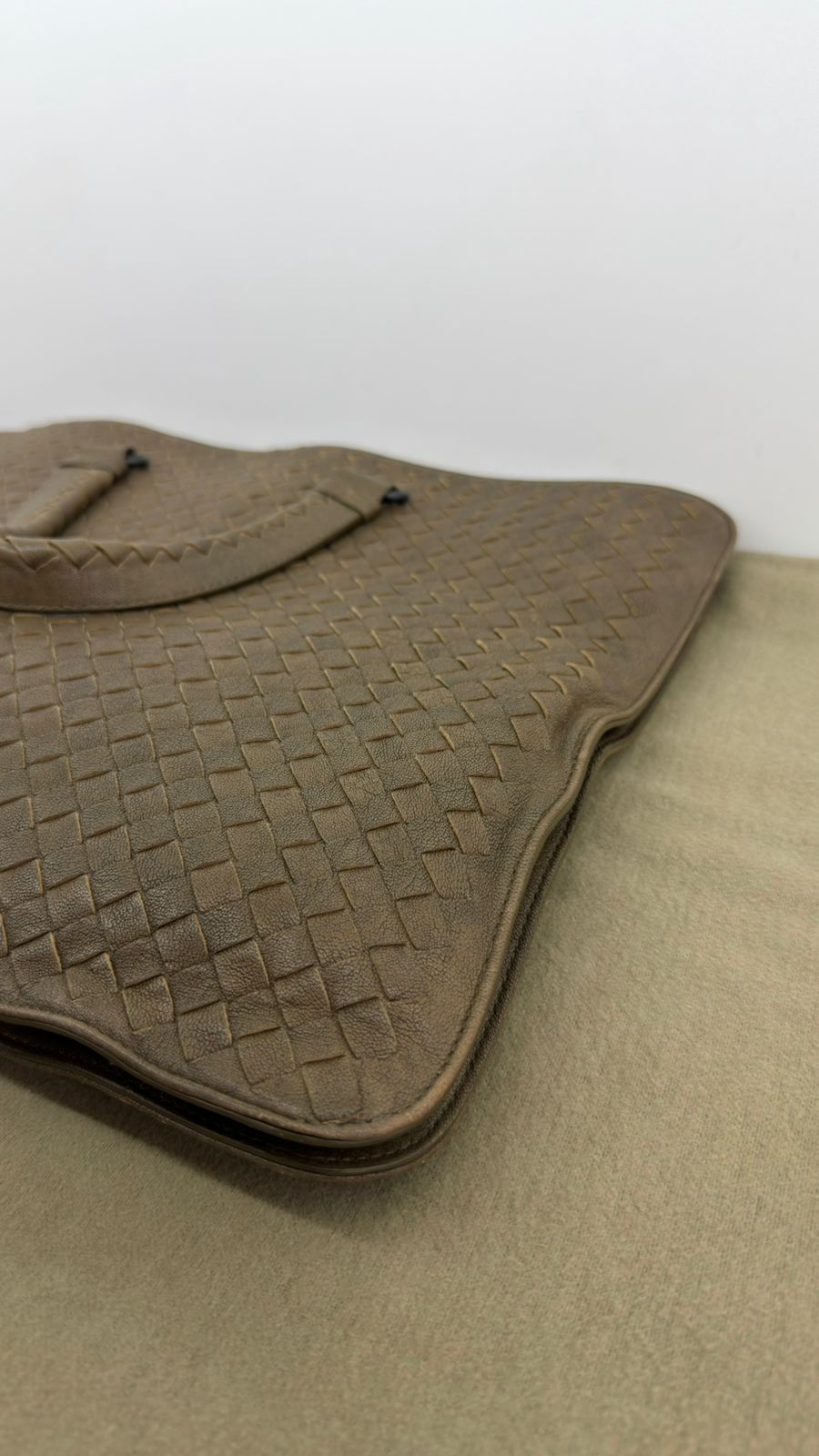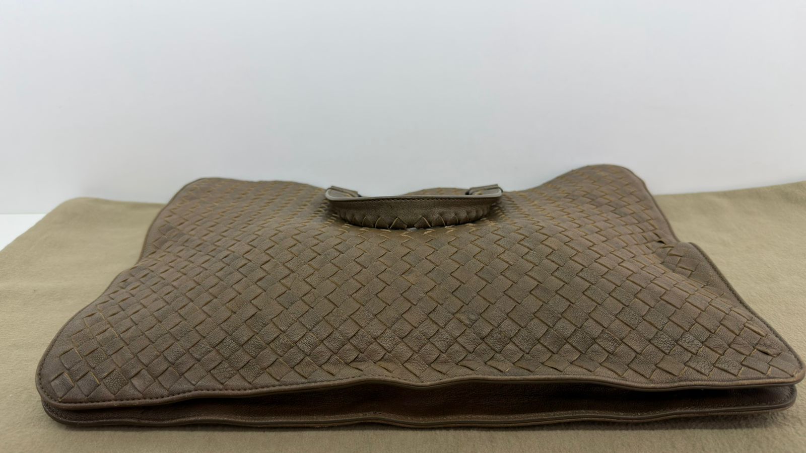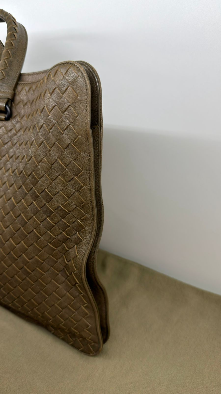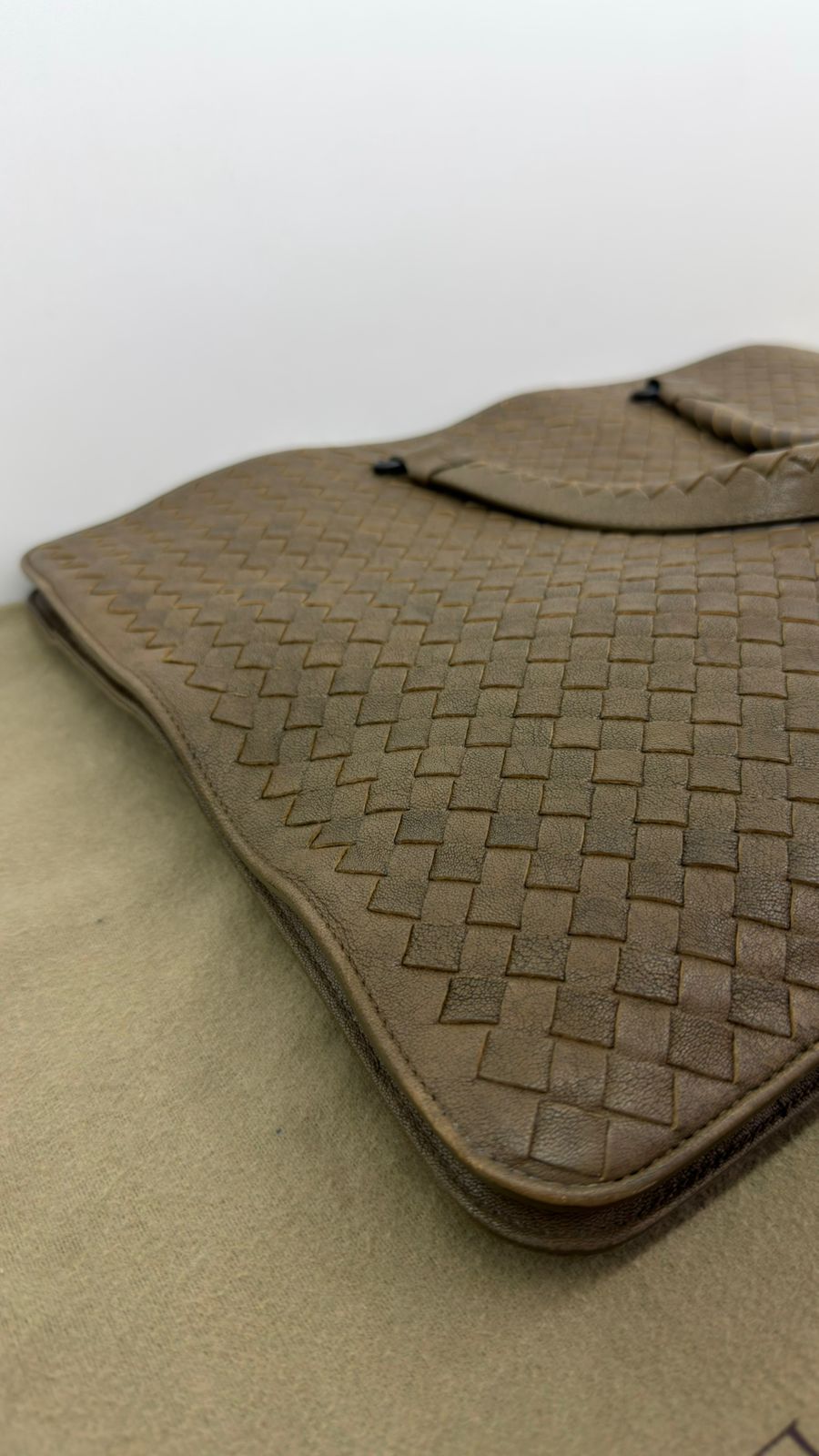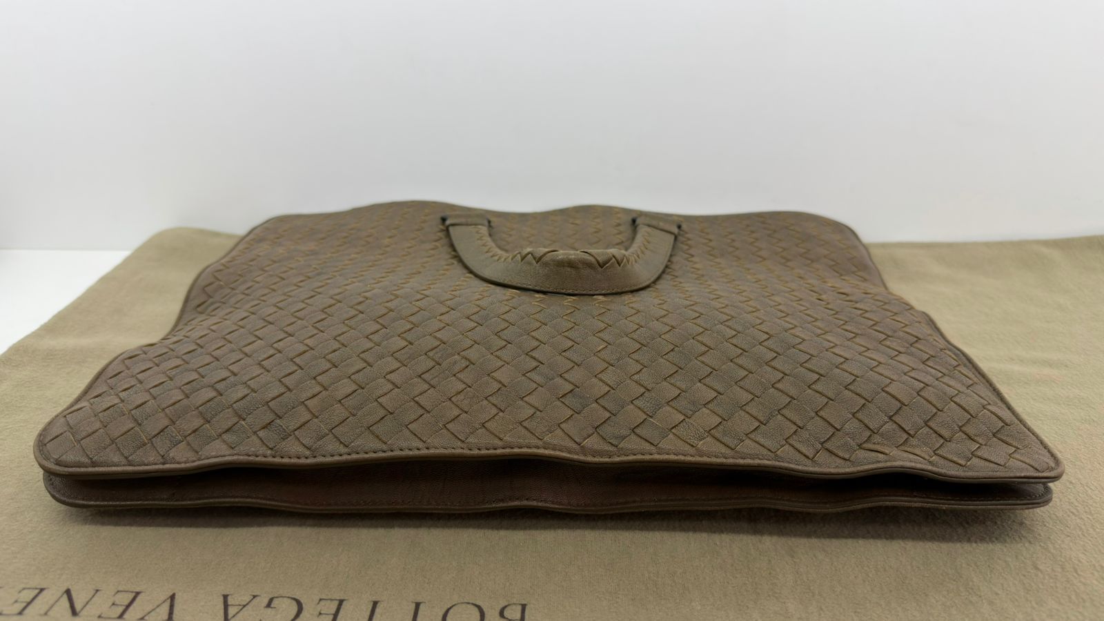 Bolsa Bottega Veneta Intrecciato, confeccionada em couro trançado na cor marrom, com ferragens no dourado, alças duplas de mãos, alça longa de ombro, parte superior aberta, compartimento espaçoso com bolsos planos e com fecho em zíper, cabe notebook. Uma ótima escolha para o dia a dia.