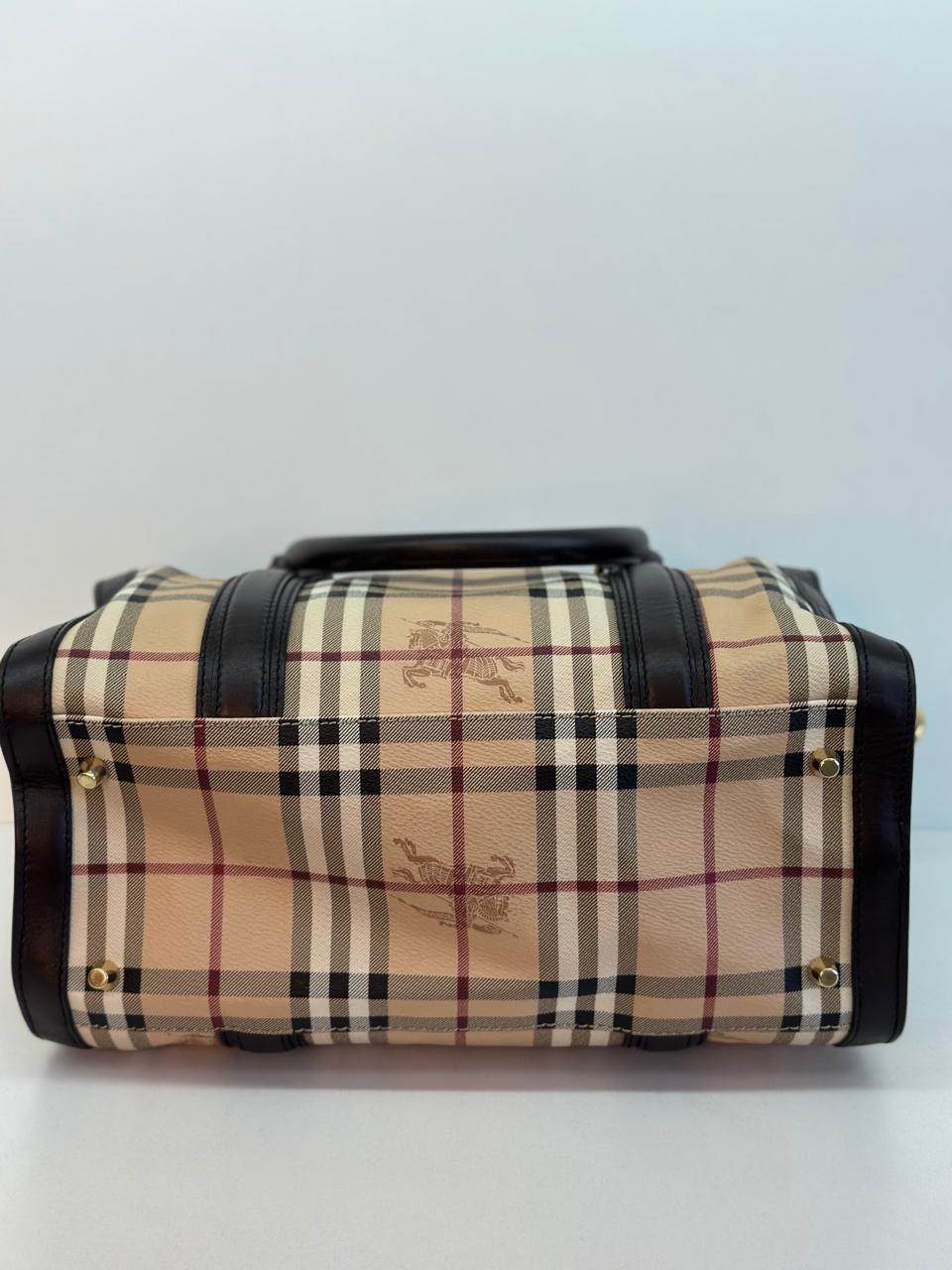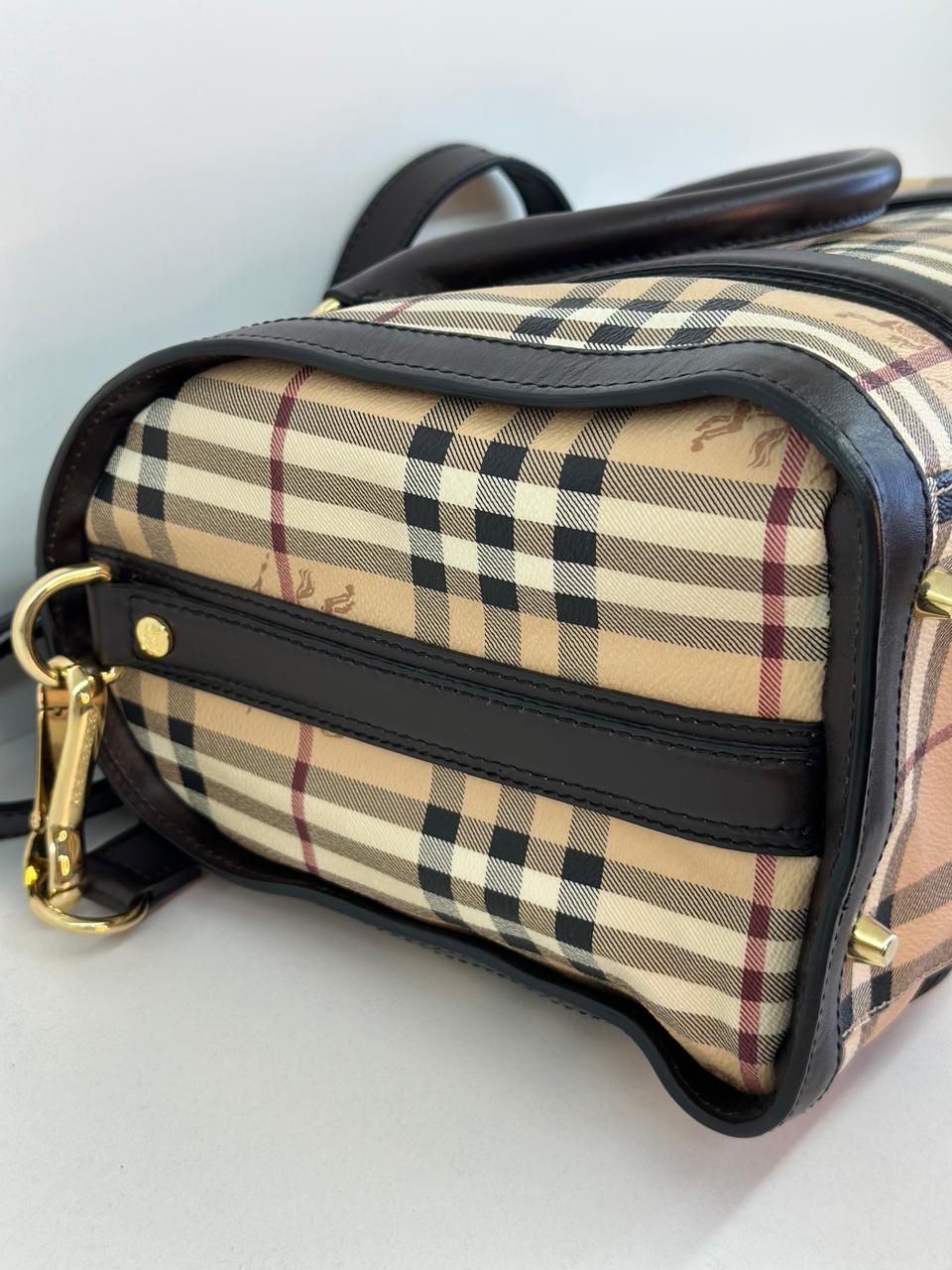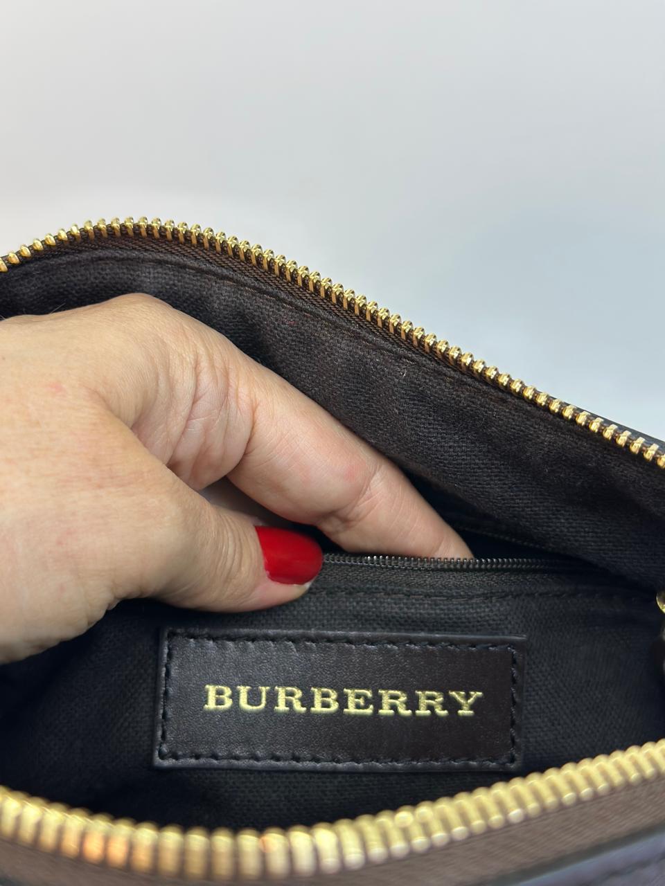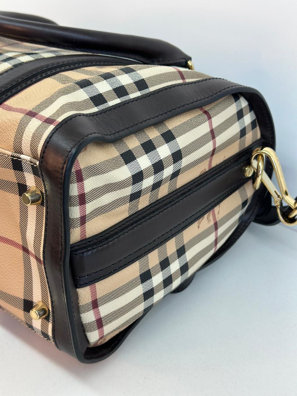A bolsa Burberry Alchester é confeccionada no canvas xadrez da marca, com acabamento em couro preto, possui fechamento principal por zíper, ferragens no dourado, compartimento interno único com forro em tecido, possui um bolso interno com fecho em zíper. Uma bolsa ideal para o dia a dia, espaçosa sem deixar a elegância de lado.