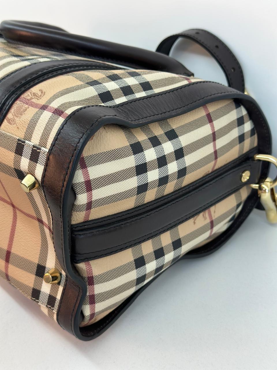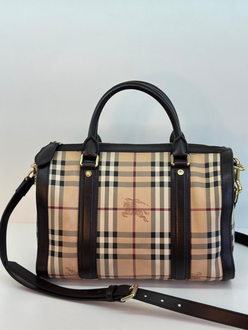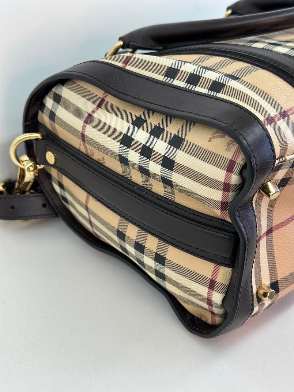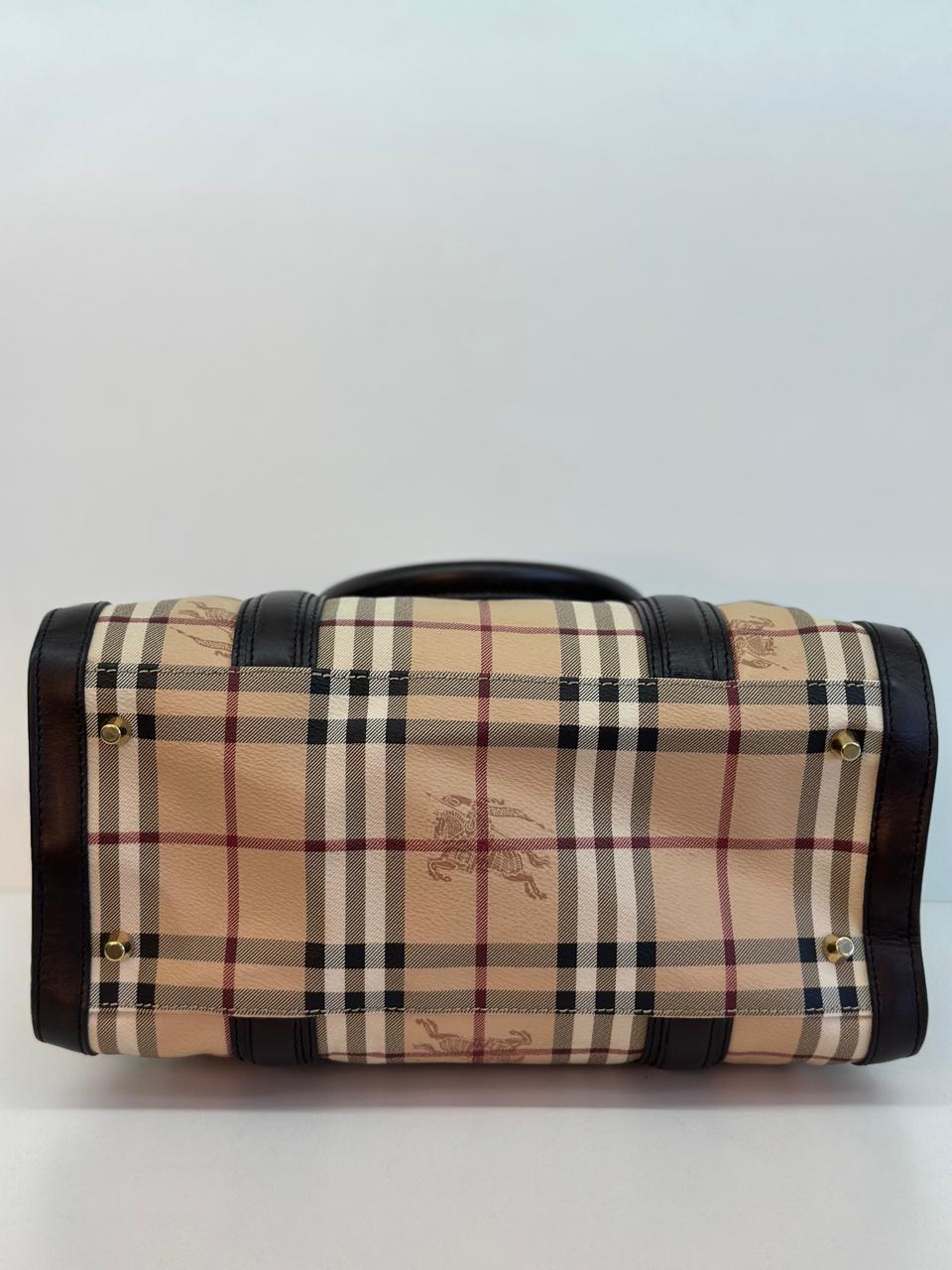 A bolsa Burberry Alchester é confeccionada no canvas xadrez da marca, com acabamento em couro preto, possui fechamento principal por zíper, ferragens no dourado, compartimento interno único com forro em tecido, possui um bolso interno com fecho em zíper. Uma bolsa ideal para o dia a dia, espaçosa sem deixar a elegância de lado.