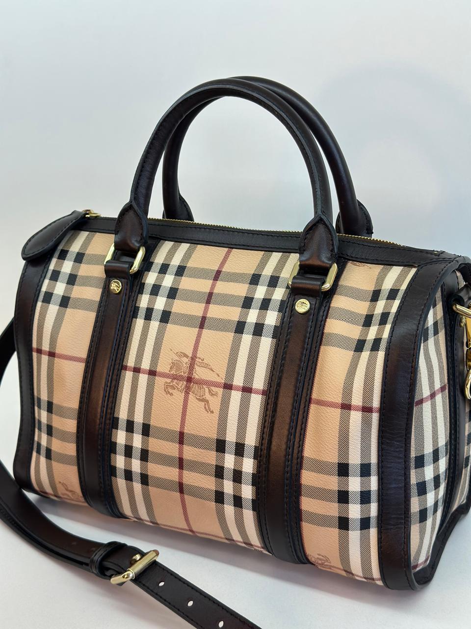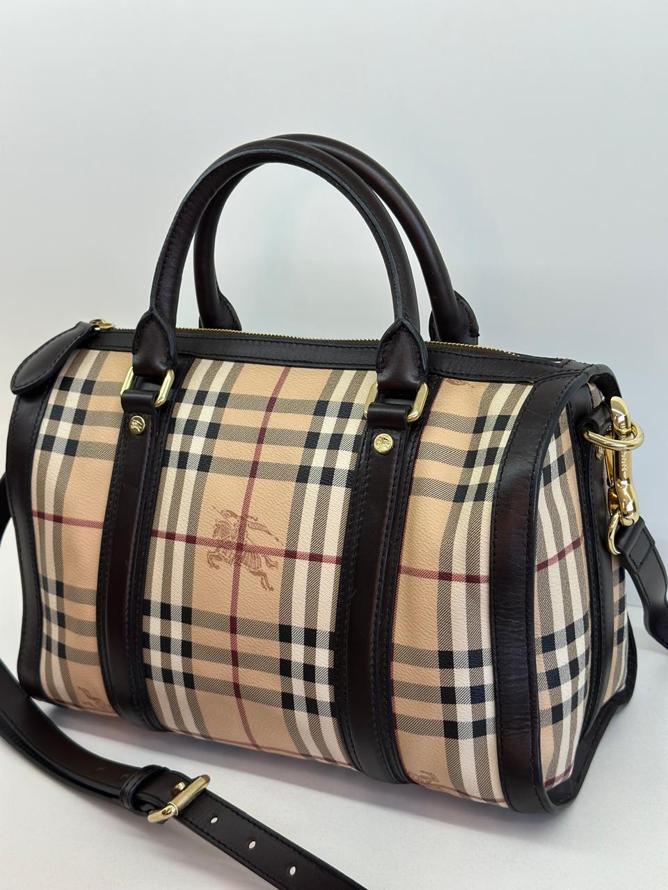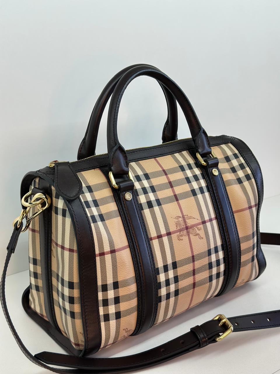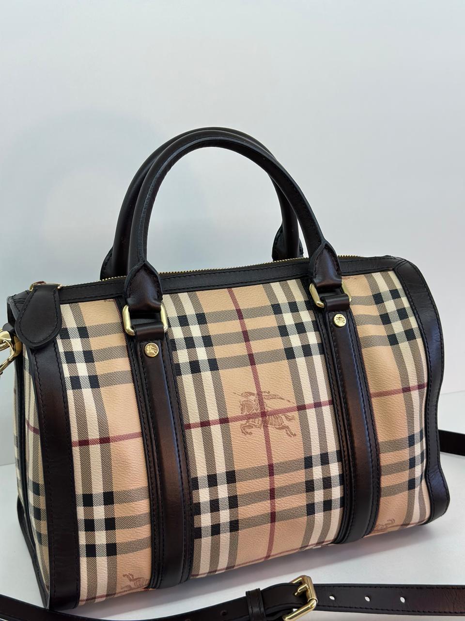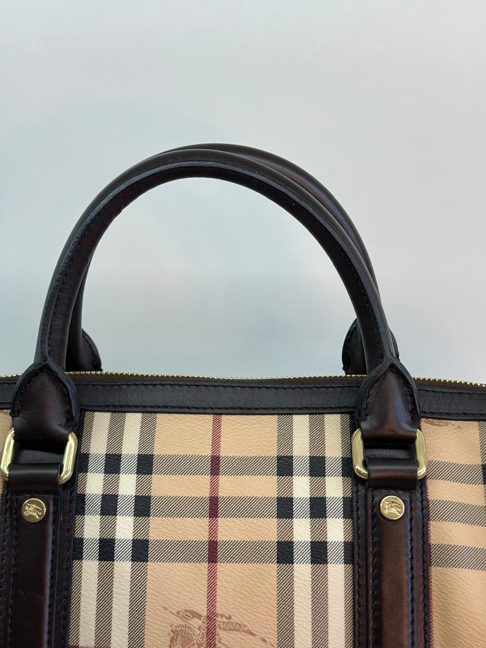 A bolsa Burberry Alchester é confeccionada no canvas xadrez da marca, com acabamento em couro preto, possui fechamento principal por zíper, ferragens no dourado, compartimento interno único com forro em tecido, possui um bolso interno com fecho em zíper. Uma bolsa ideal para o dia a dia, espaçosa sem deixar a elegância de lado.