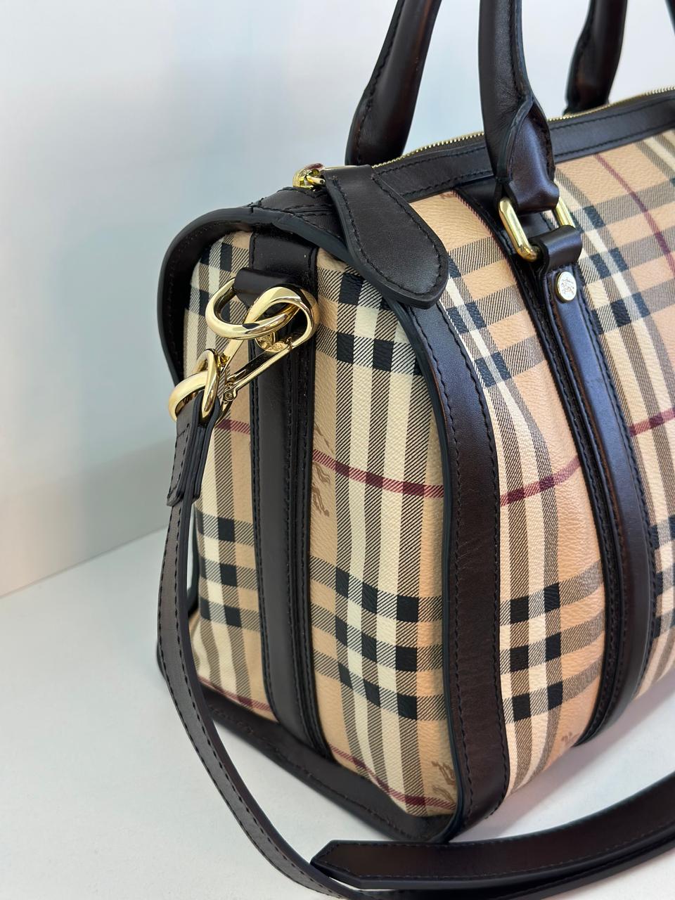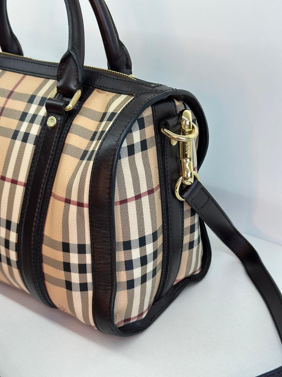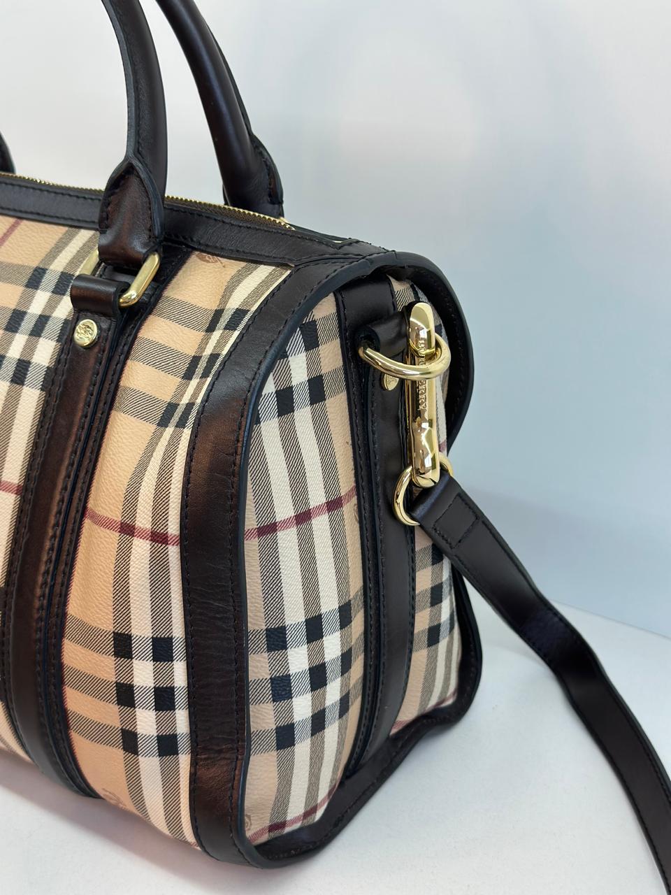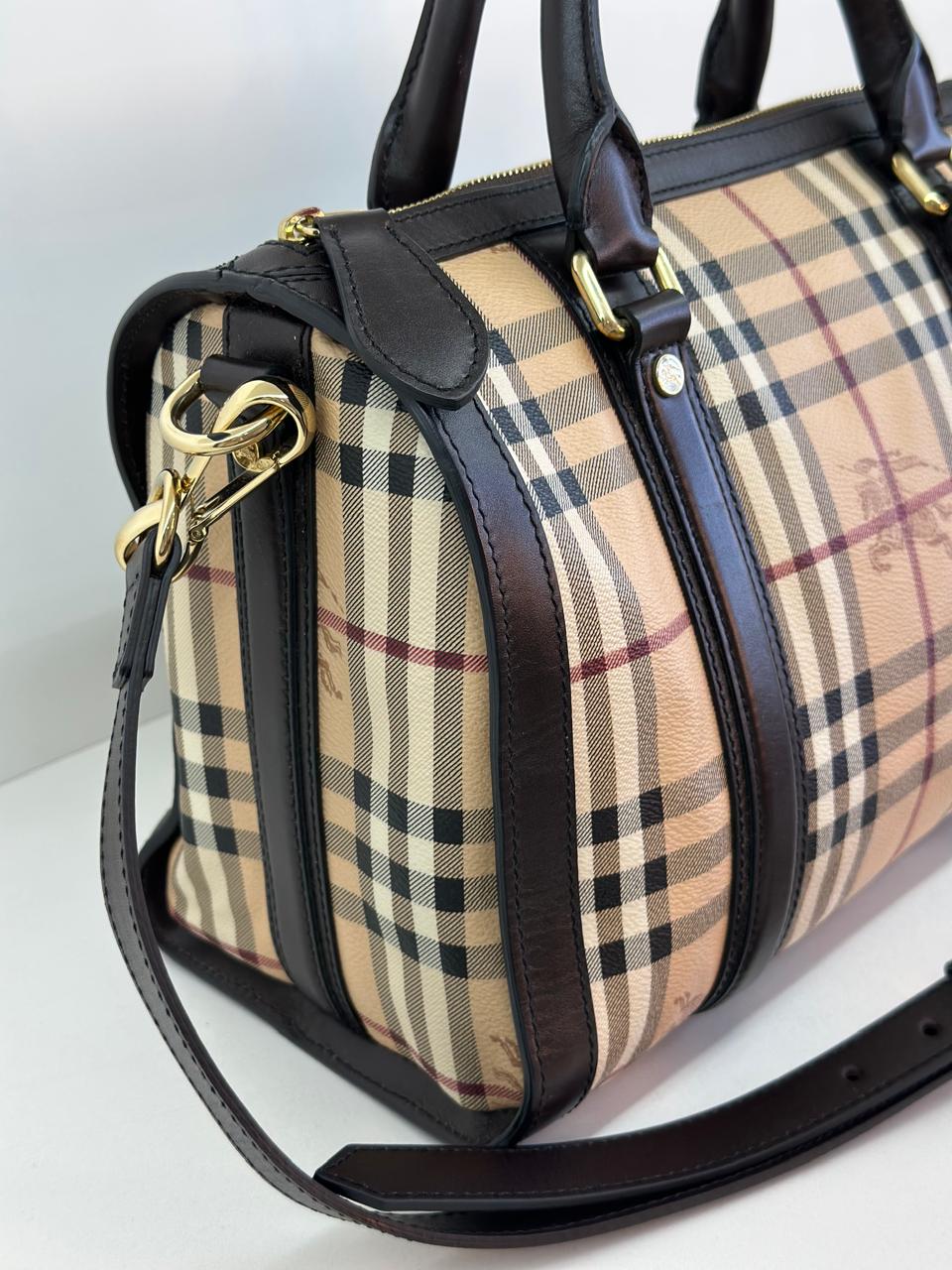 A bolsa Burberry Alchester é confeccionada no canvas xadrez da marca, com acabamento em couro preto, possui fechamento principal por zíper, ferragens no dourado, compartimento interno único com forro em tecido, possui um bolso interno com fecho em zíper. Uma bolsa ideal para o dia a dia, espaçosa sem deixar a elegância de lado.