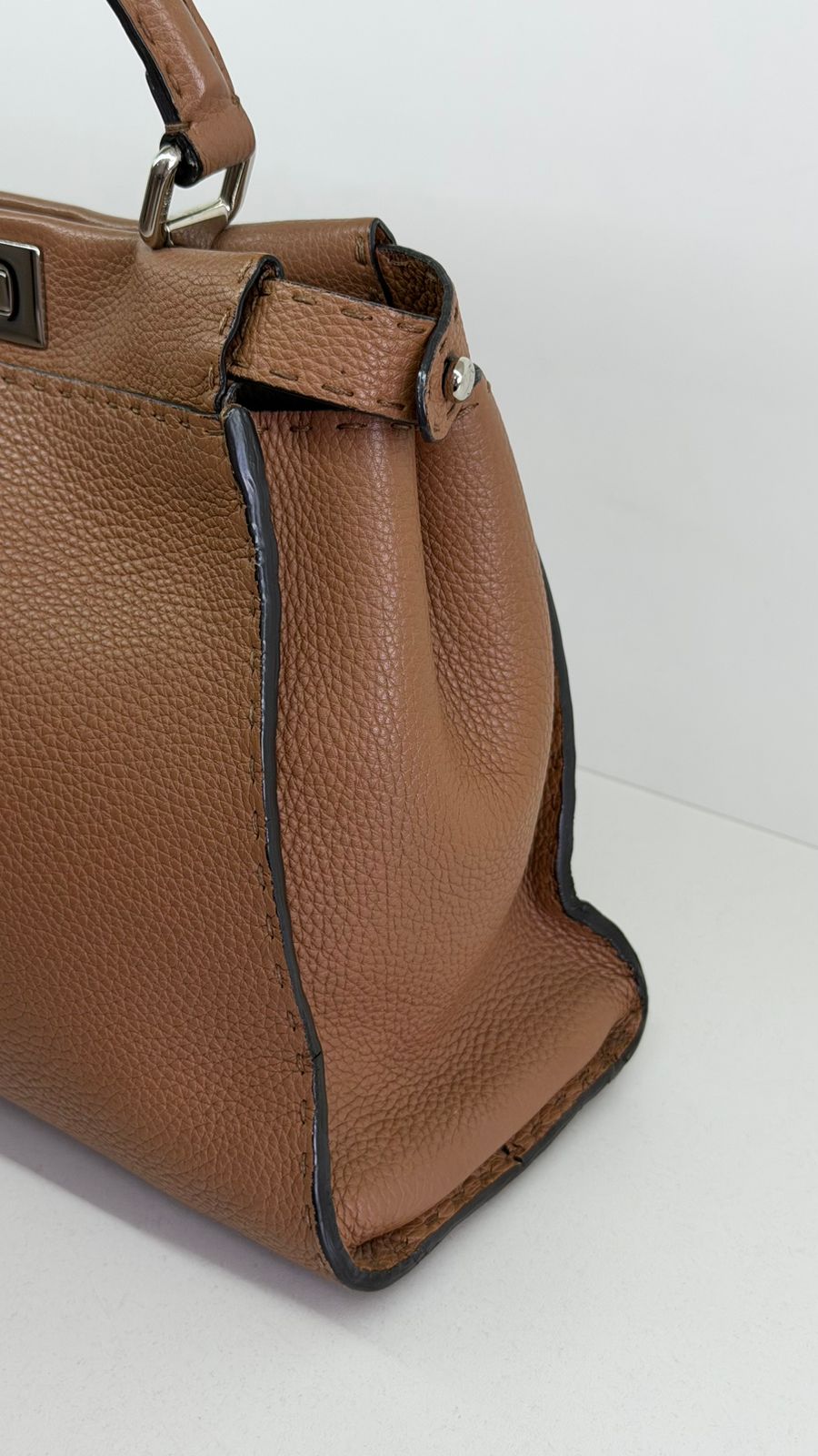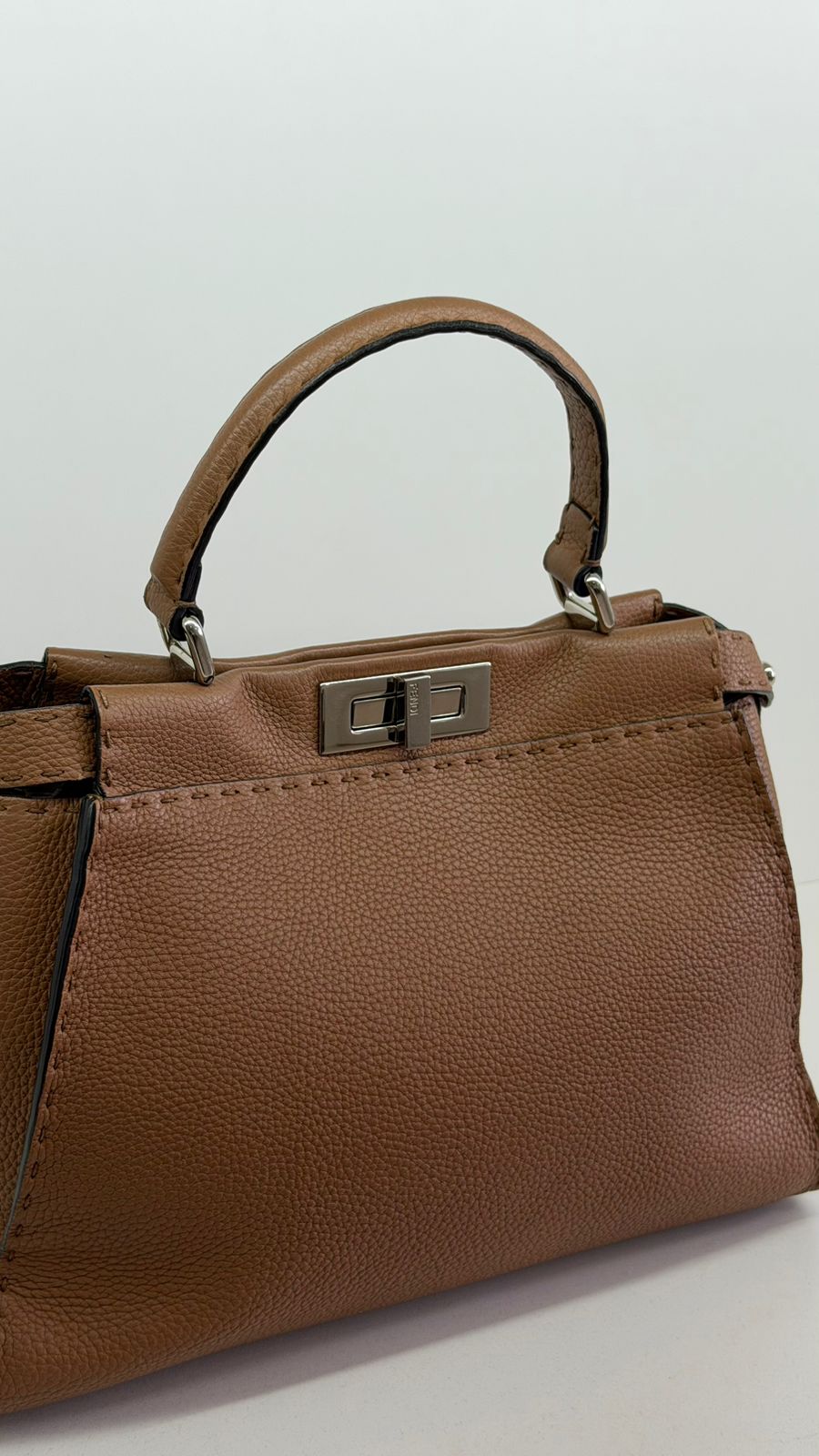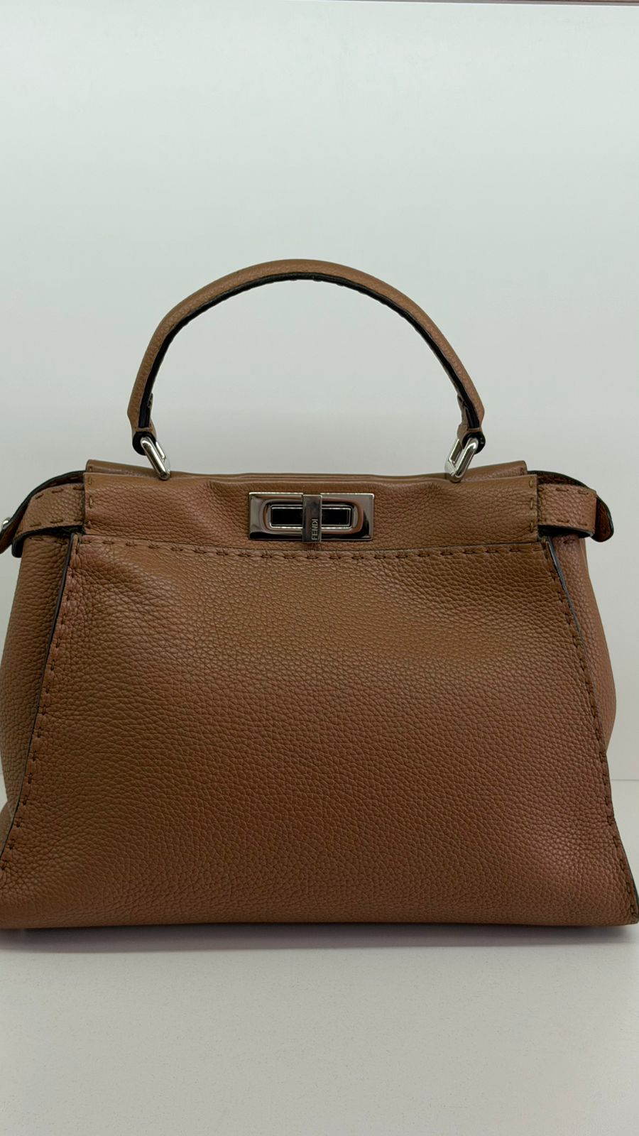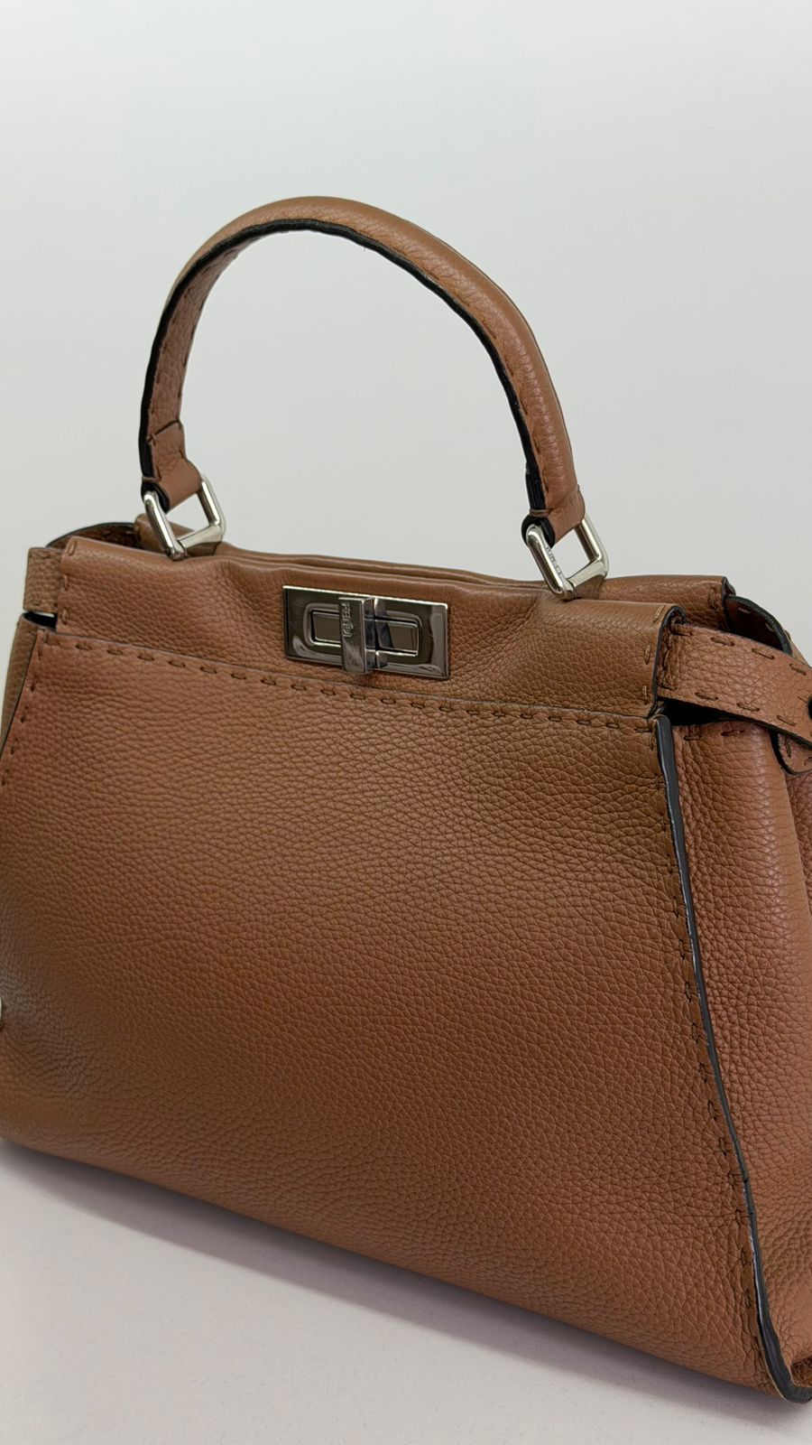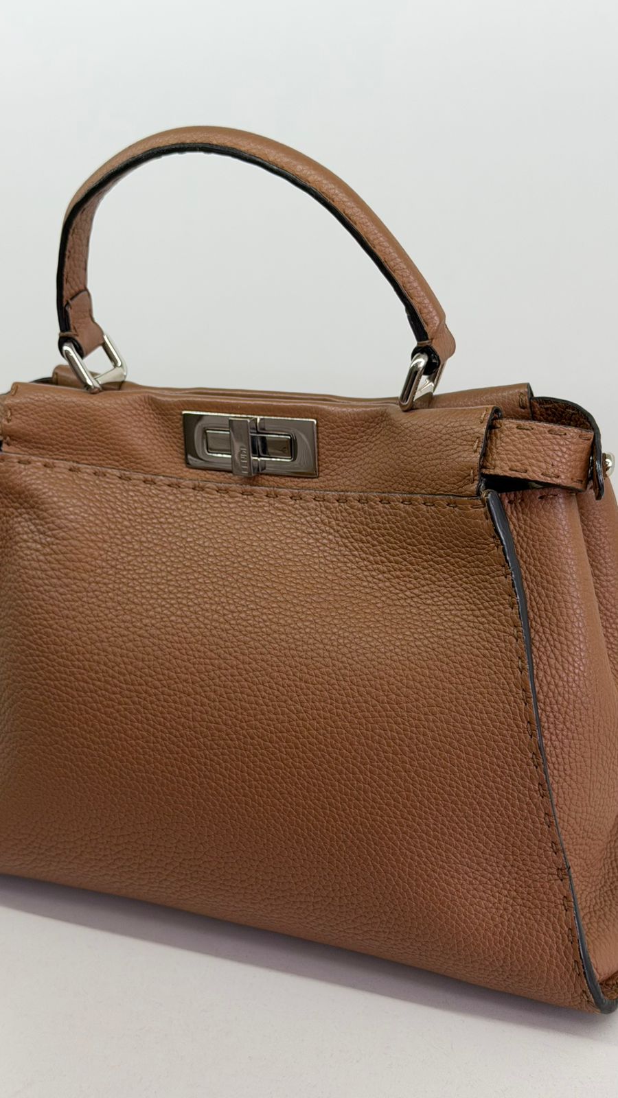 Bolsa Fendi Selleria, modelo Tote , confeccionada em couro marrom, ferragens no dourado, alça única de mão, fecho principal giratório com a assinatura da marca, forro interno em tecido, compartimento interno único com um bolso em zíper. Um bolsa linda, versátil e atemporal, pratica para o dia a dia. Ideal para mulheres que apreciam o luxo e a excelência do design italiano.
