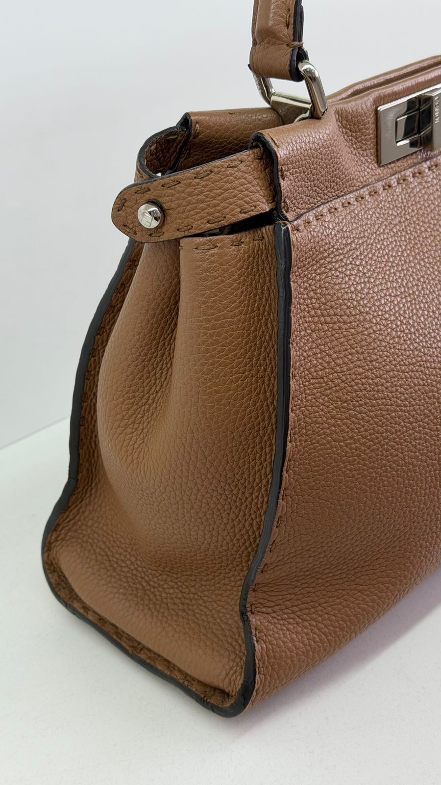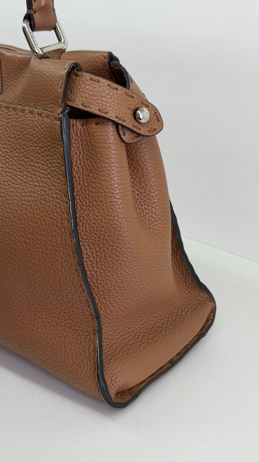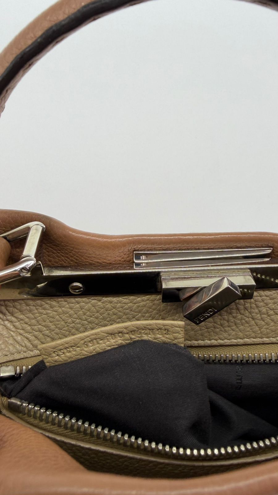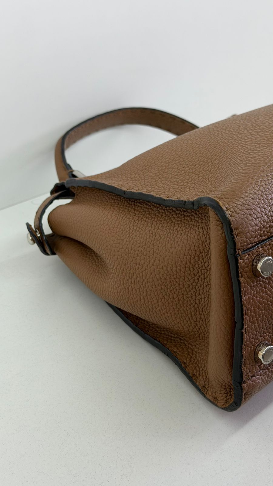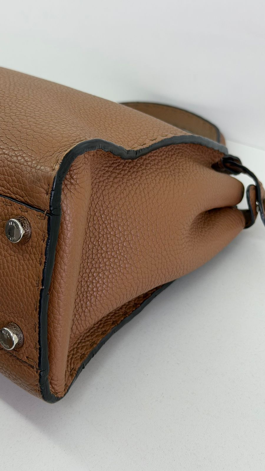 Bolsa Fendi Selleria, modelo Tote , confeccionada em couro marrom, ferragens no dourado, alça única de mão, fecho principal giratório com a assinatura da marca, forro interno em tecido, compartimento interno único com um bolso em zíper. Um bolsa linda, versátil e atemporal, pratica para o dia a dia. Ideal para mulheres que apreciam o luxo e a excelência do design italiano.