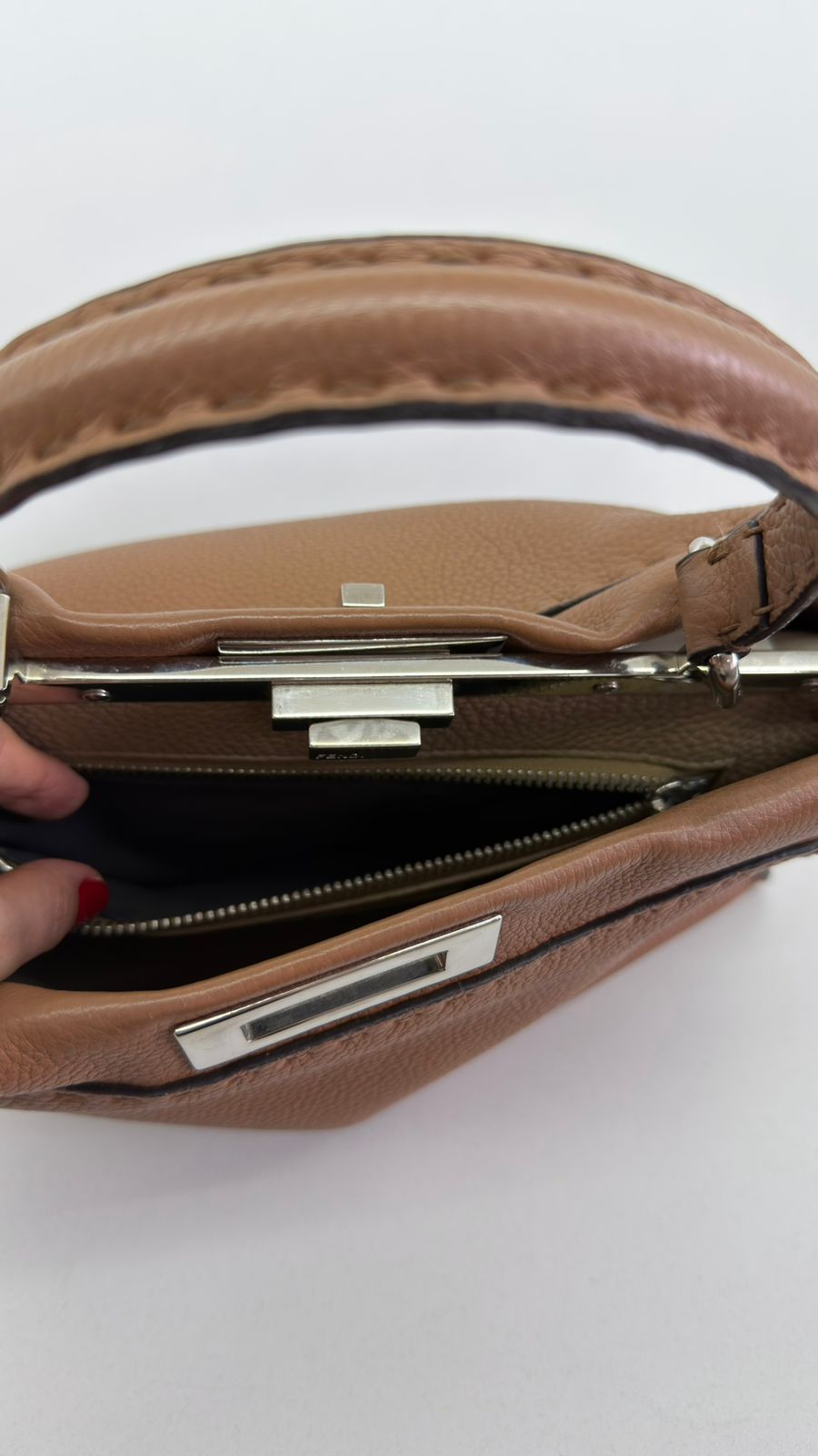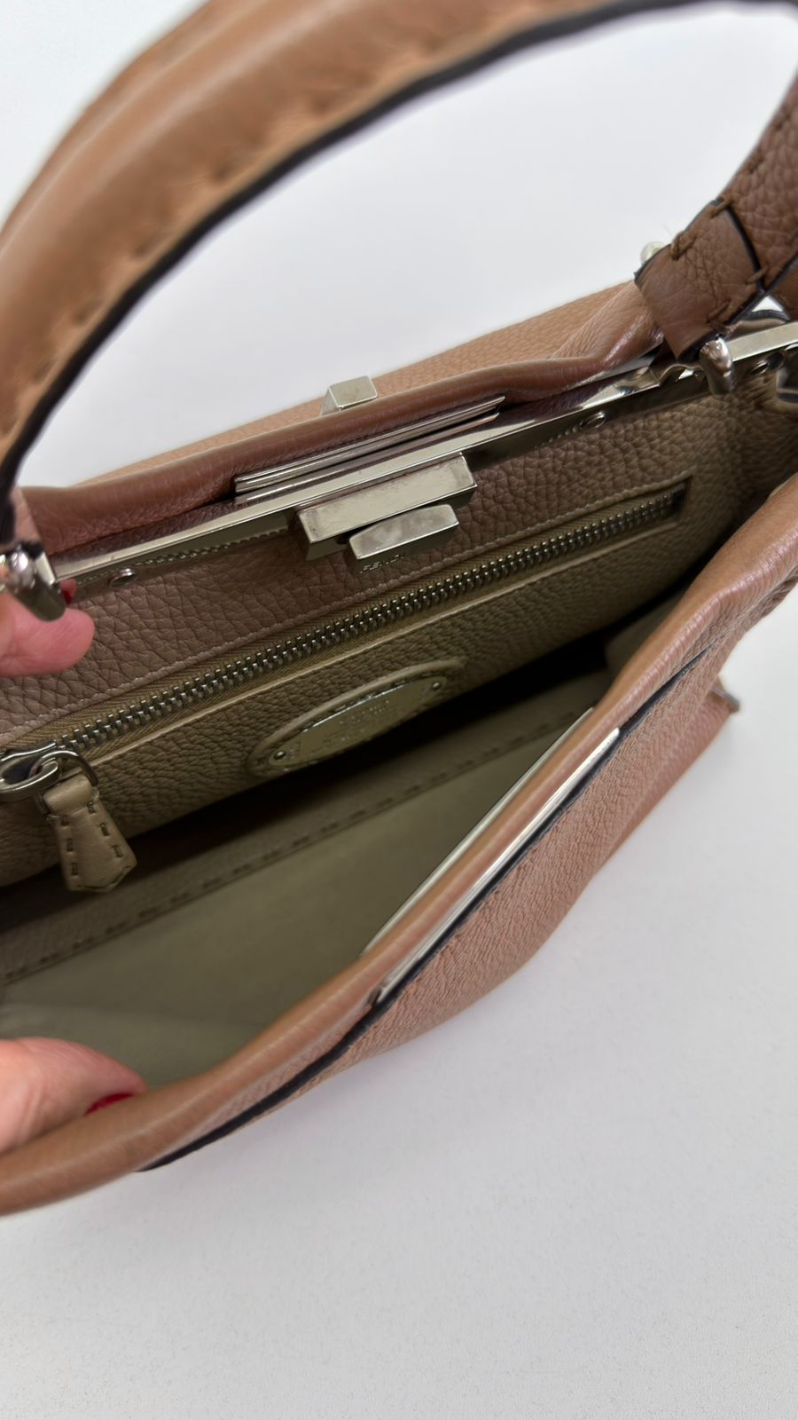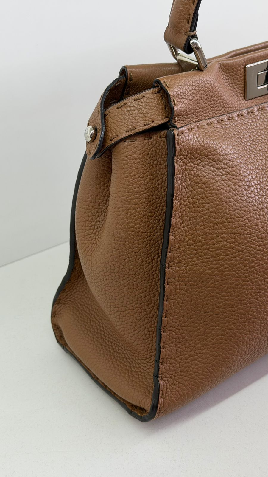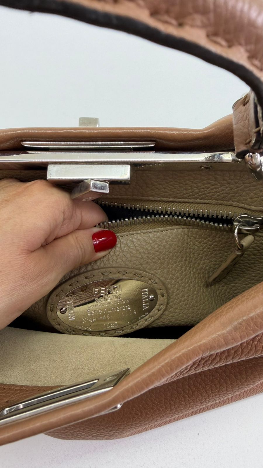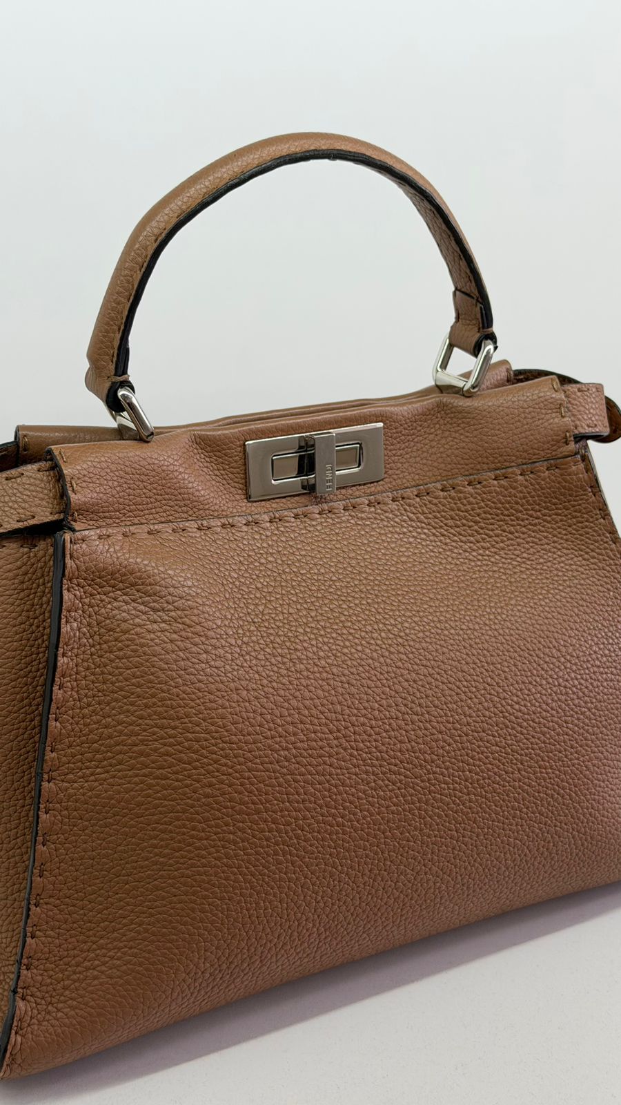 Bolsa Fendi Selleria, modelo Tote , confeccionada em couro marrom, ferragens no dourado, alça única de mão, fecho principal giratório com a assinatura da marca, forro interno em tecido, compartimento interno único com um bolso em zíper. Um bolsa linda, versátil e atemporal, pratica para o dia a dia. Ideal para mulheres que apreciam o luxo e a excelência do design italiano.