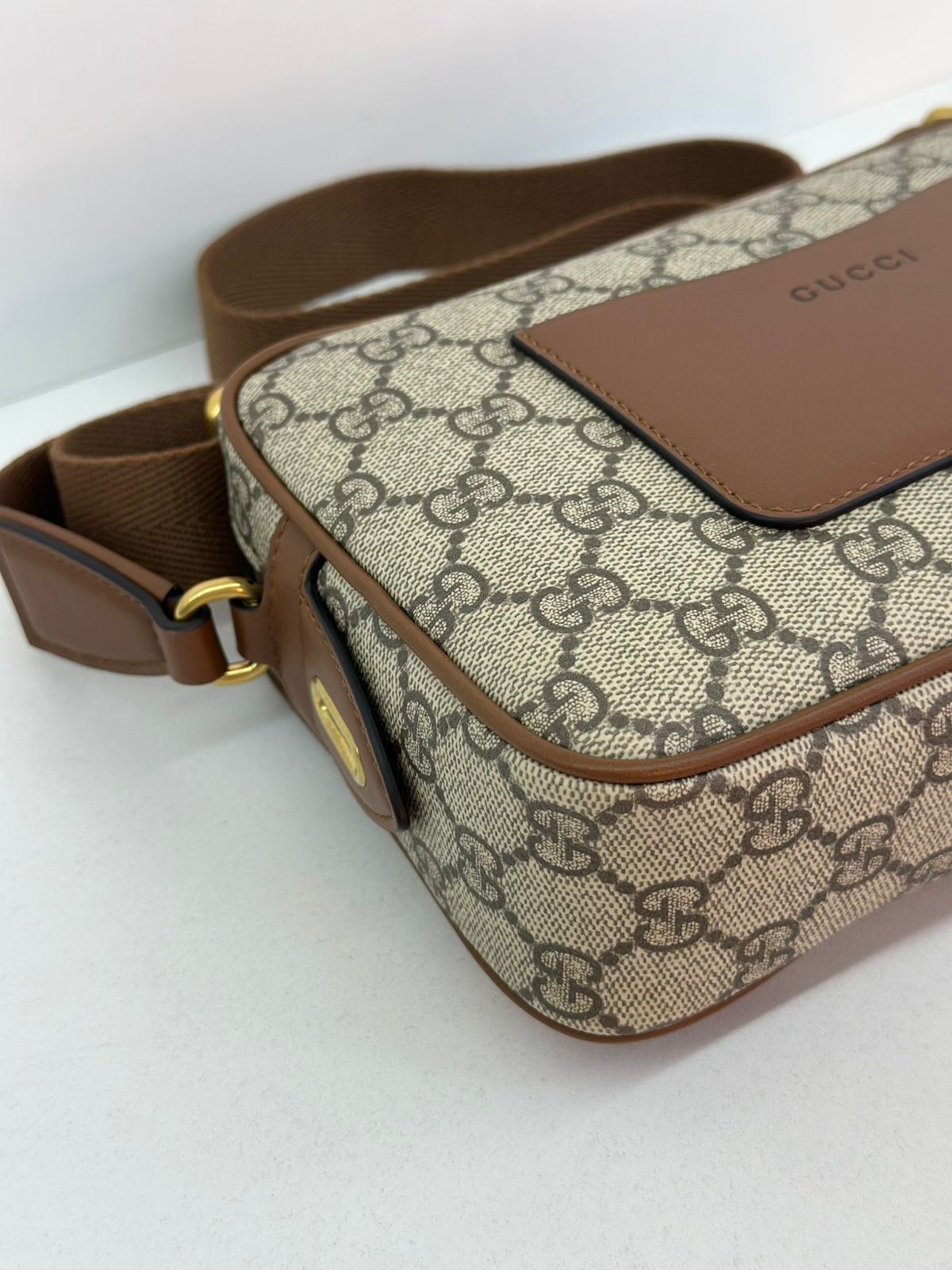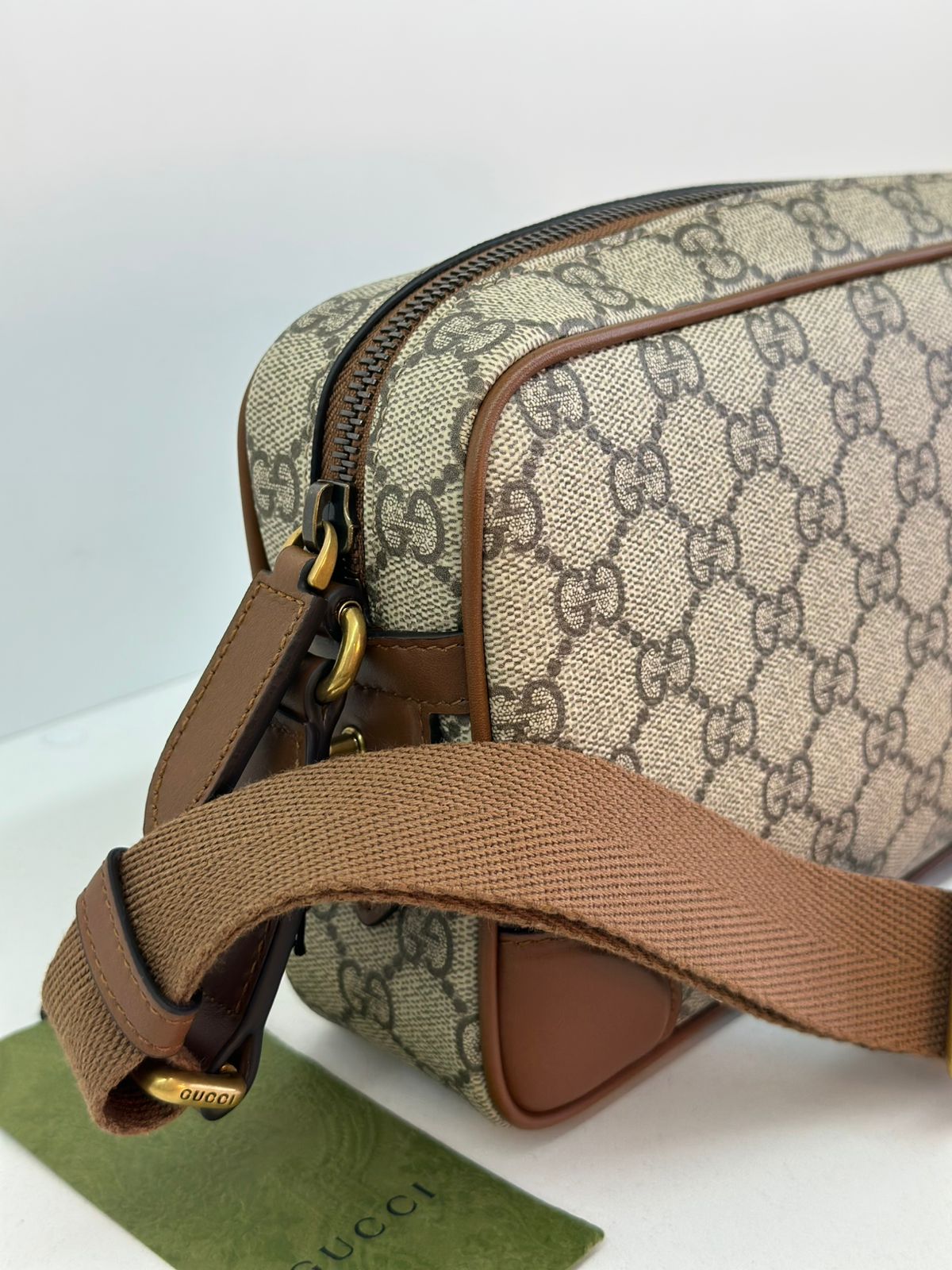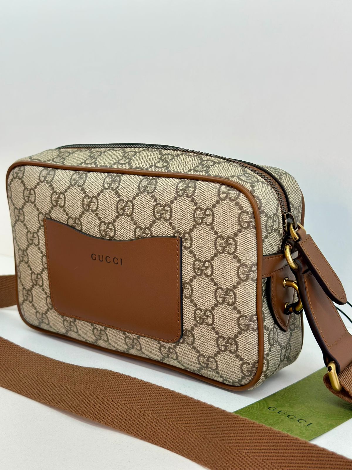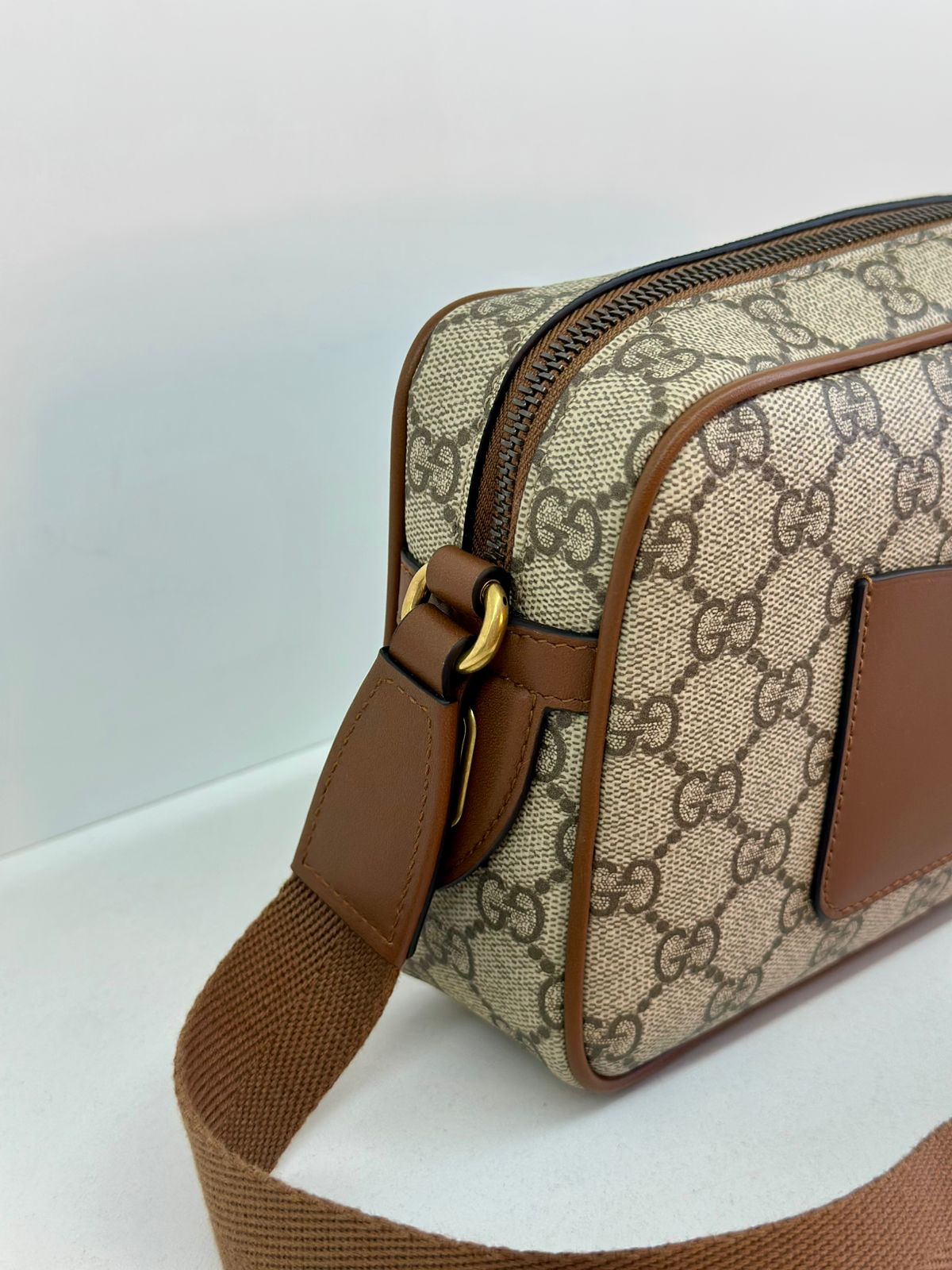• Confeccionada em estampa monograma GG da marca;