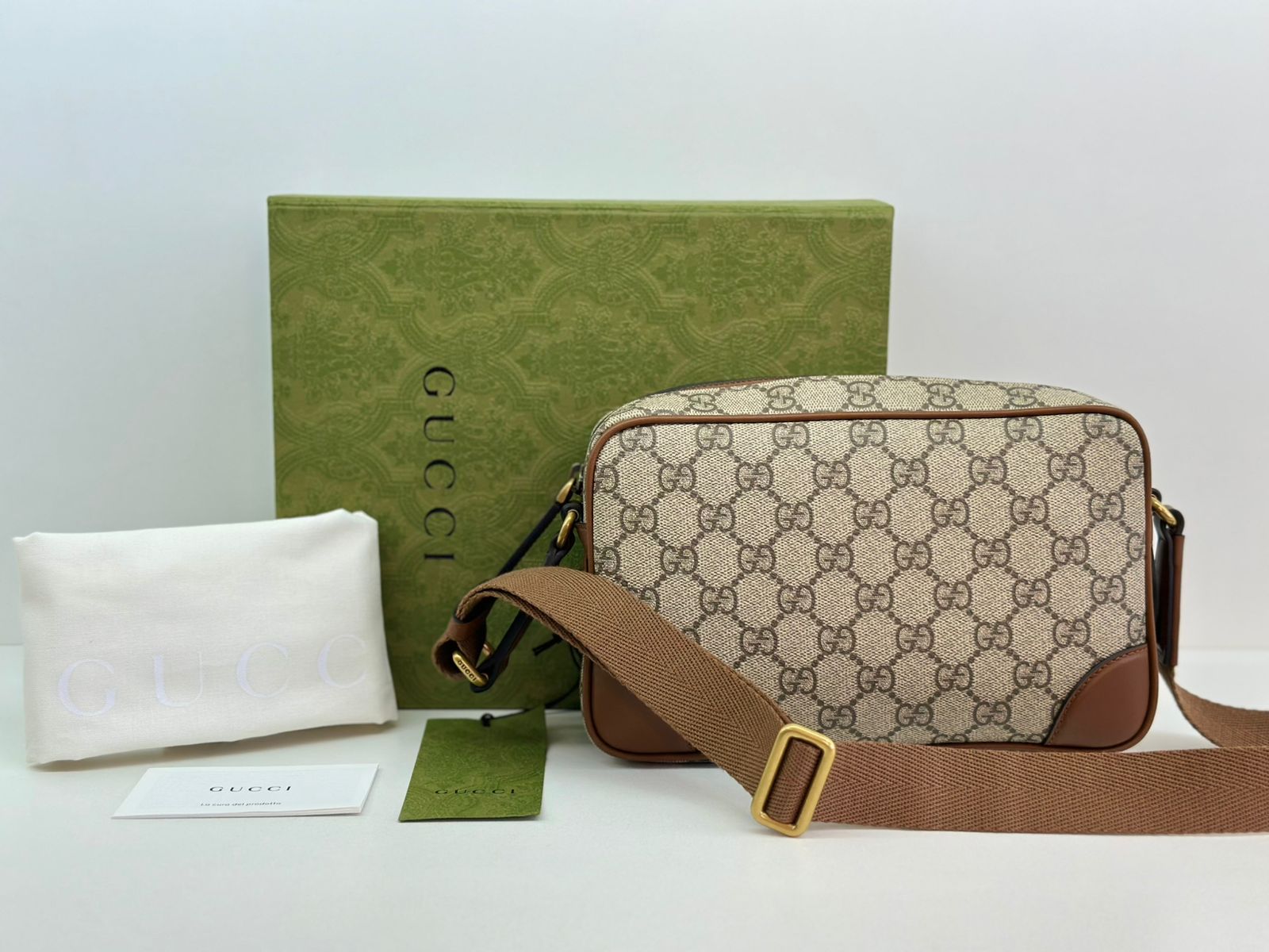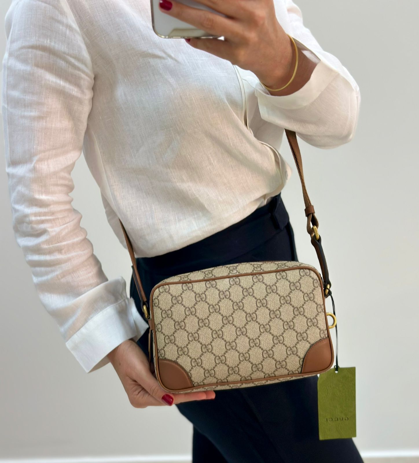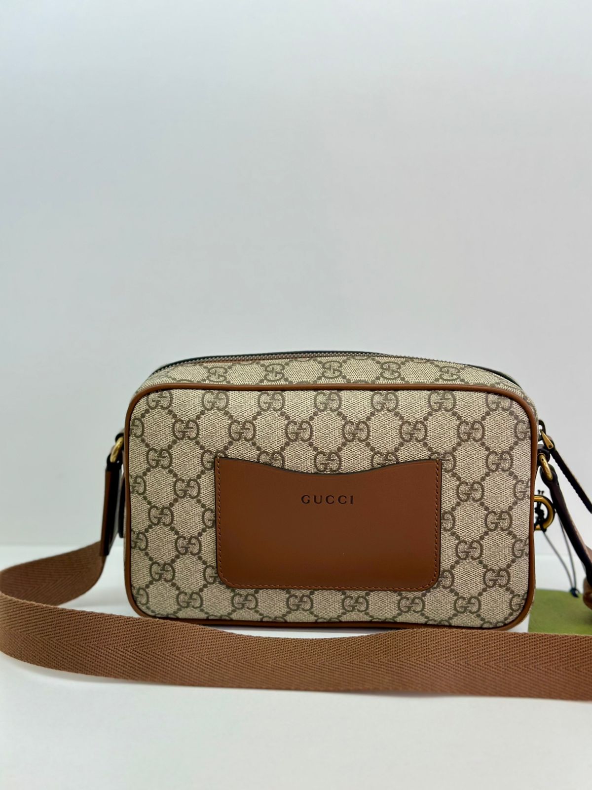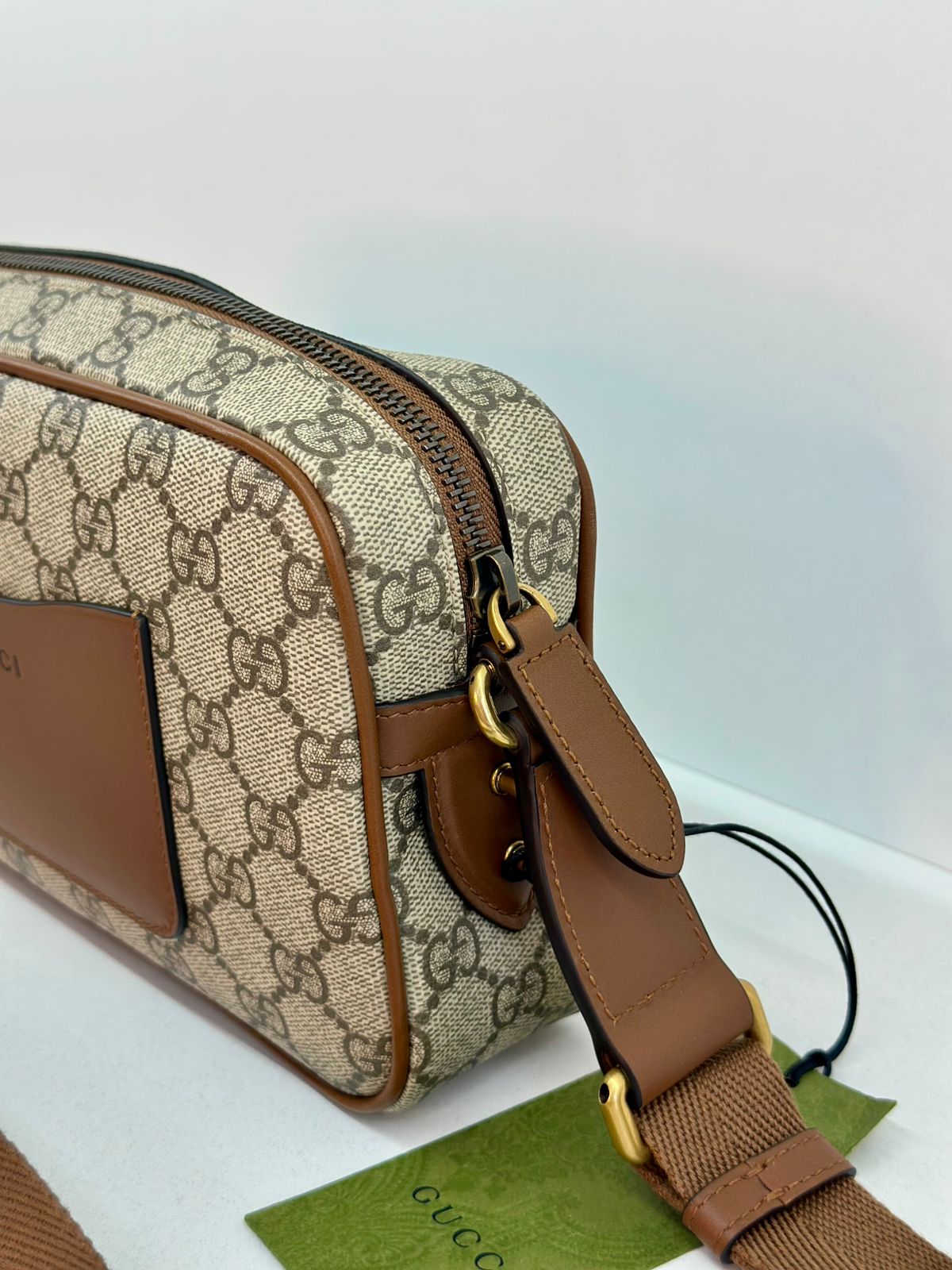 • Confeccionada em estampa monograma GG da marca;