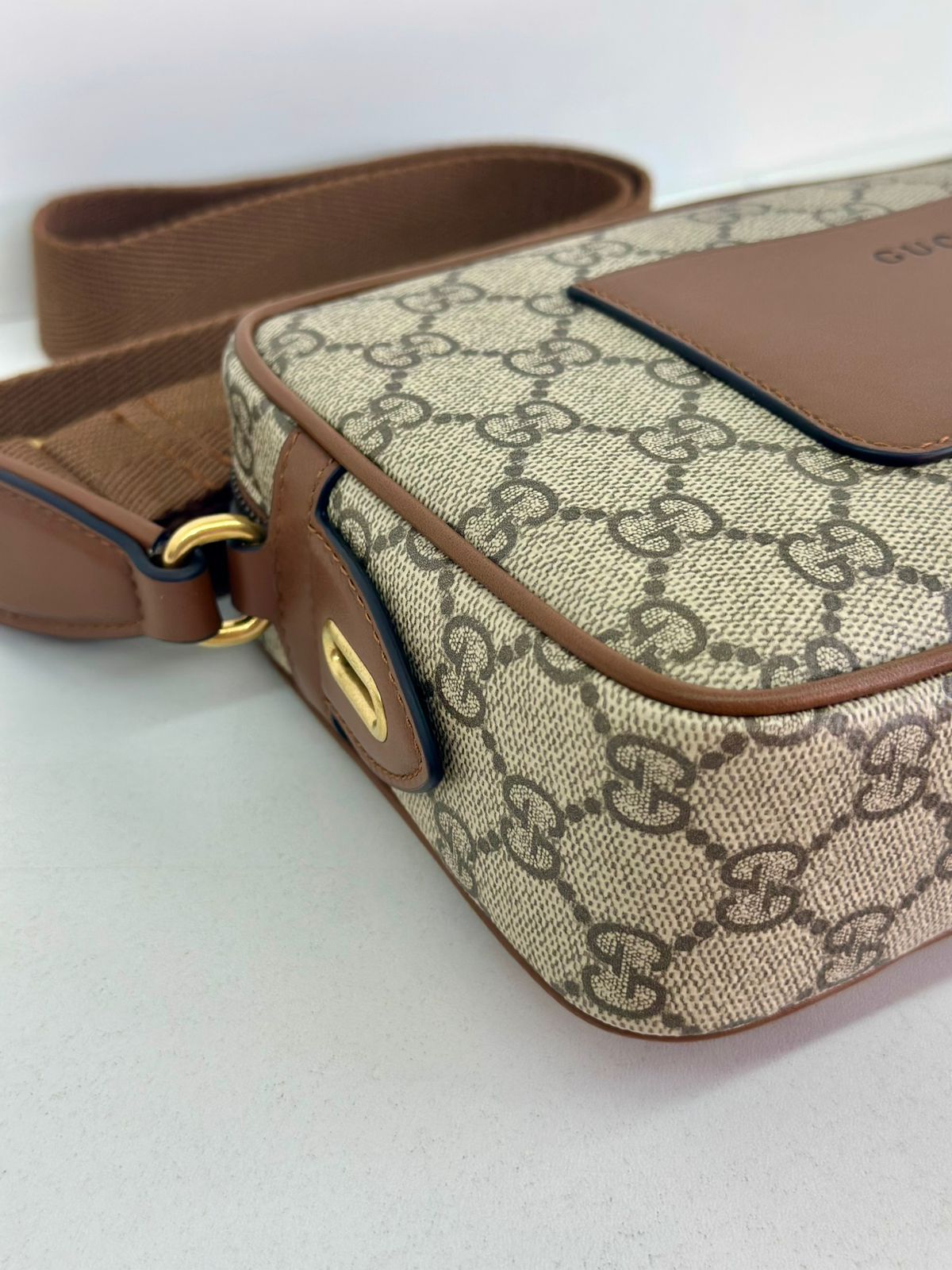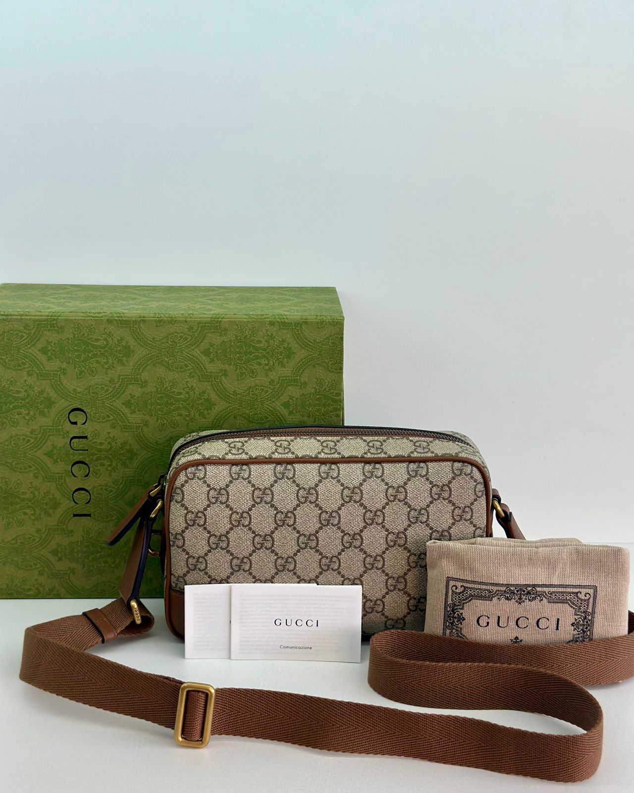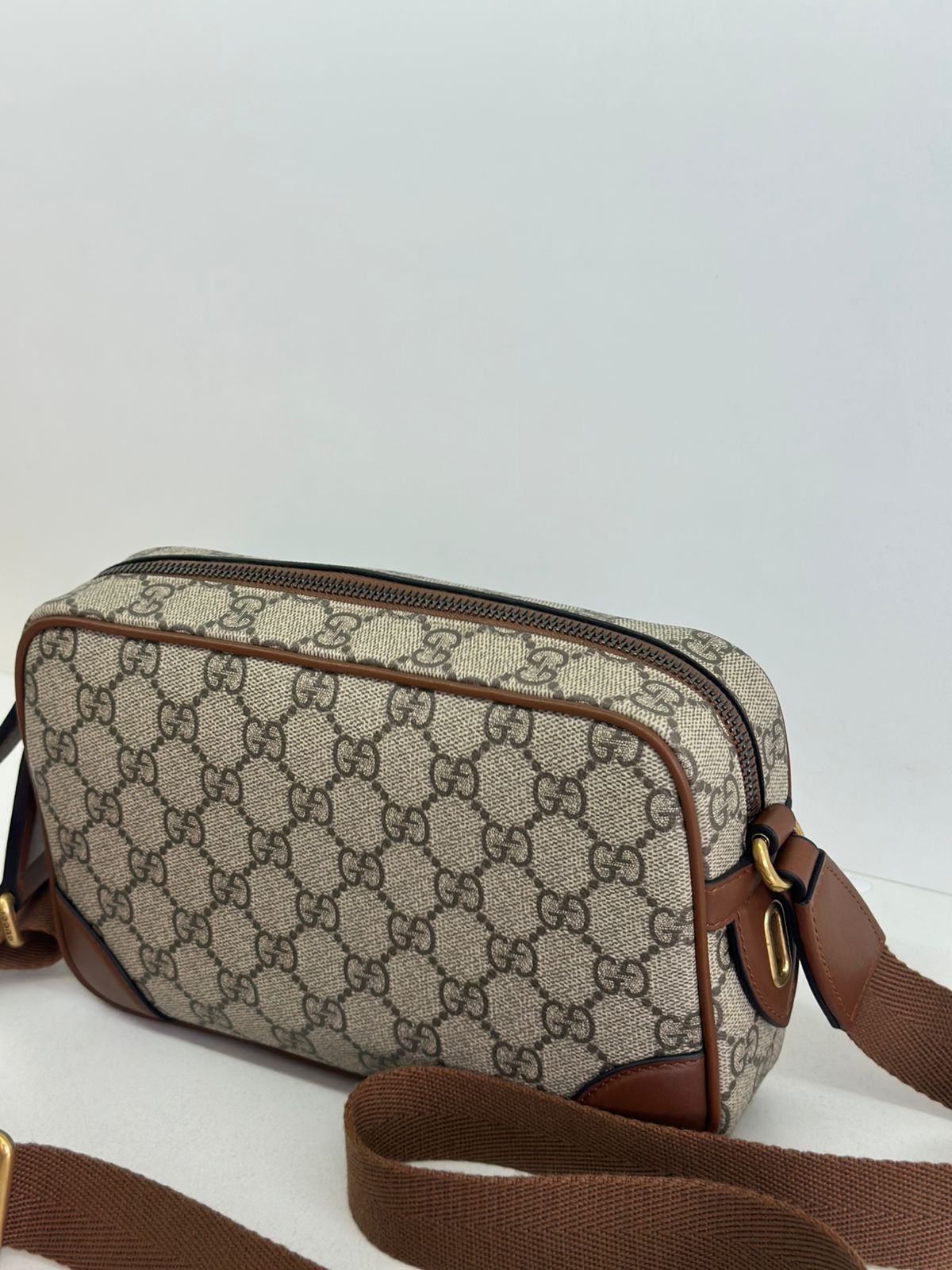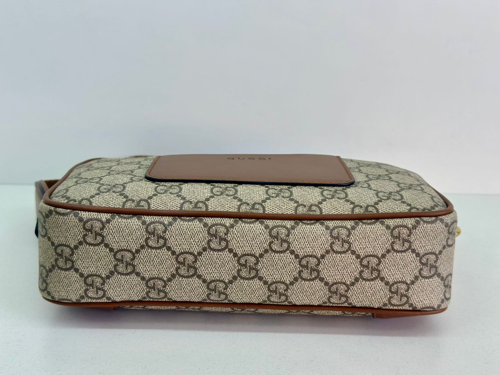 Bolsa Gucci GG Emblem, confeccionada em estampa monograma GG da marca, acabamento em couro marrom, possui bolso plano em couro na parte posterior, na parte frontal possui detalhes em couro nos cantos inferiores, ferragens no dourado, possui alça de ombro regulável, forro em tecido, compartimento único com bolso interno com fecho em zíper, fechamento principal por zíper Uma bolsa para o dia a dia com muita elegância.