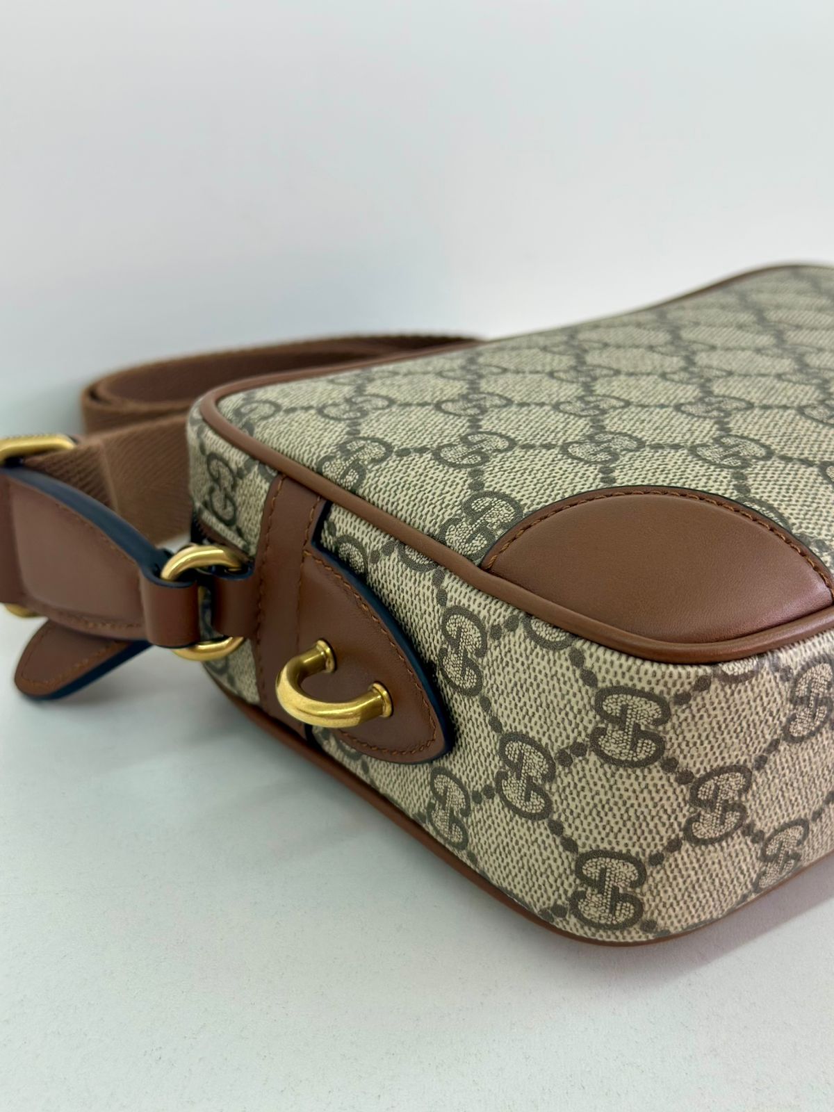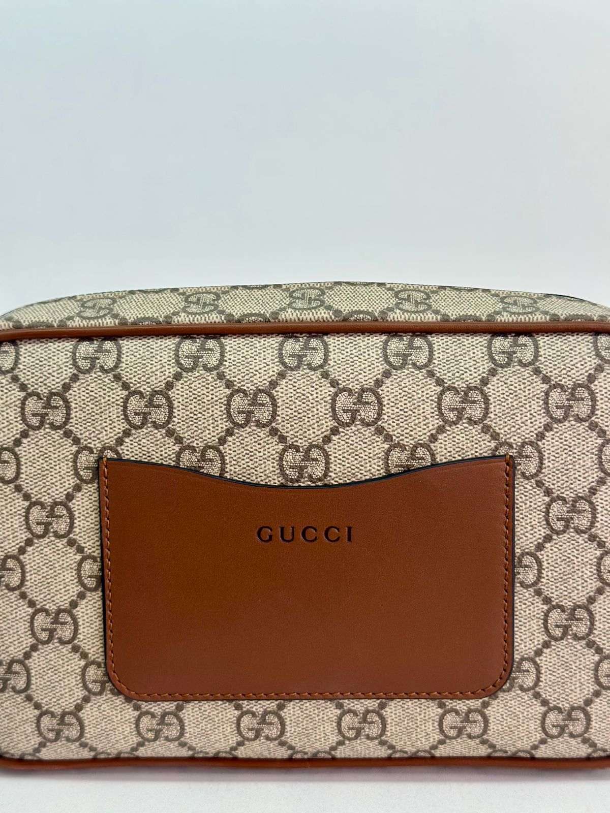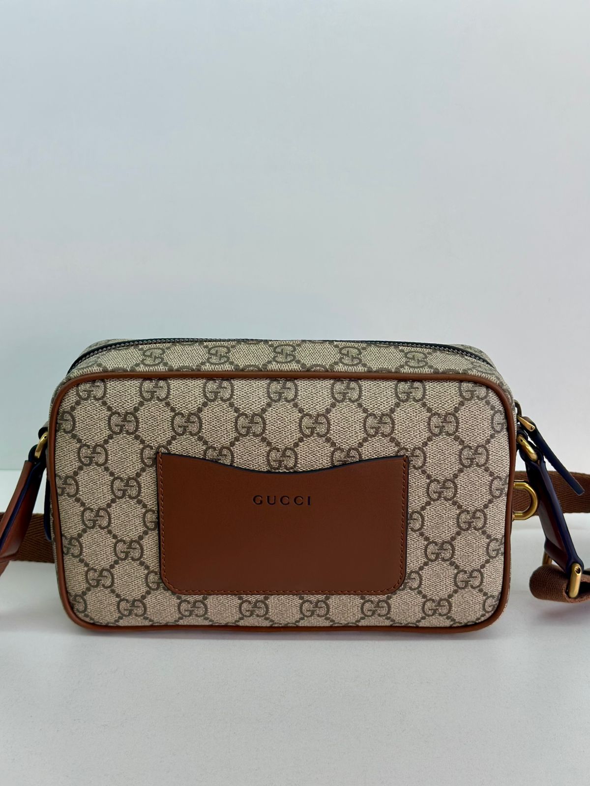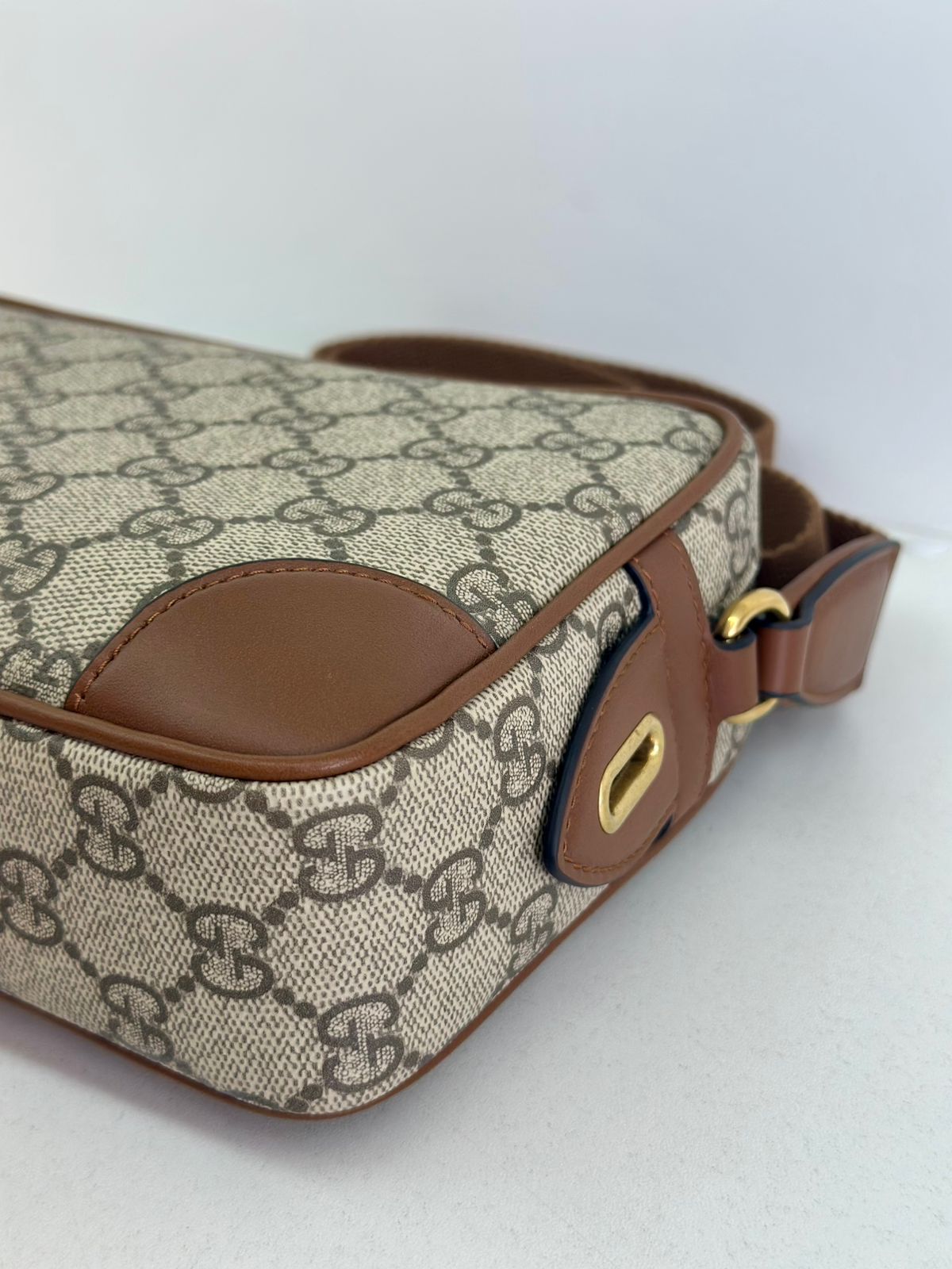 Bolsa Gucci GG Emblem, confeccionada em estampa monograma GG da marca, acabamento em couro marrom, possui bolso plano em couro na parte posterior, na parte frontal possui detalhes em couro nos cantos inferiores, ferragens no dourado, possui alça de ombro regulável, forro em tecido, compartimento único com bolso interno com fecho em zíper, fechamento principal por zíper Uma bolsa para o dia a dia com muita elegância.