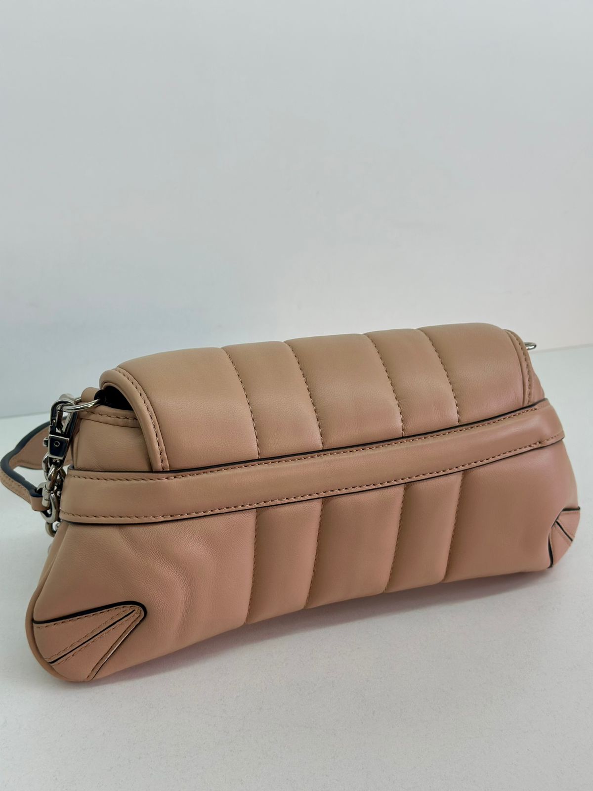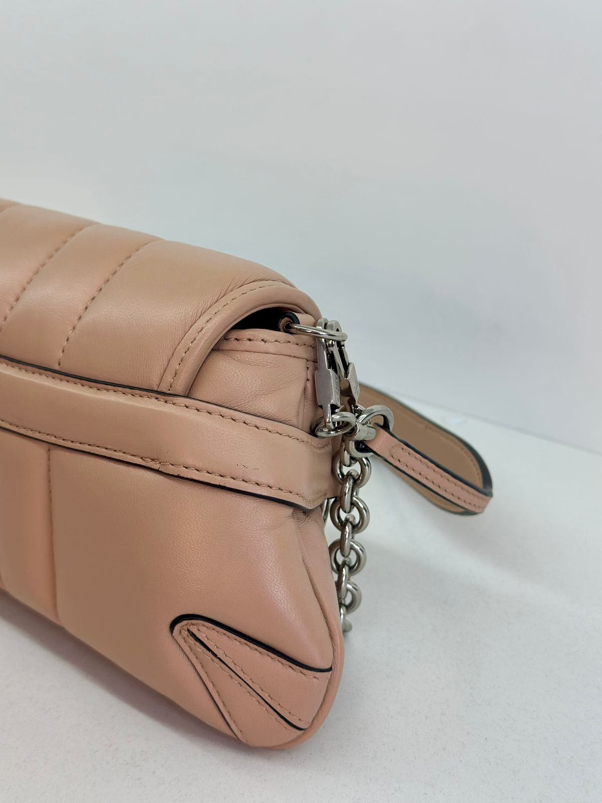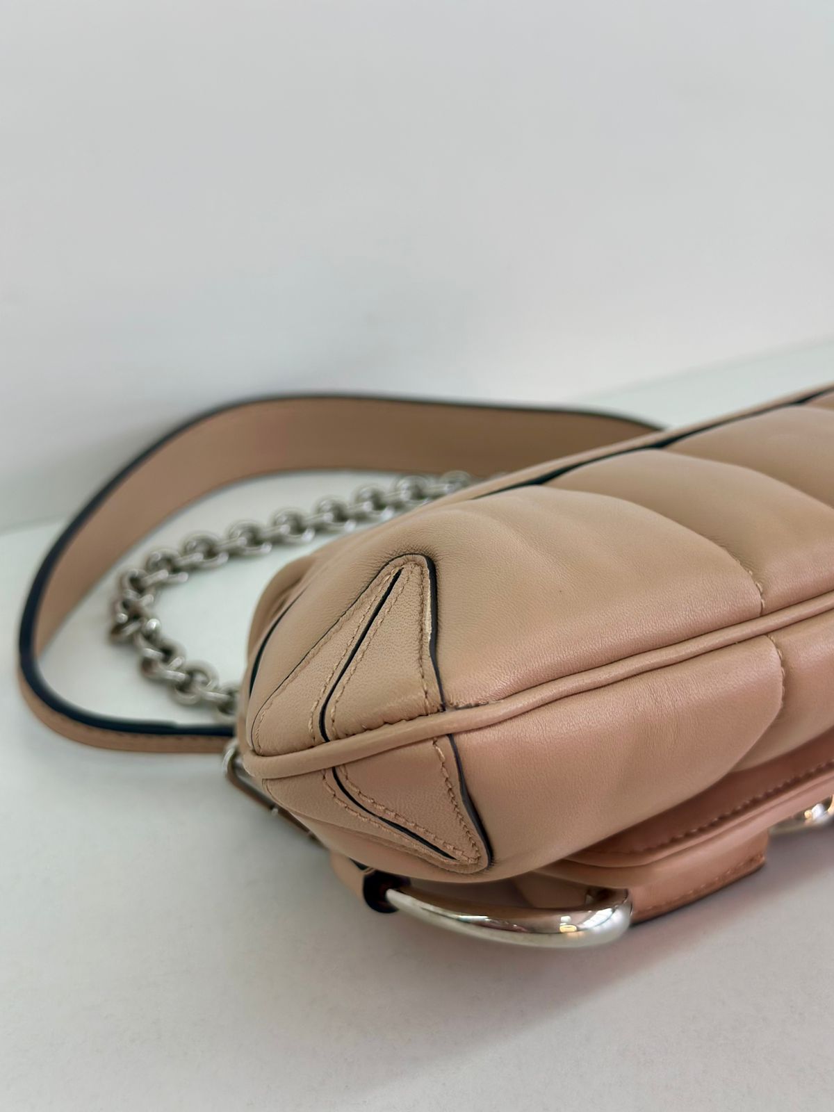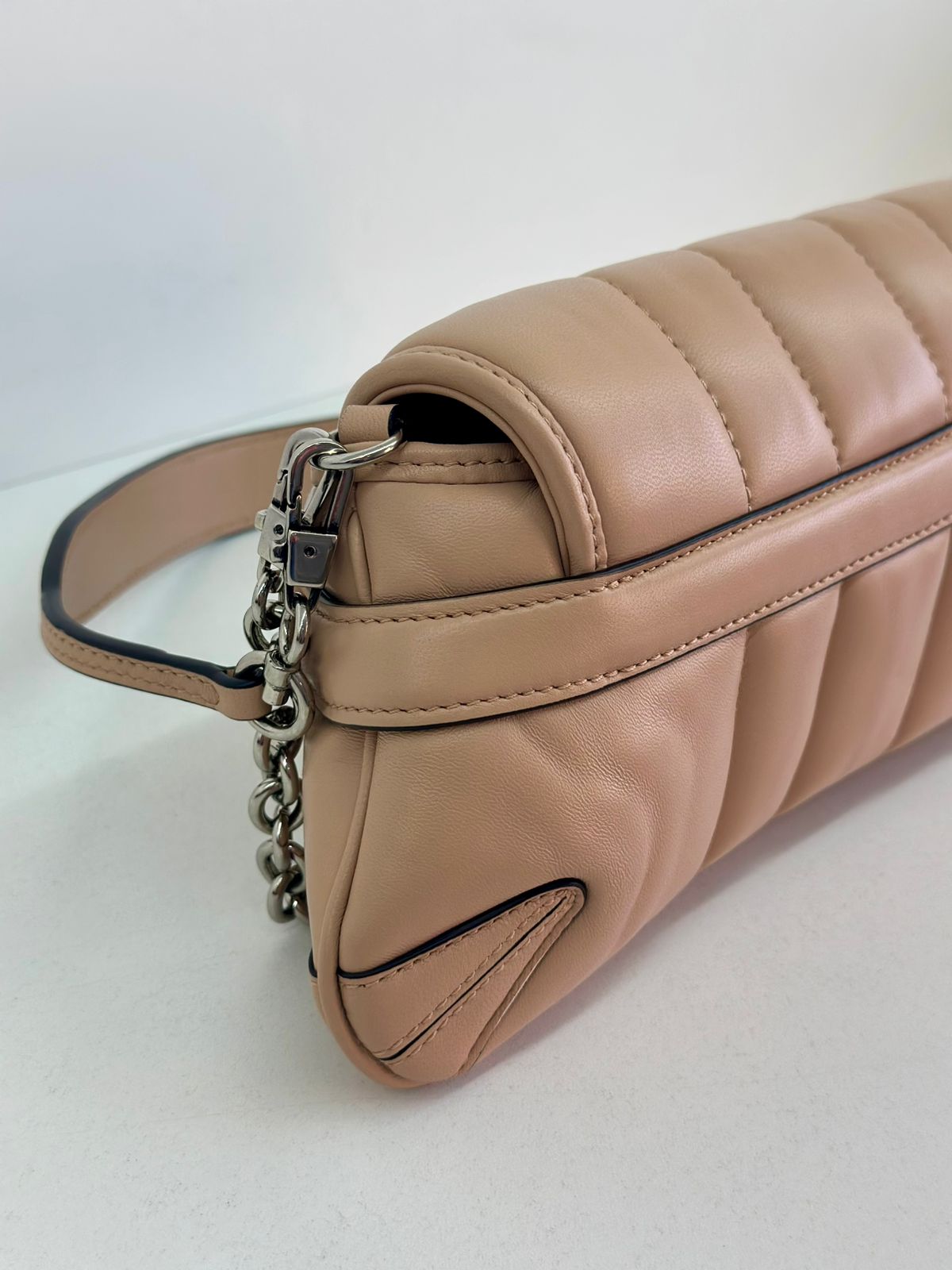 • Em couro matelassê  bege;