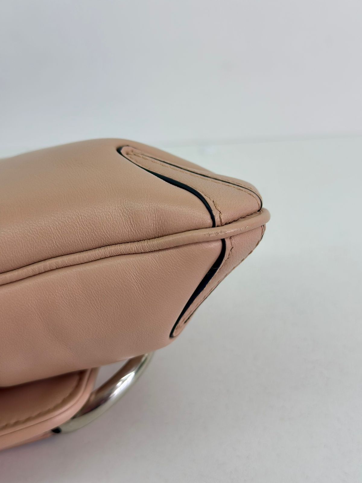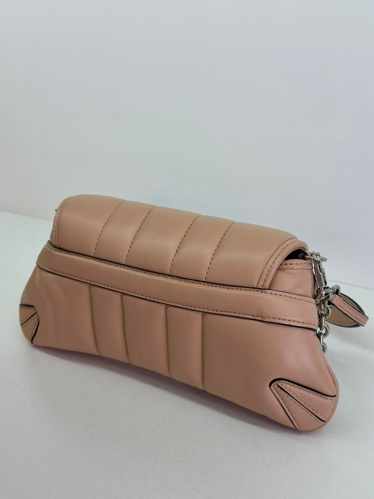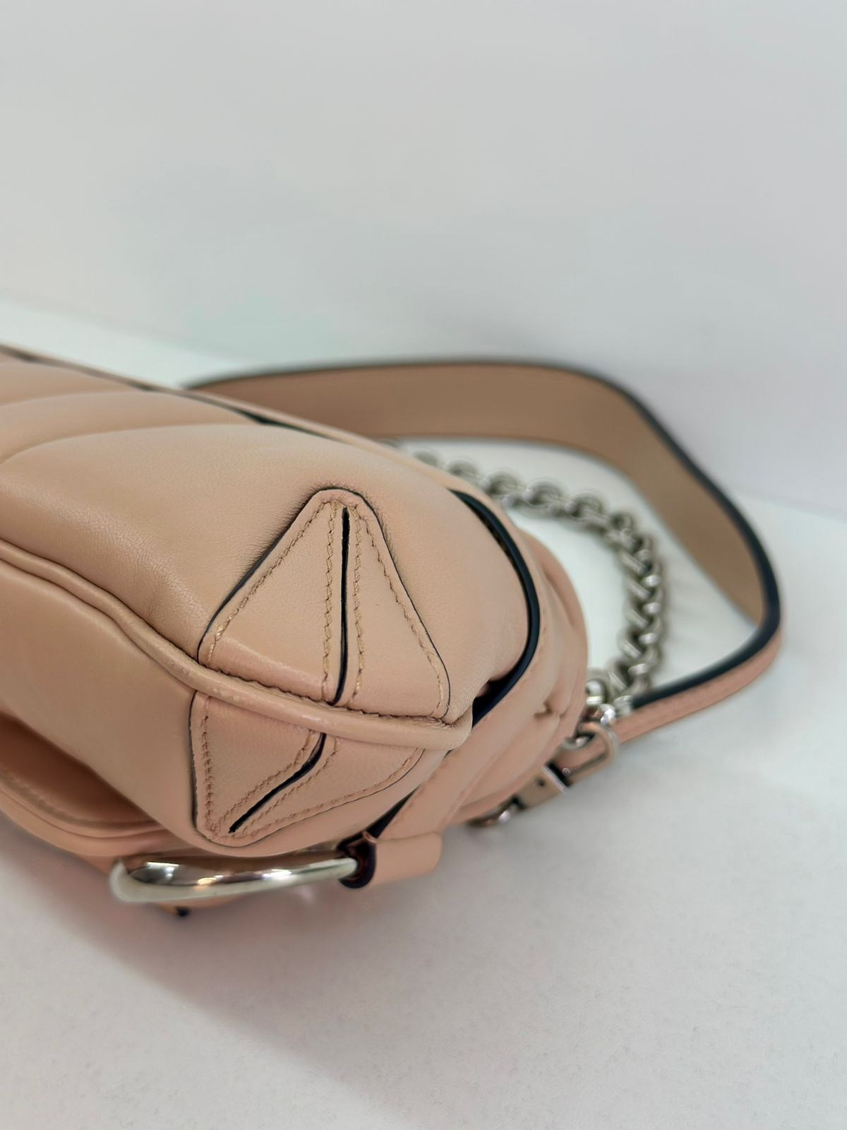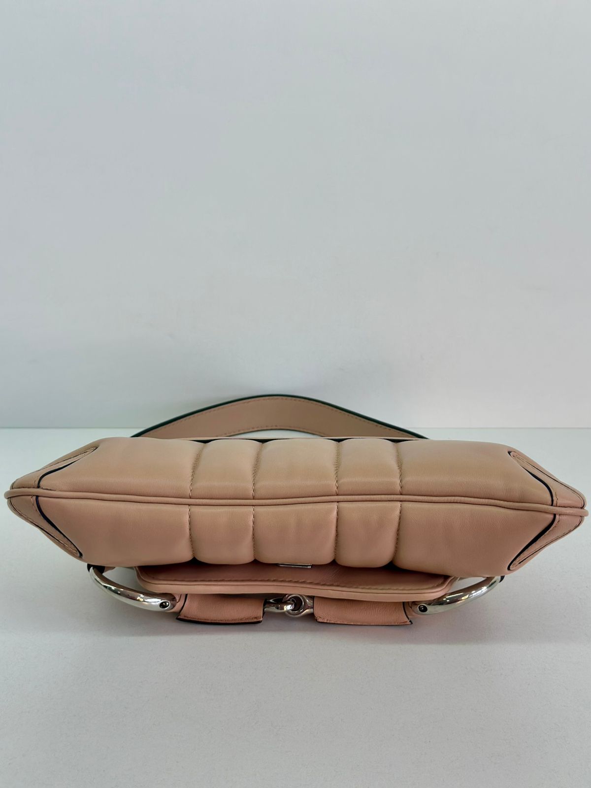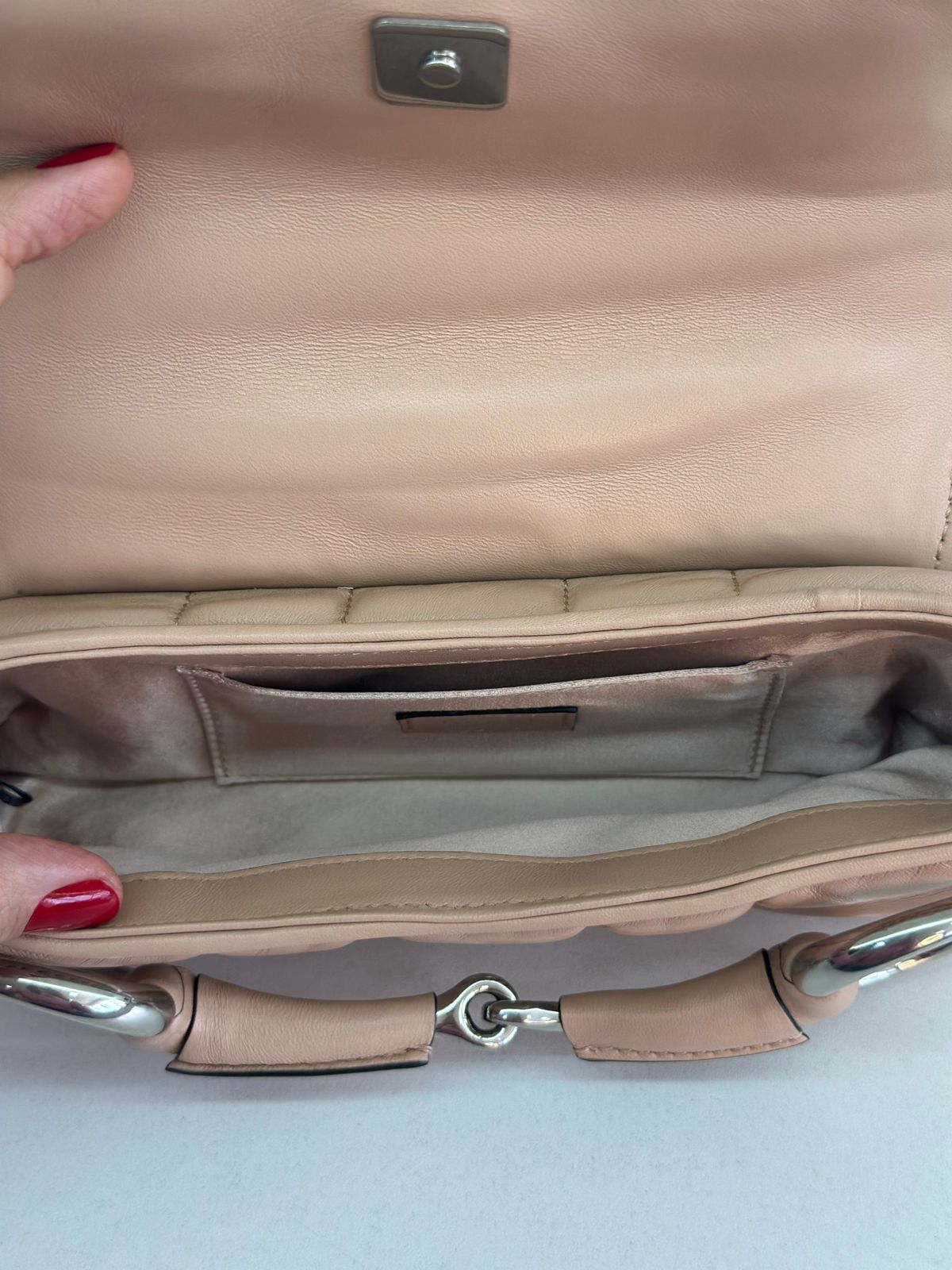 • Em couro matelassê  bege;
