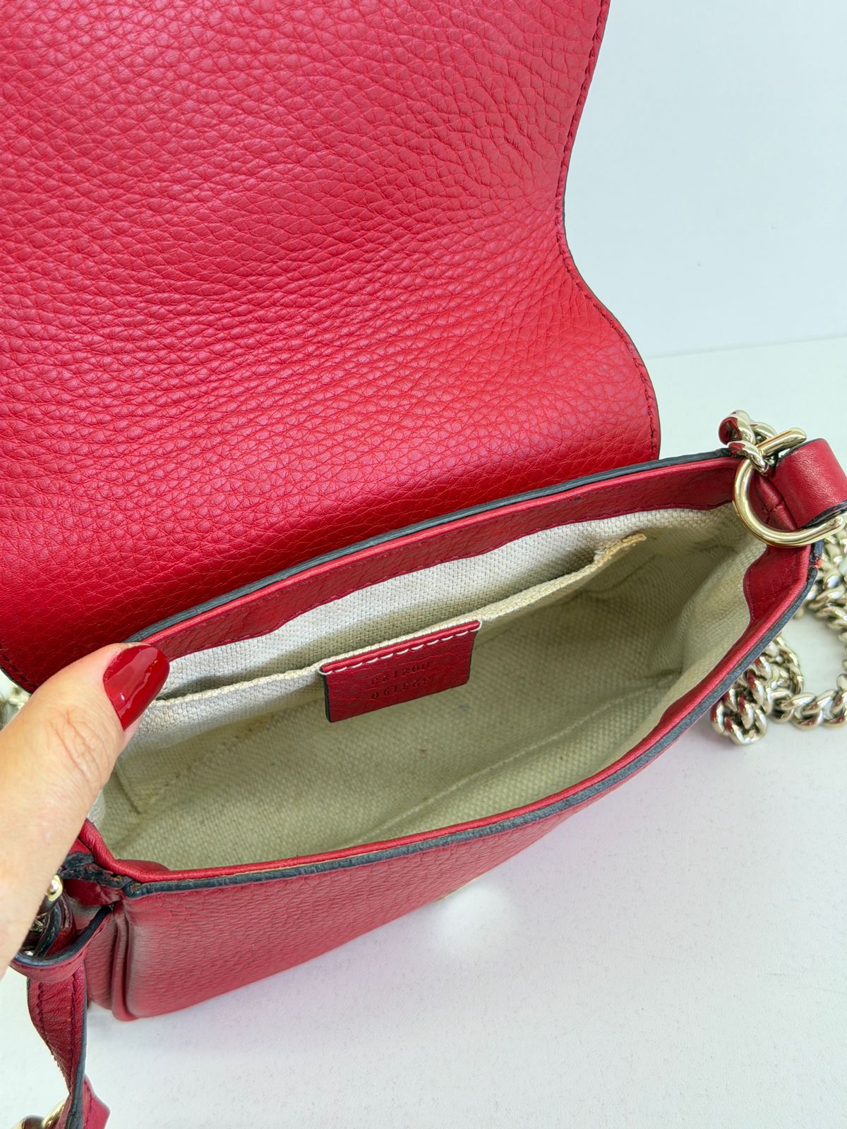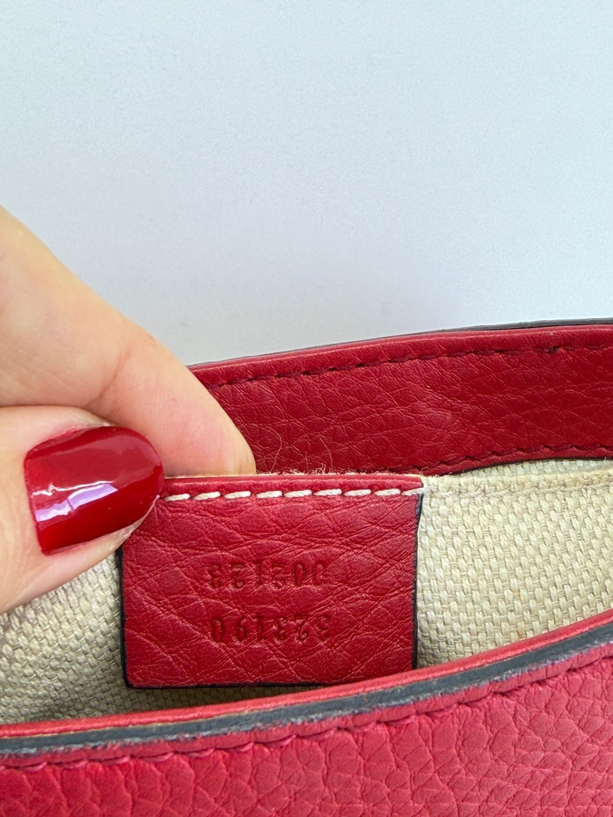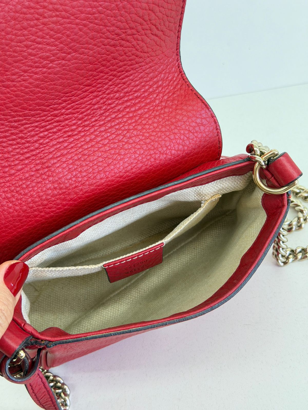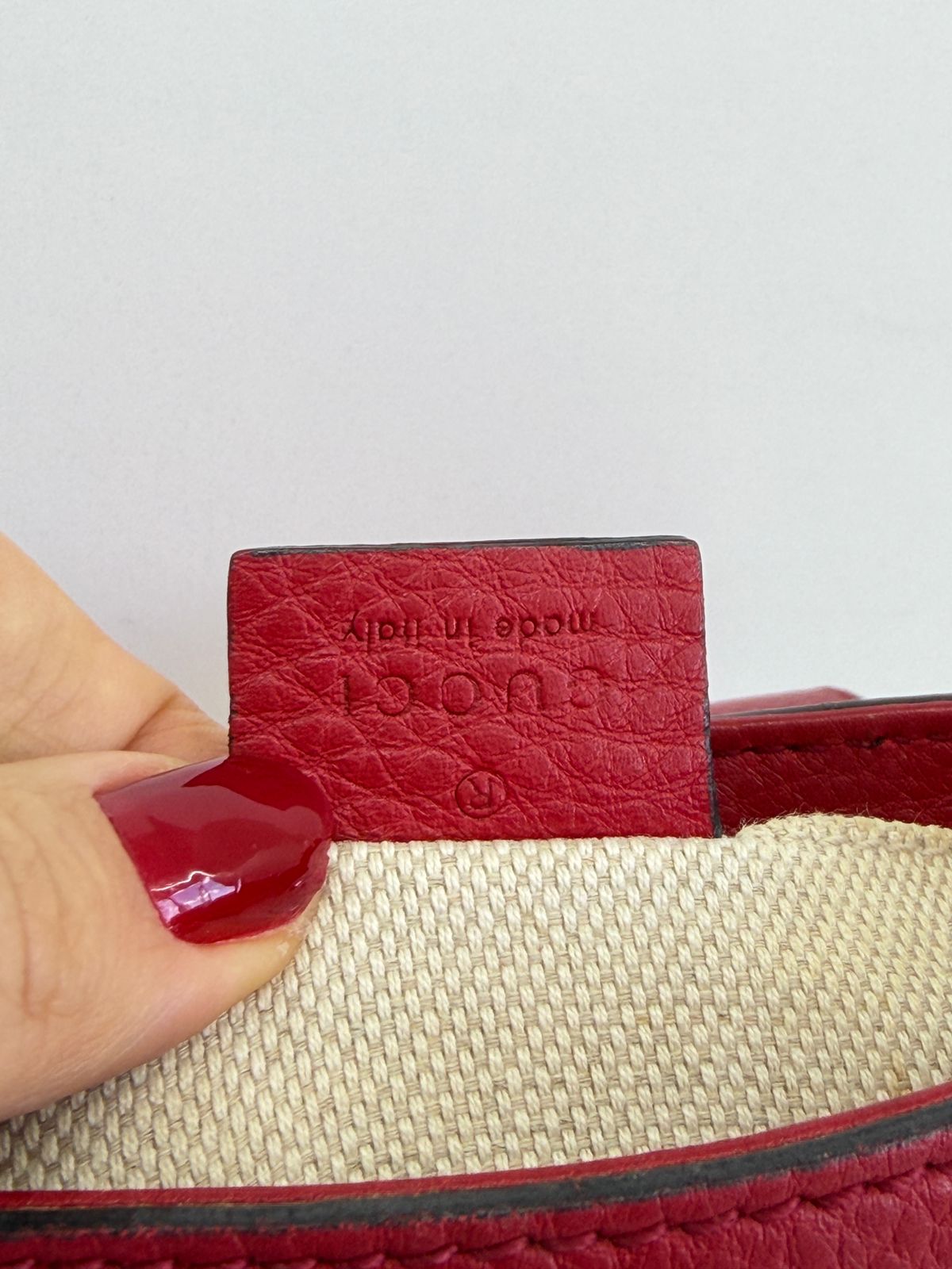 • Confeccionada couro vermelho com duplo GG ;