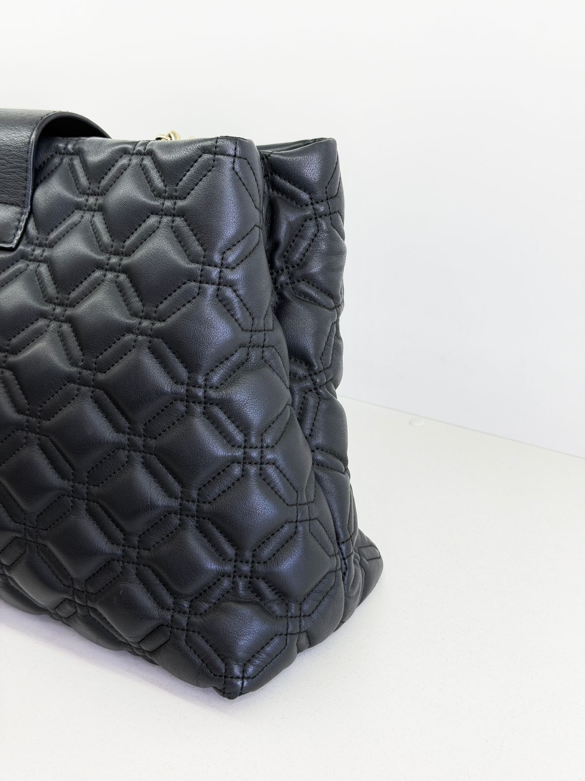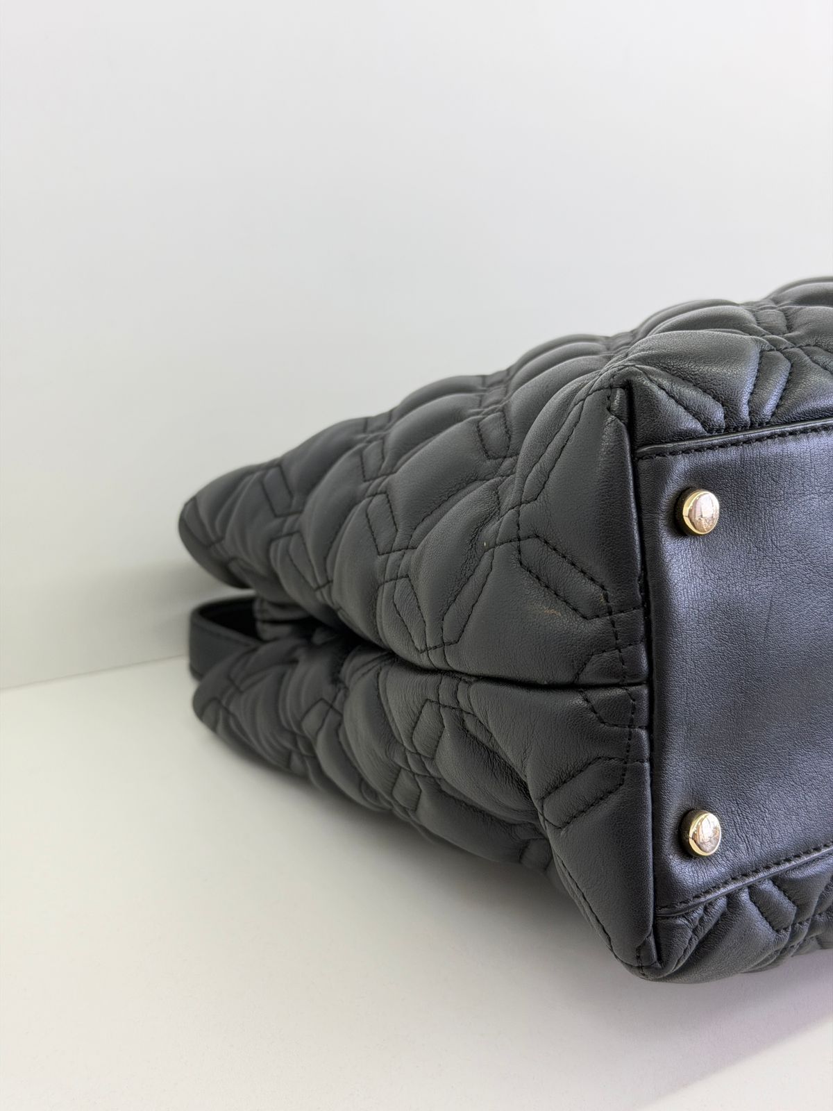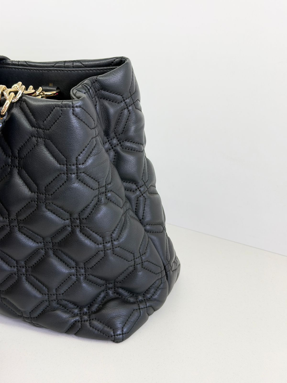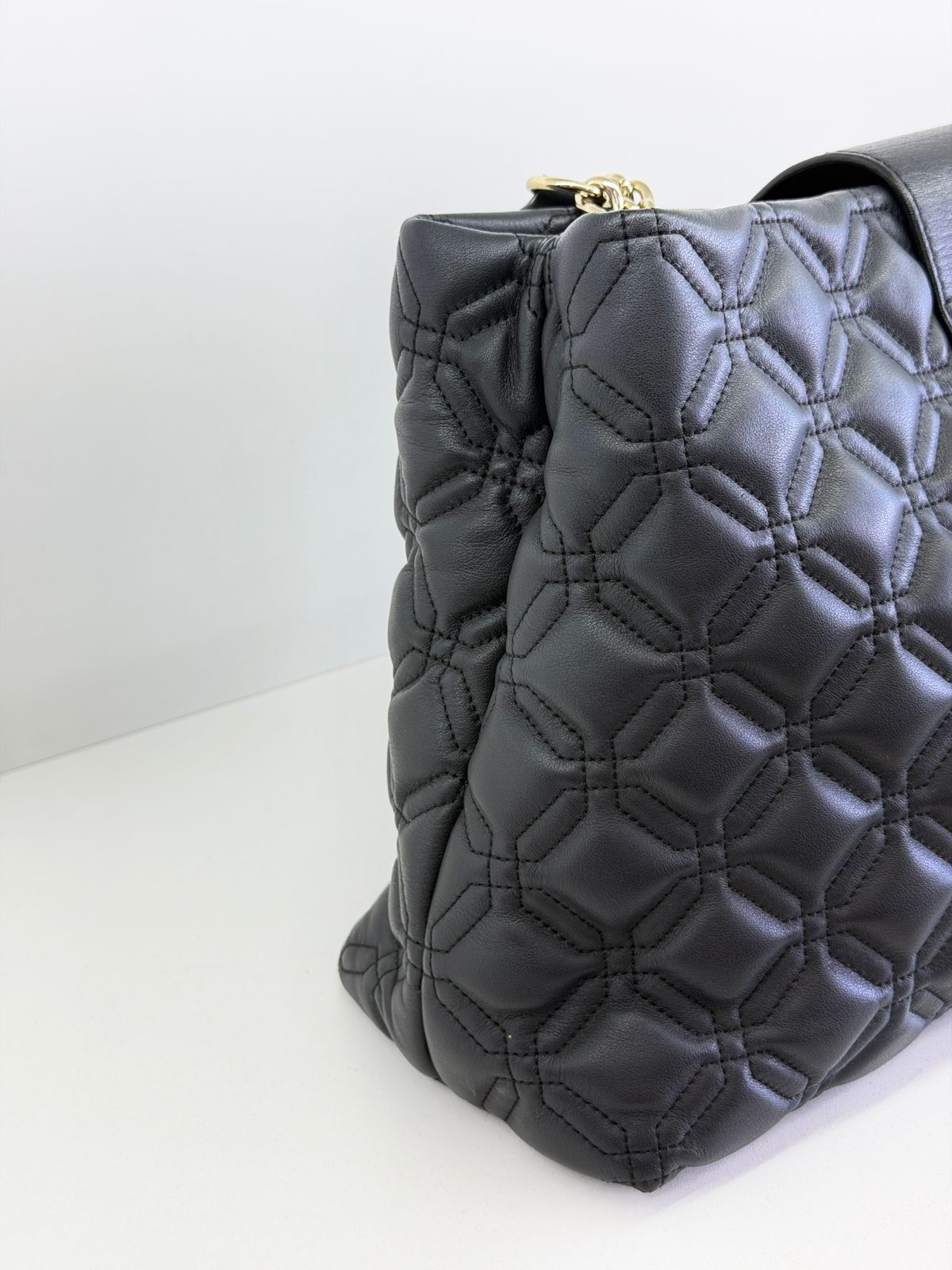 • Confeccionada em couro com acabamento matelassê;