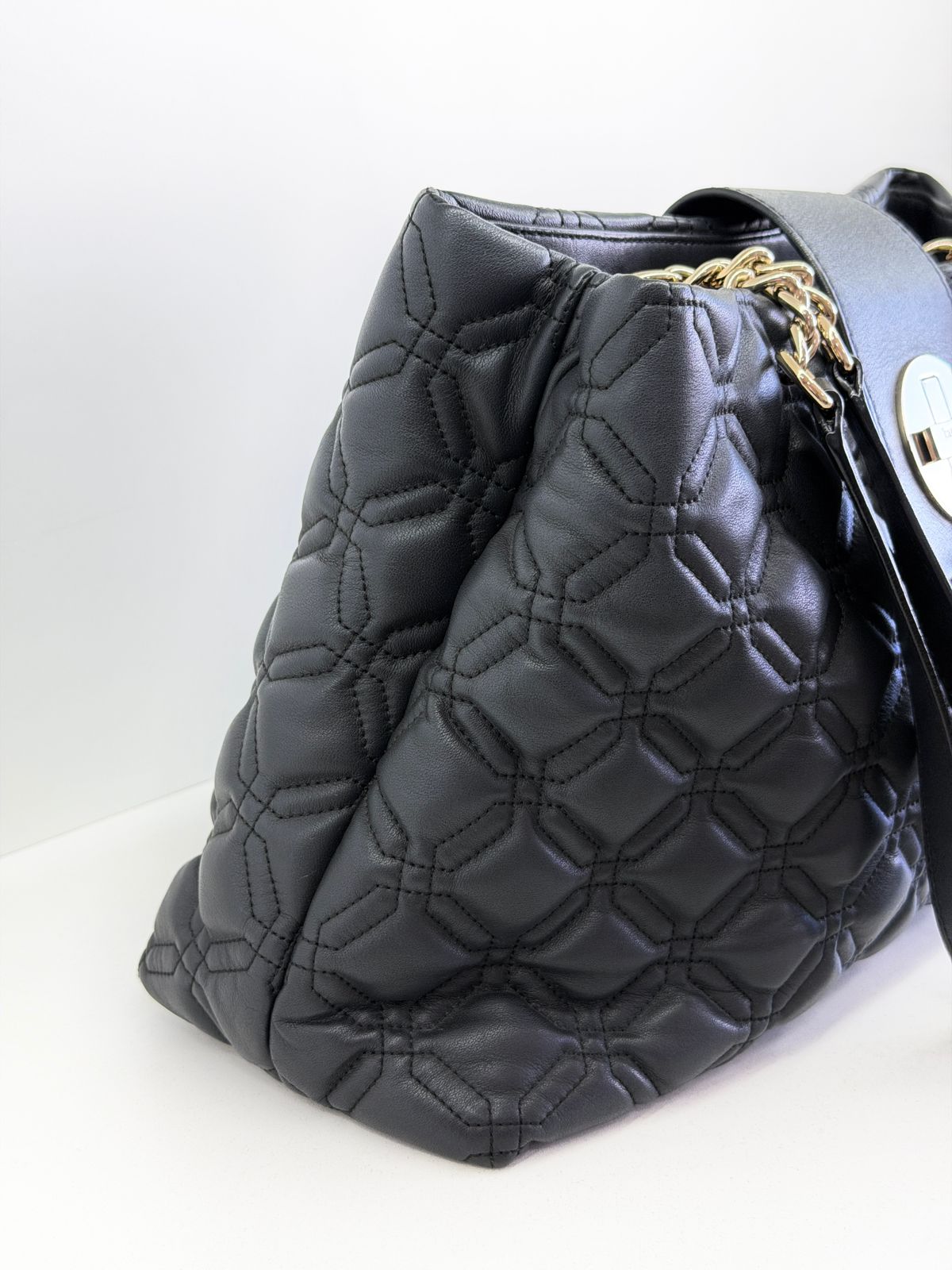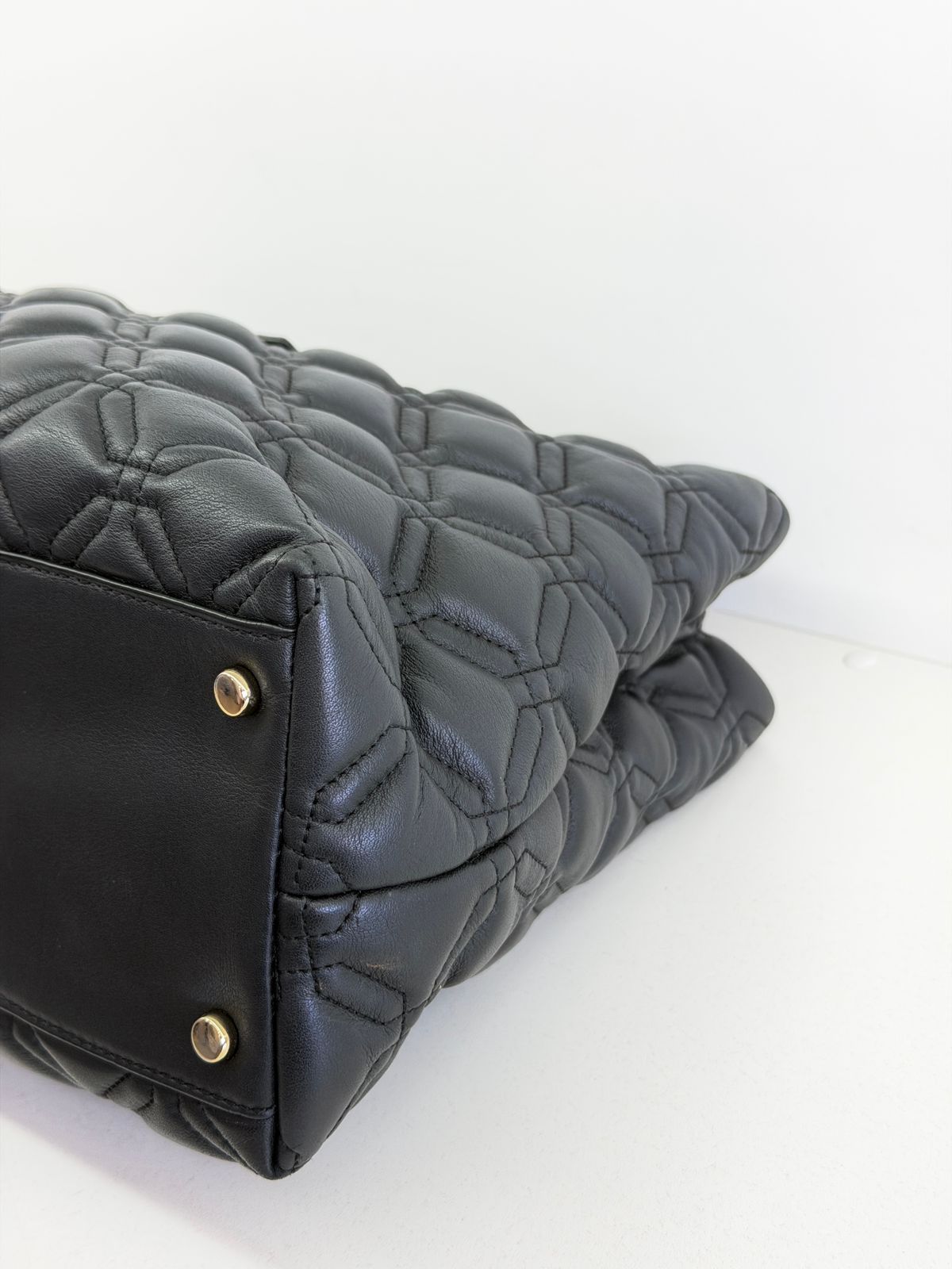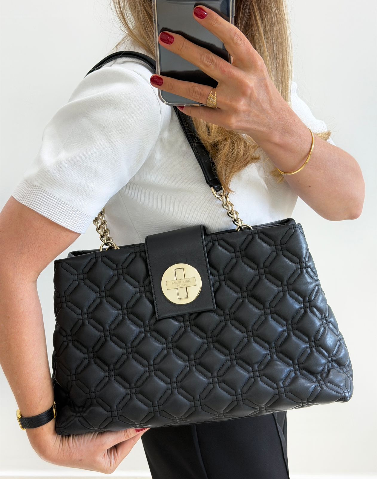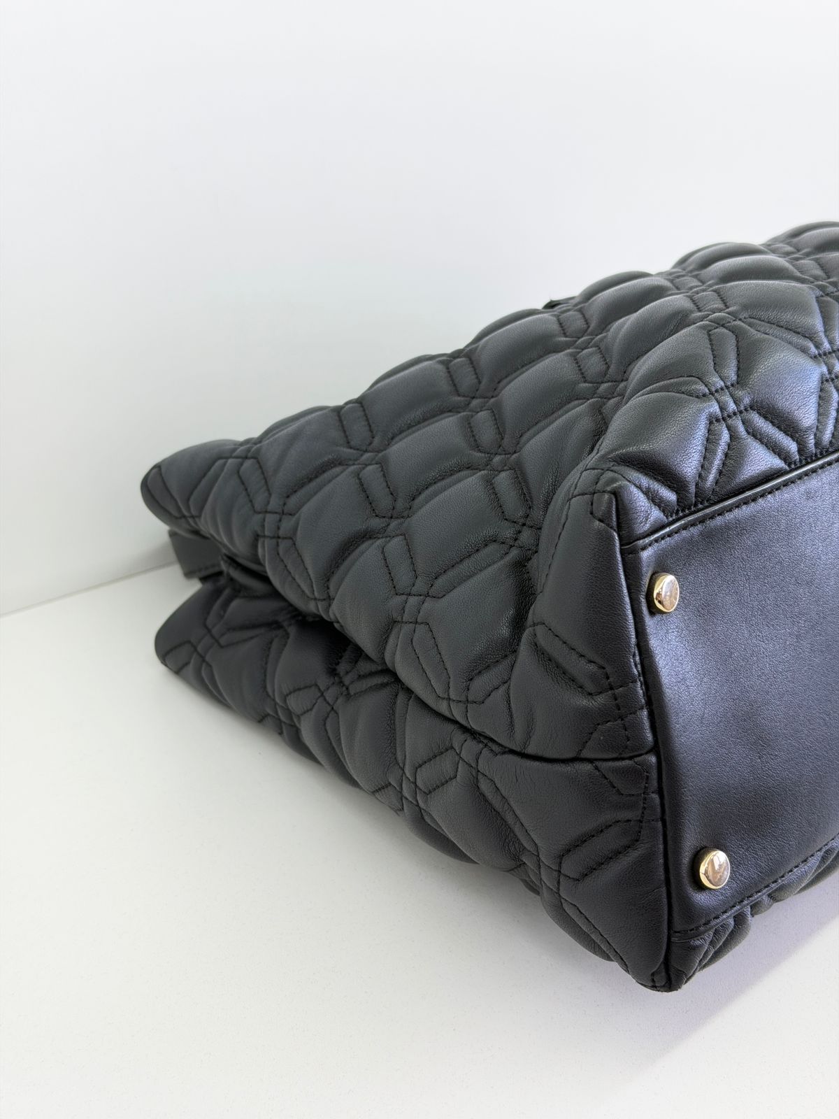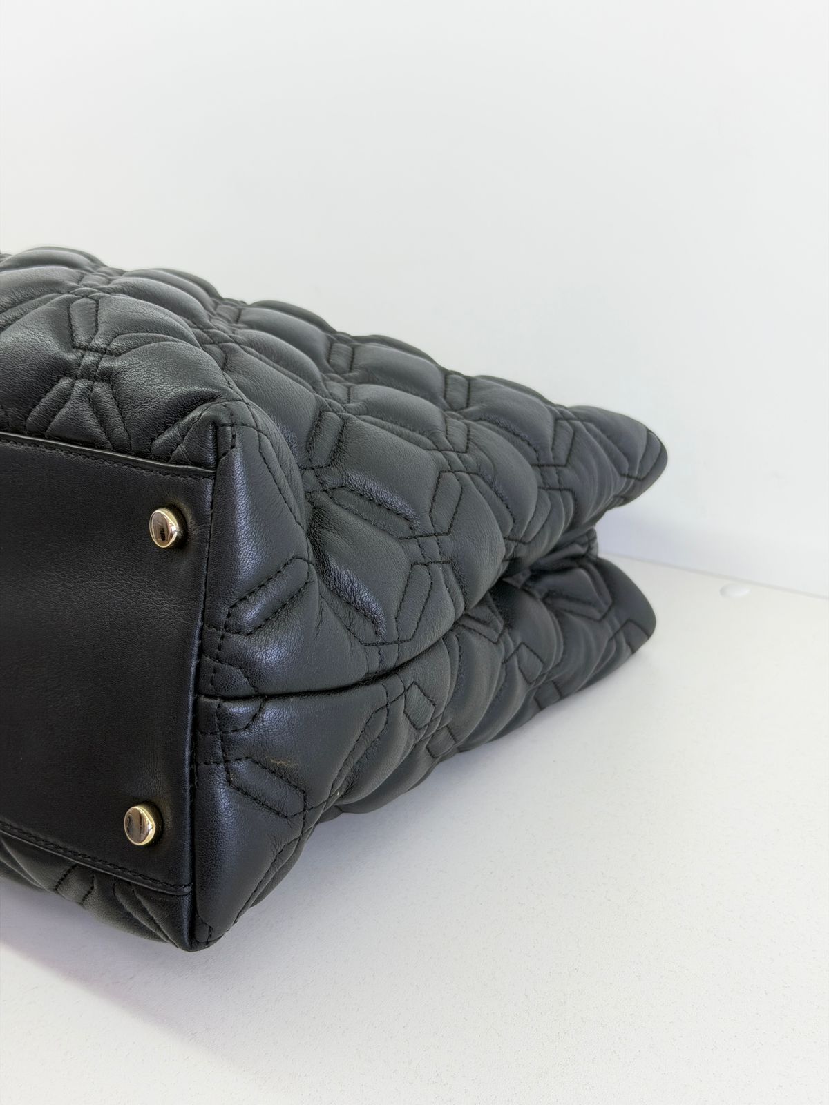 • Confeccionada em couro com acabamento matelassê;