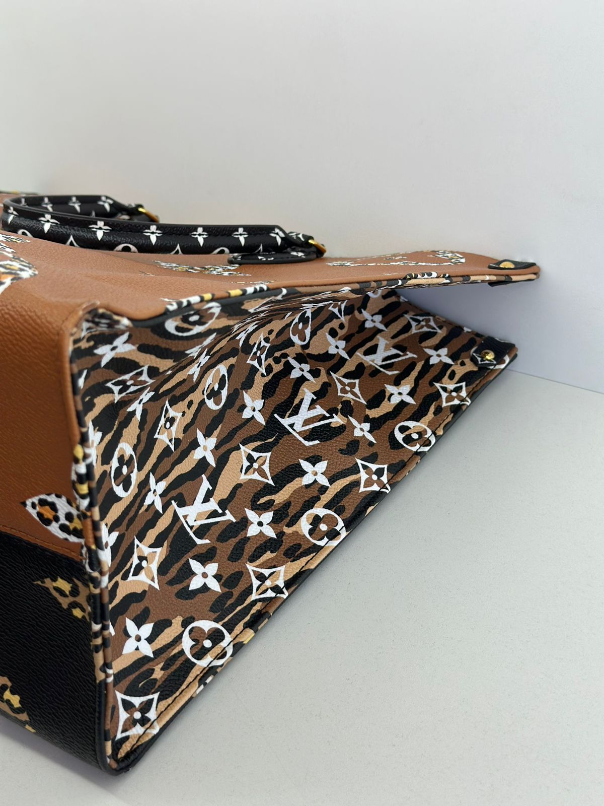 - Confeccionada em canvas monogram Giante Jugle;