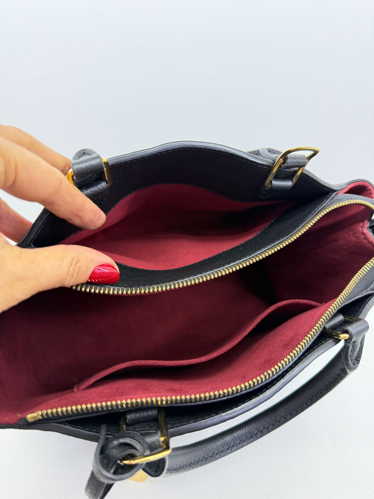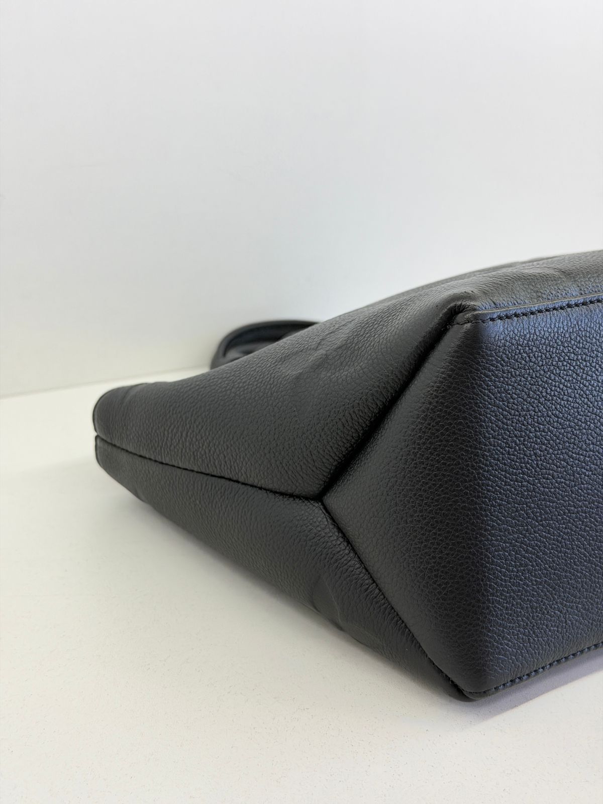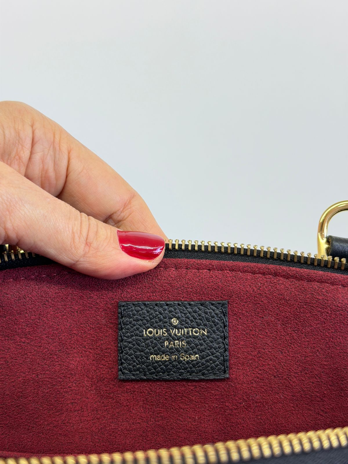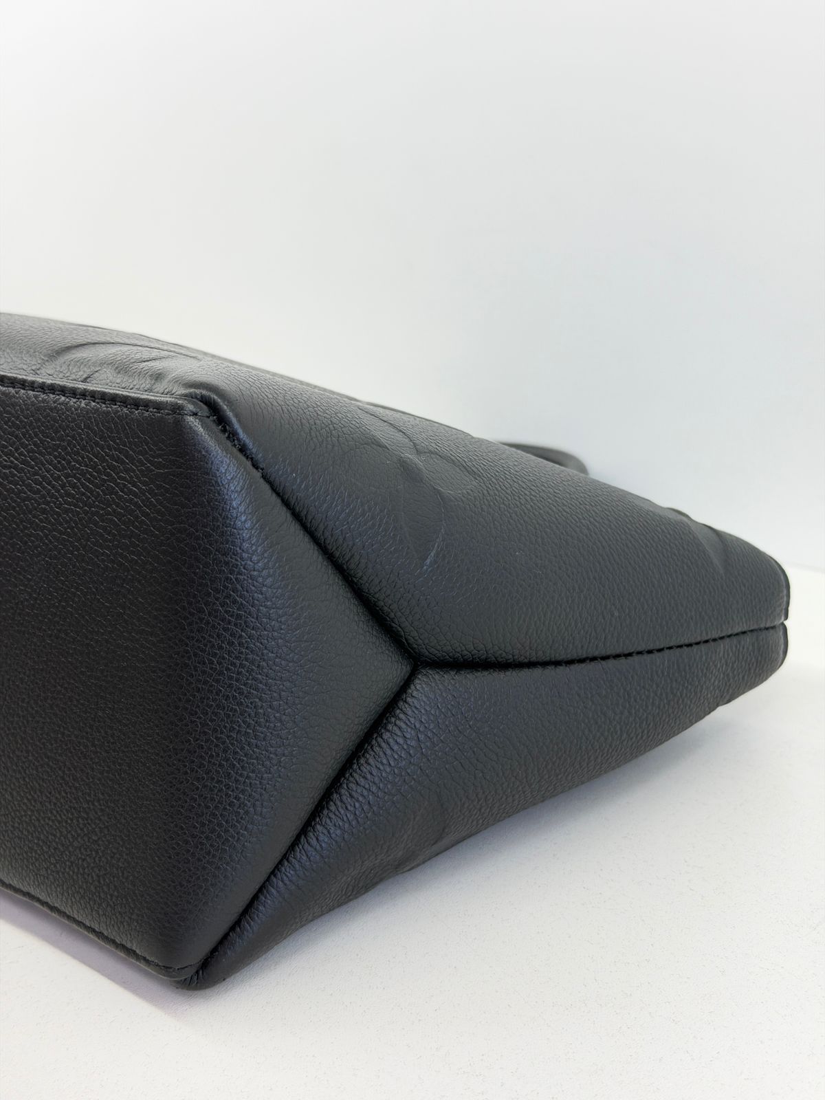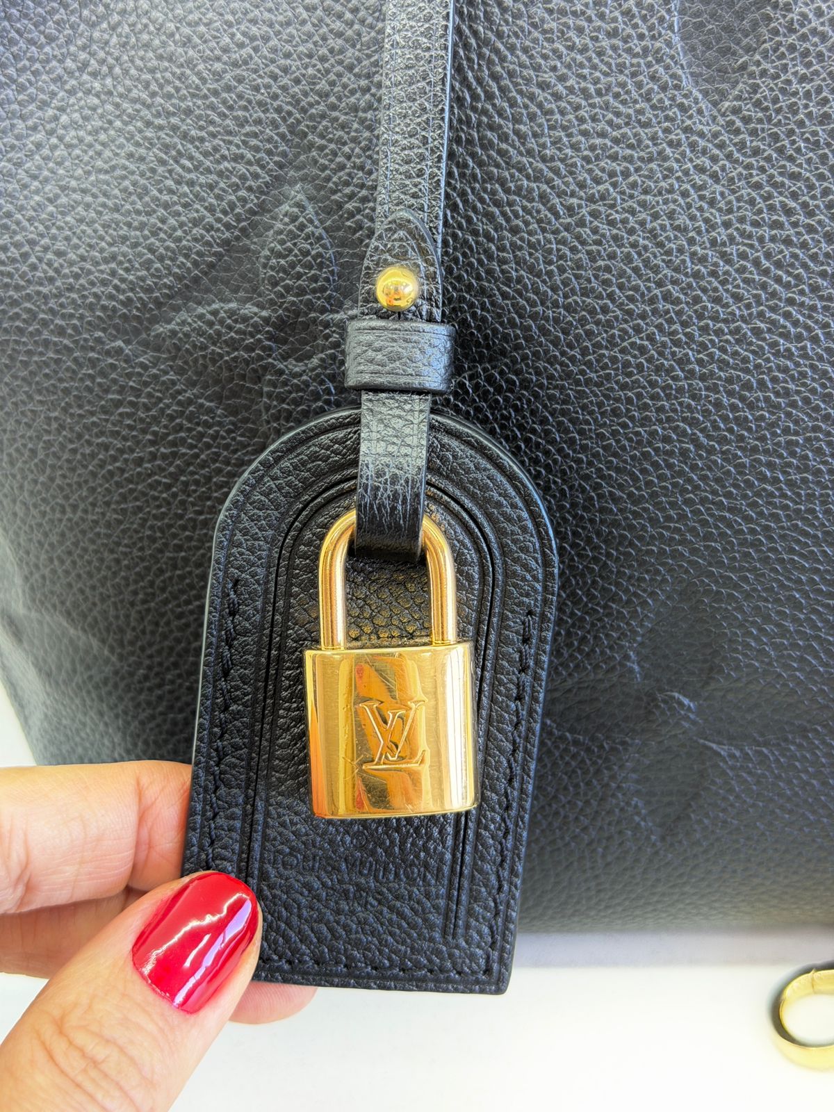 Bolsa Louis Vuitton Petit Empreint PM, confeccionada em canvas Monogram na cor preta, forro em tecido na cor marsala, ferragens no dourado, no seu interior o compartimento único, possui dois bolsos planos, alça dupla de mão e uma alça longa ajustável e removível. Um modelo sofisticado, estruturada com formato com leves ondulações na partes superior, atemporal e indispensável para compor produções elegantes com personalidade.