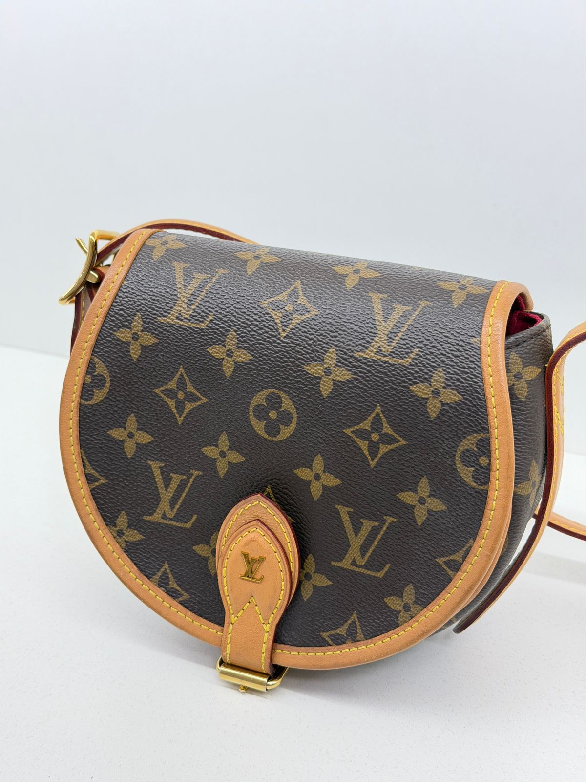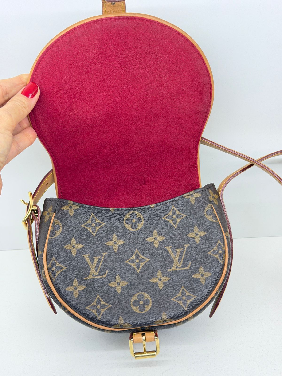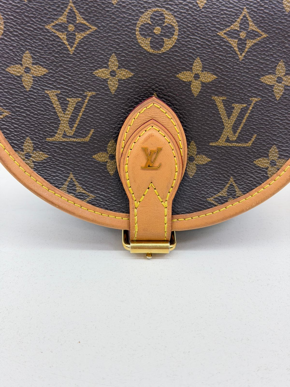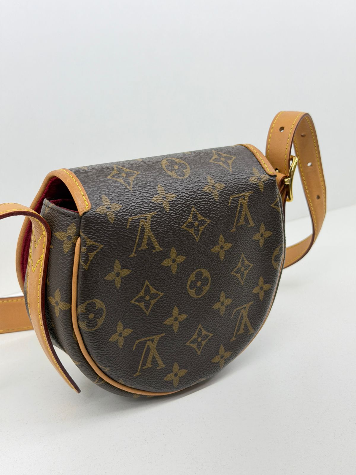 Bolsa Louis Vuitton Tambourin, confeccionada em canvas com estampa Monograma da marca e detalhes em couro vachetta, ferragens no dourado, fecho principal por aba flap e fivela, alça longa ajustável, podendo ser usada transversal ou de ombro, compartimento interno único, forro em tecido na cor marsala e um bolso plano interno. Um peça ideal para quem busca um acessório luxuoso, pratico e perfeito para compor produções casuais ou sofisticadas.