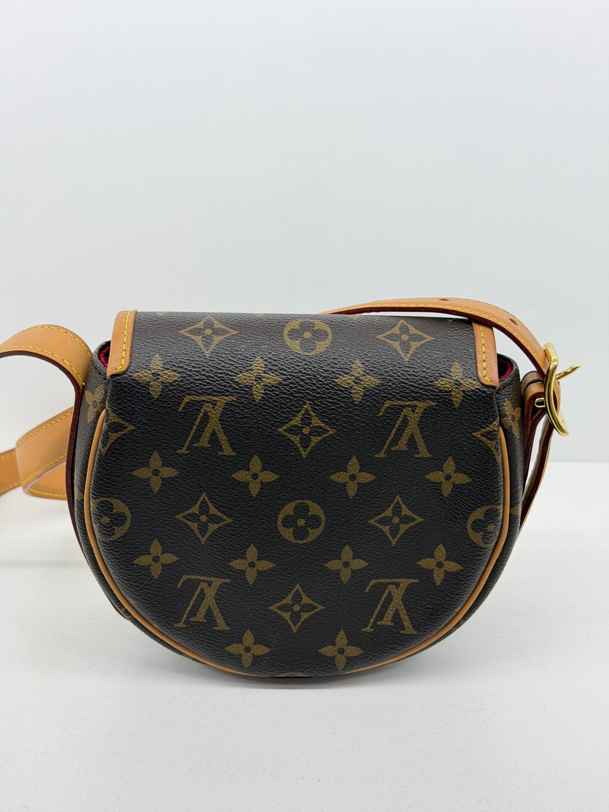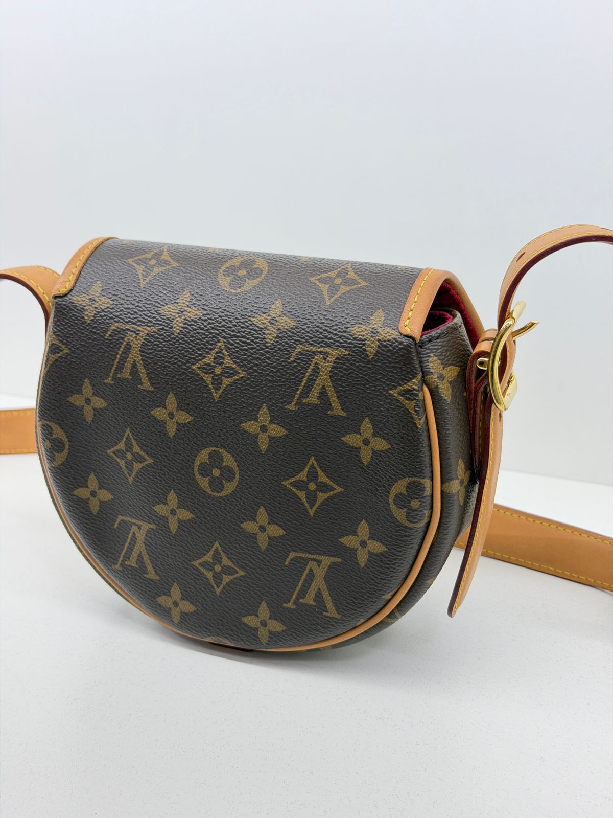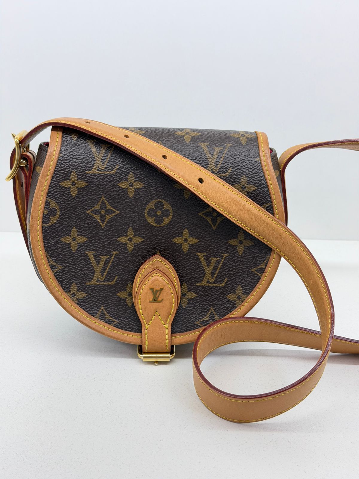 Bolsa Louis Vuitton Tambourin, confeccionada em canvas com estampa Monograma da marca e detalhes em couro vachetta, ferragens no dourado, fecho principal por aba flap e fivela, alça longa ajustável, podendo ser usada transversal ou de ombro, compartimento interno único, forro em tecido na cor marsala e um bolso plano interno. Um peça ideal para quem busca um acessório luxuoso, pratico e perfeito para compor produções casuais ou sofisticadas.