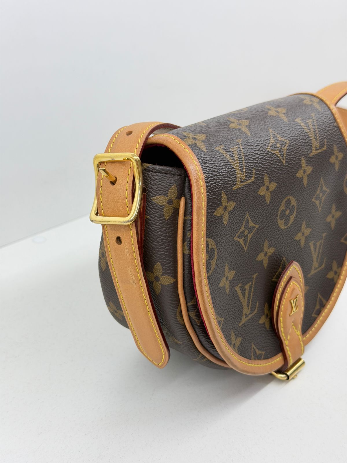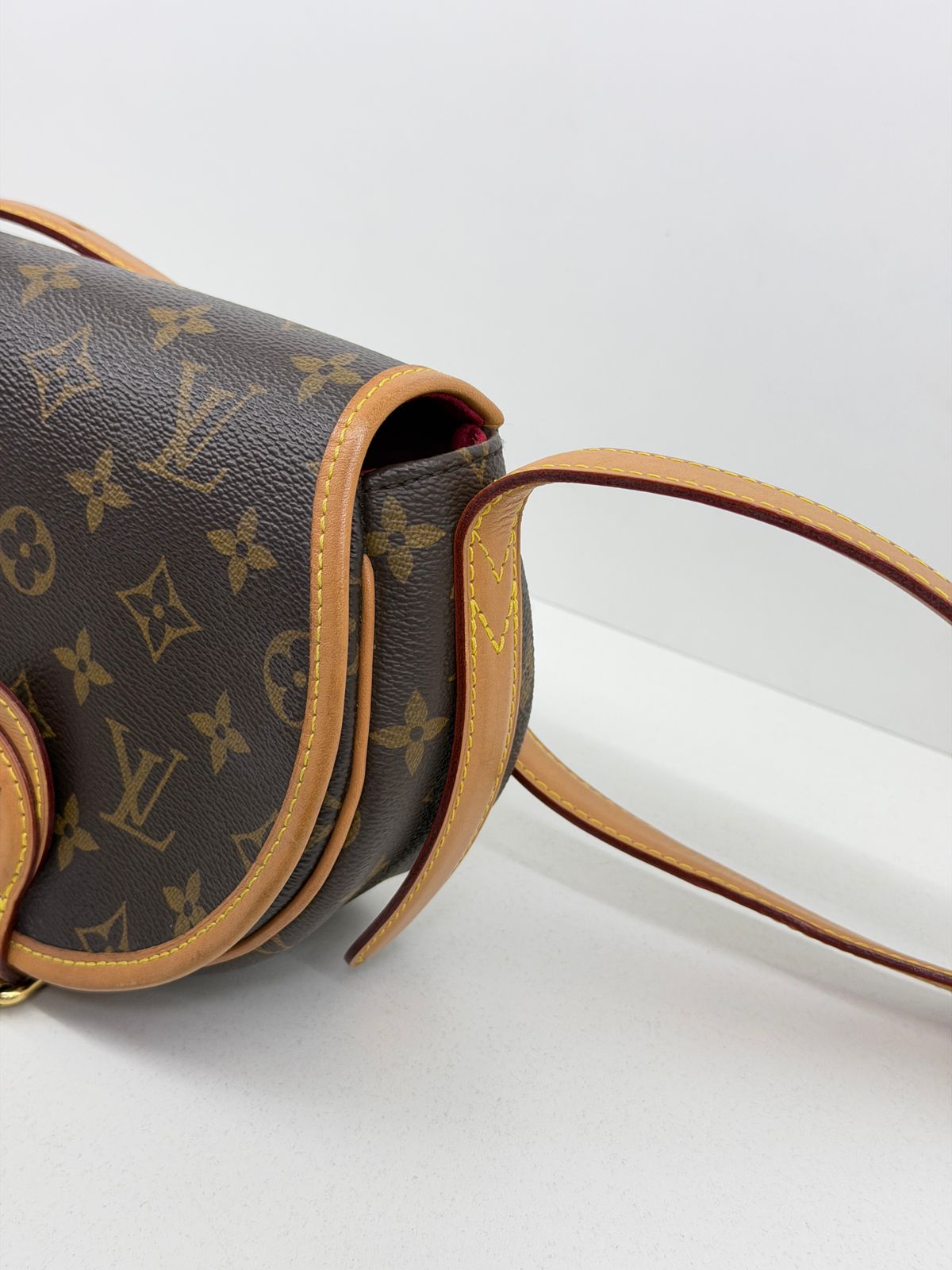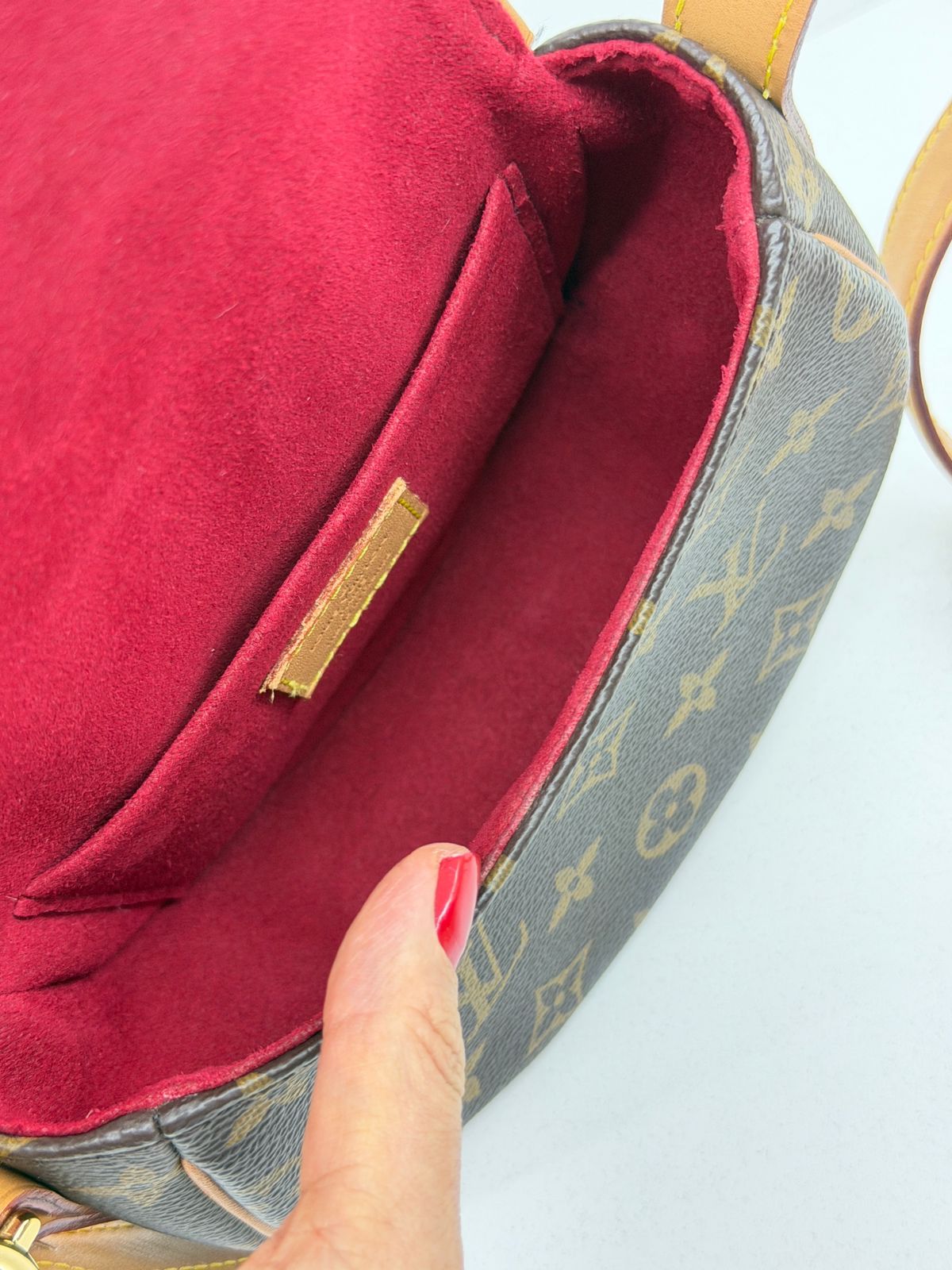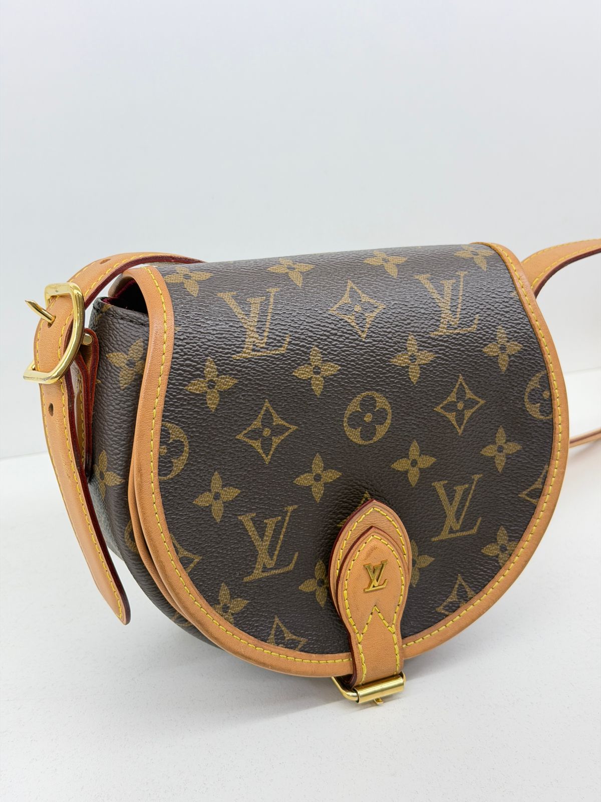 Bolsa Louis Vuitton Tambourin, confeccionada em canvas com estampa Monograma da marca e detalhes em couro vachetta, ferragens no dourado, fecho principal por aba flap e fivela, alça longa ajustável, podendo ser usada transversal ou de ombro, compartimento interno único, forro em tecido na cor marsala e um bolso plano interno. Um peça ideal para quem busca um acessório luxuoso, pratico e perfeito para compor produções casuais ou sofisticadas.