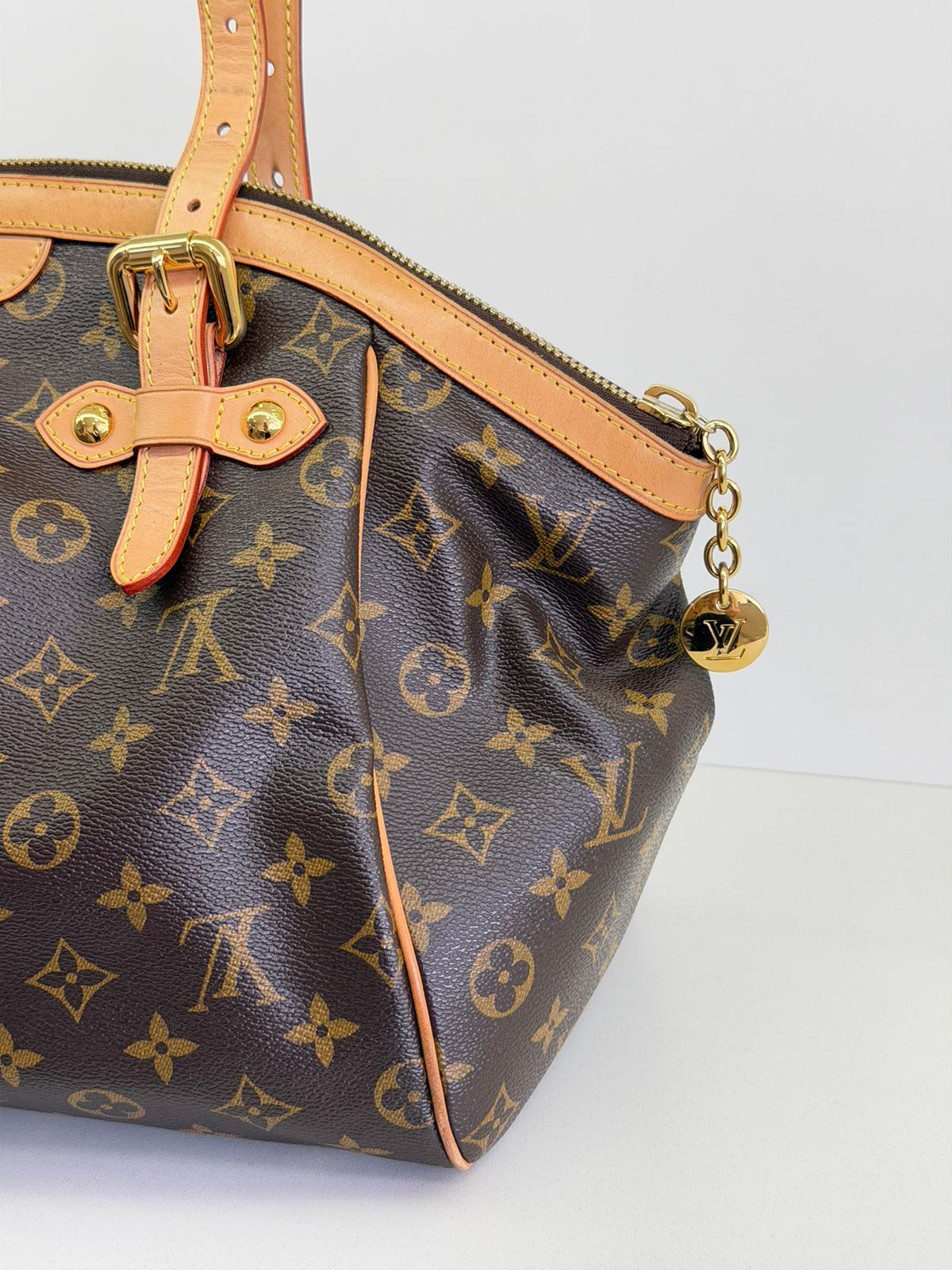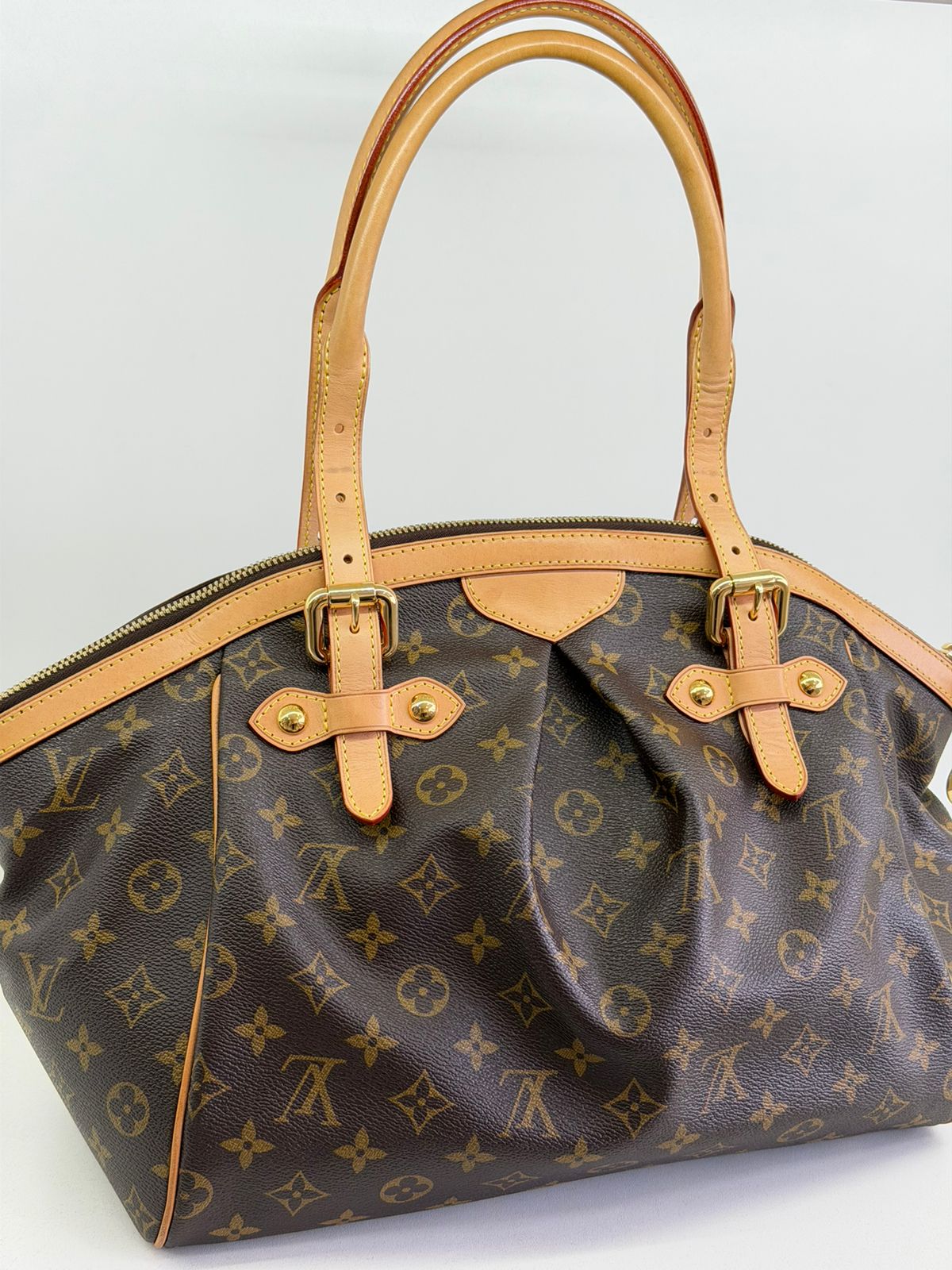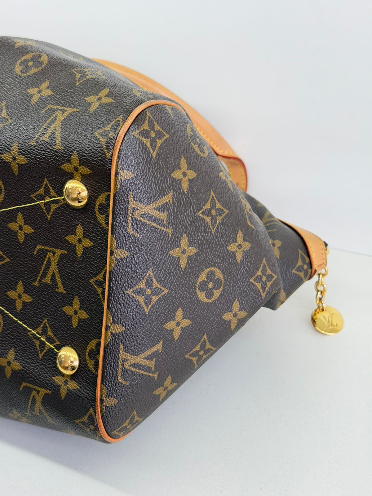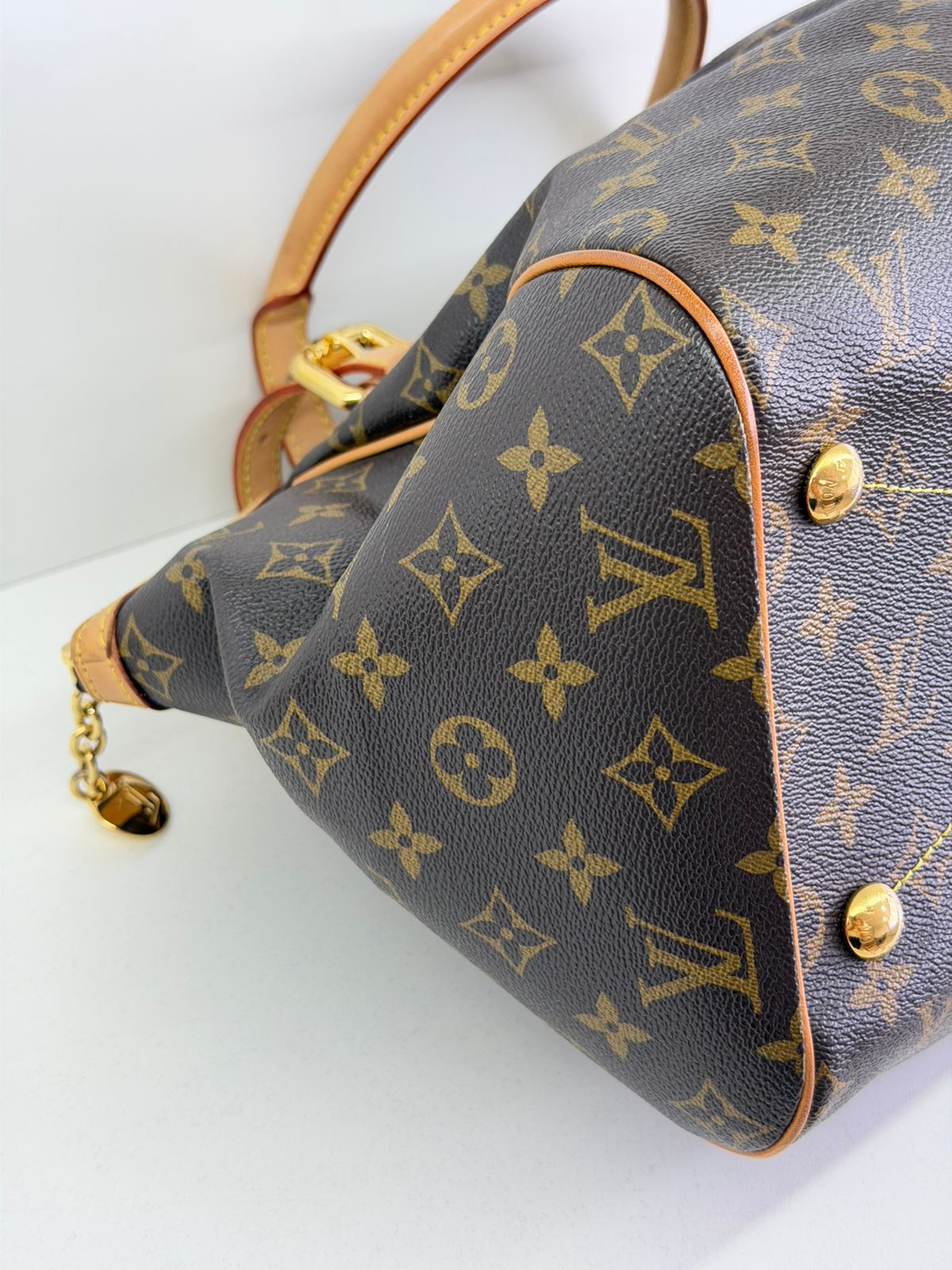 Bolsa Louis Vuitton Tivolli GM, confeccionada em canvas monogram. Possui acabamento em couro Vachetta, ferragens no dourado, fecho principal em zíper com chaveiro, compartimento interno único, com três bolsos planos, possui alças duplas. Uma bolsa espaçosa, funcional ótima opção para o dia a dia.
