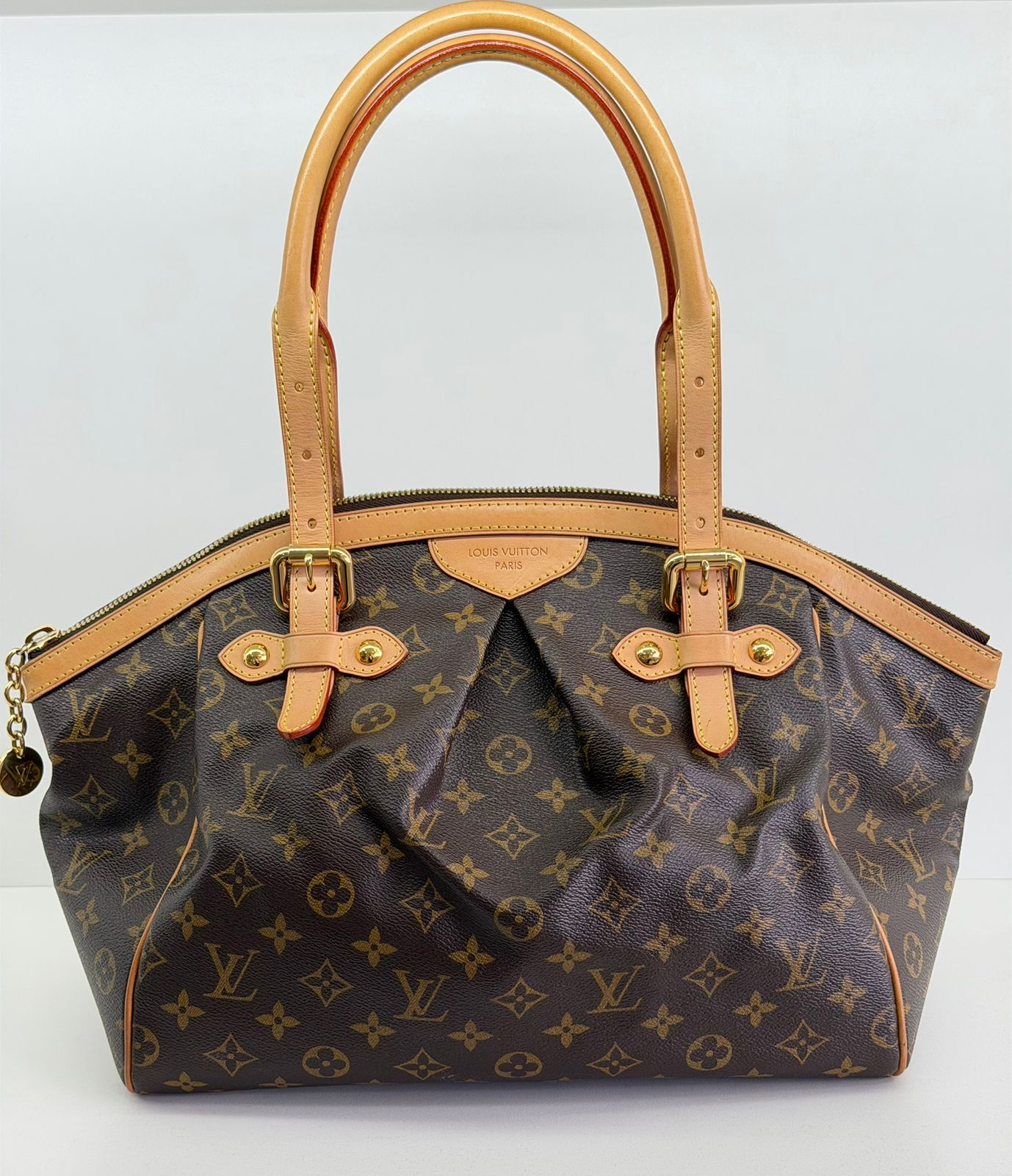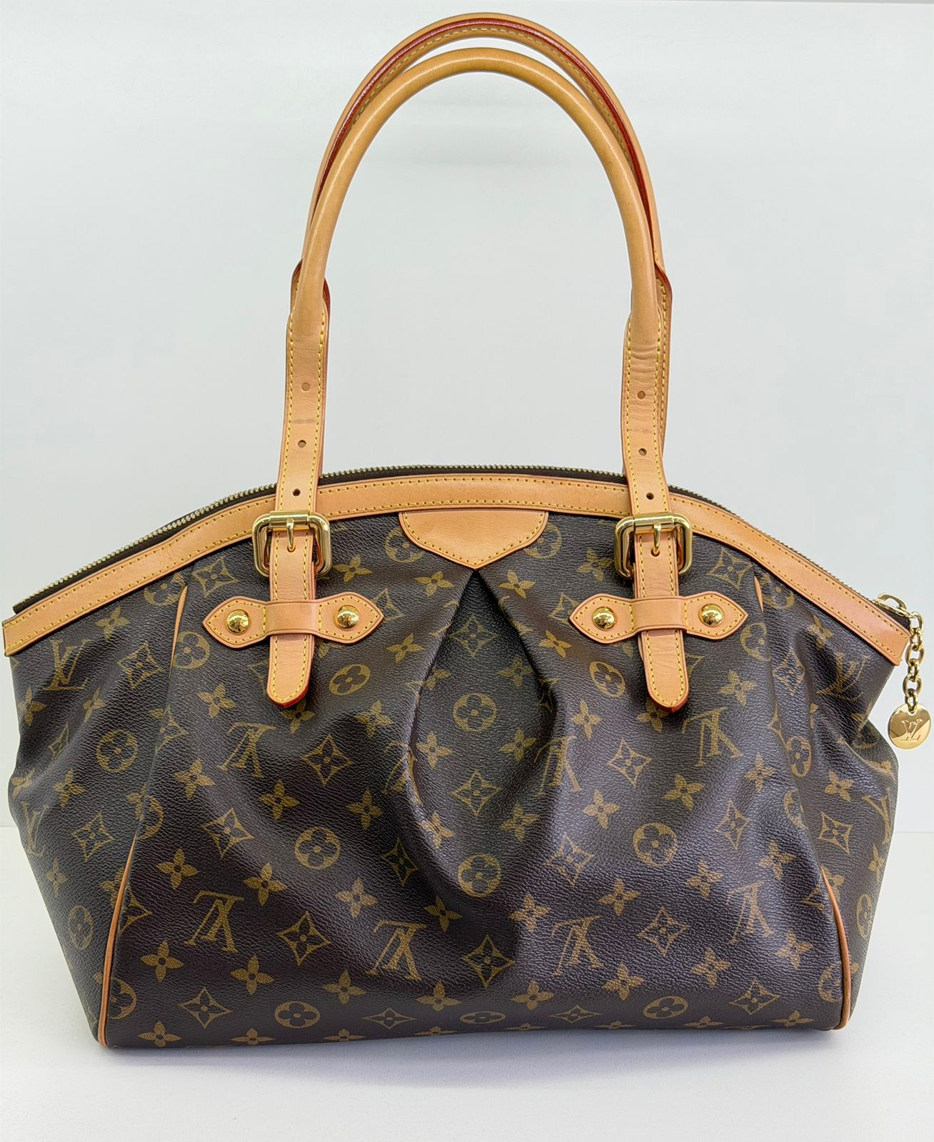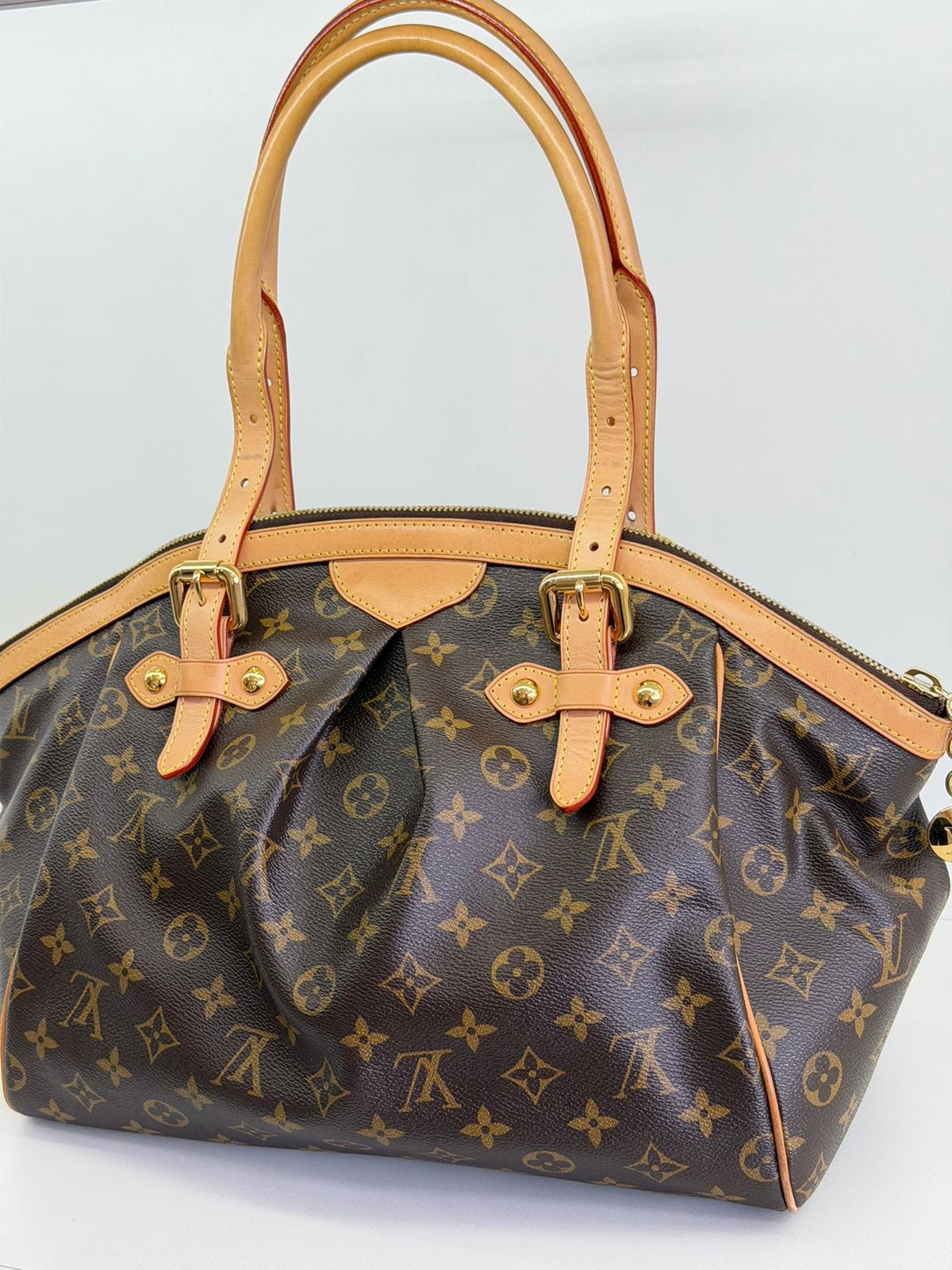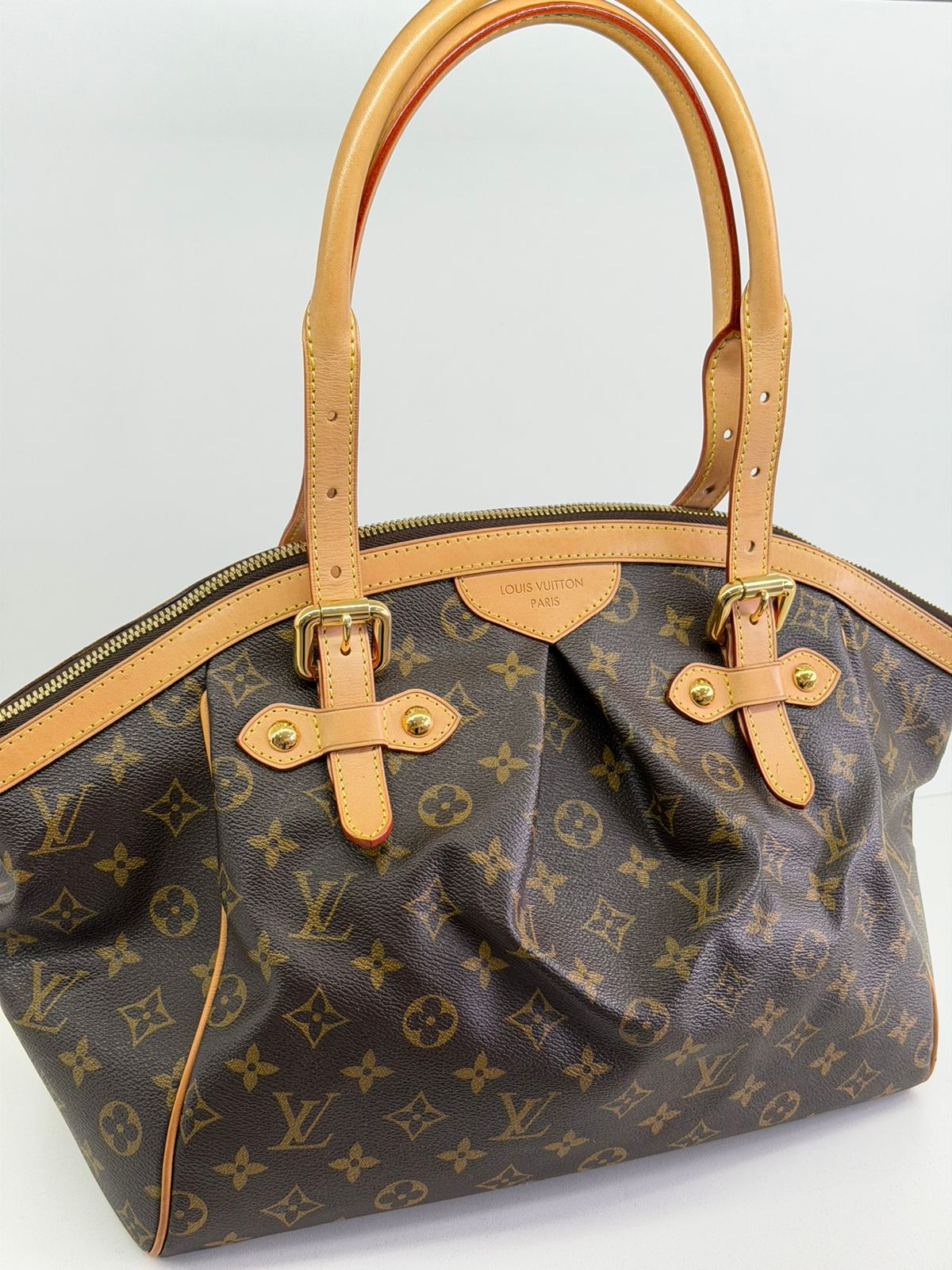 Bolsa Louis Vuitton Tivolli GM, confeccionada em canvas monogram. Possui acabamento em couro Vachetta, ferragens no dourado, fecho principal em zíper com chaveiro, compartimento interno único, com três bolsos planos, possui alças duplas. Uma bolsa espaçosa, funcional ótima opção para o dia a dia.