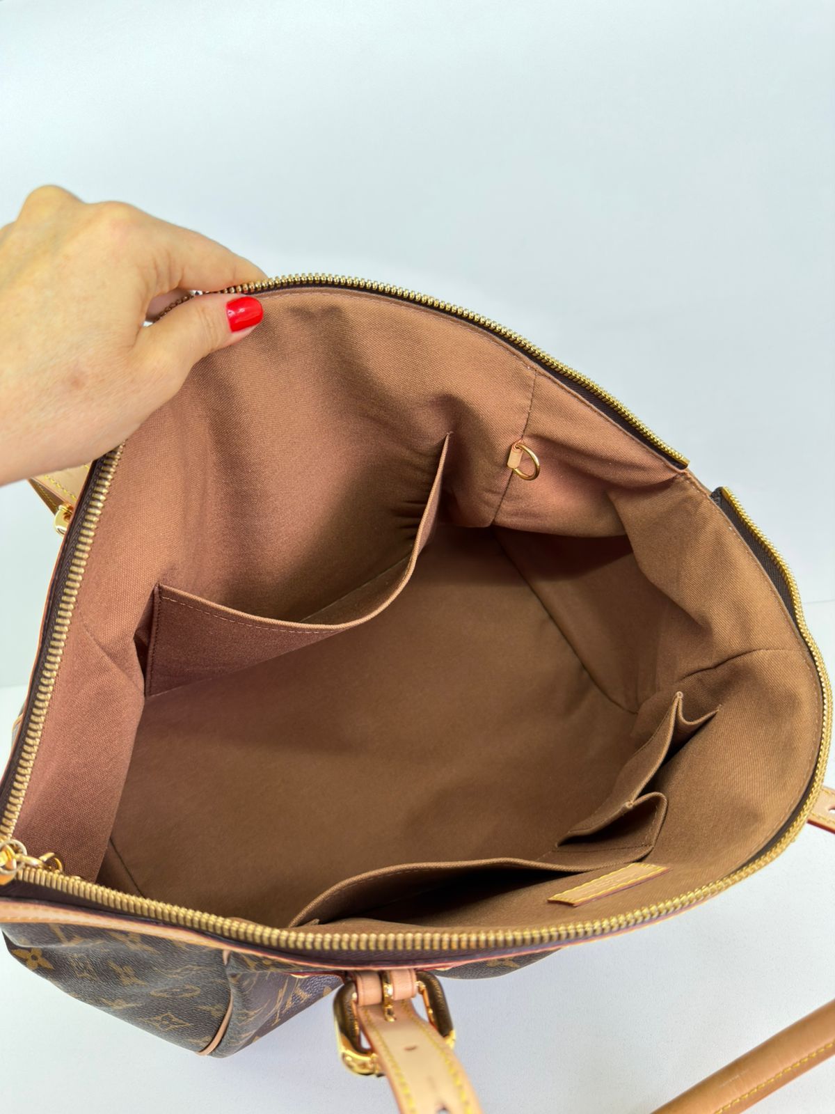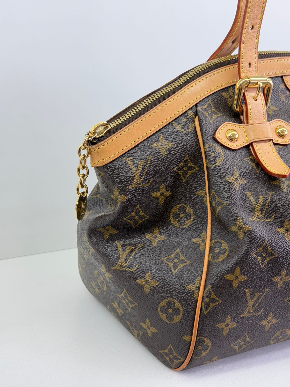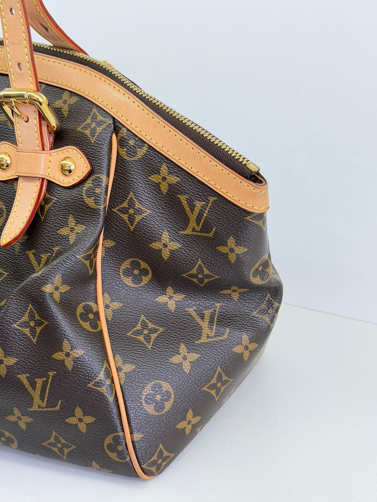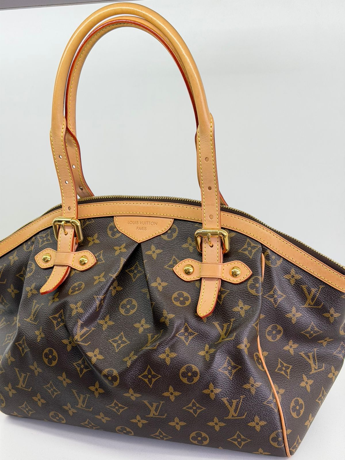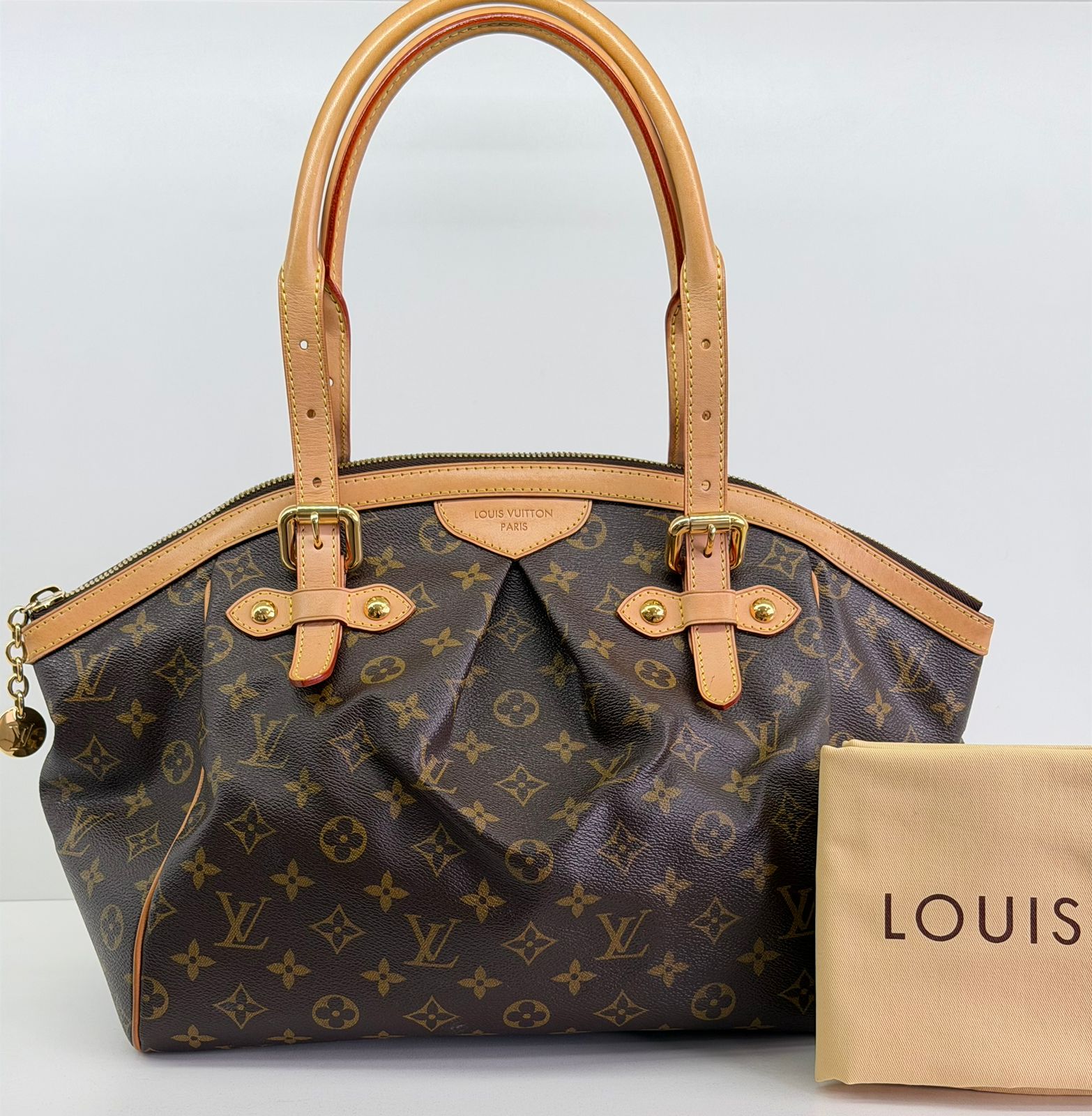 Bolsa Louis Vuitton Tivolli GM, confeccionada em canvas monogram. Possui acabamento em couro Vachetta, ferragens no dourado, fecho principal em zíper com chaveiro, compartimento interno único, com três bolsos planos, possui alças duplas. Uma bolsa espaçosa, funcional ótima opção para o dia a dia.