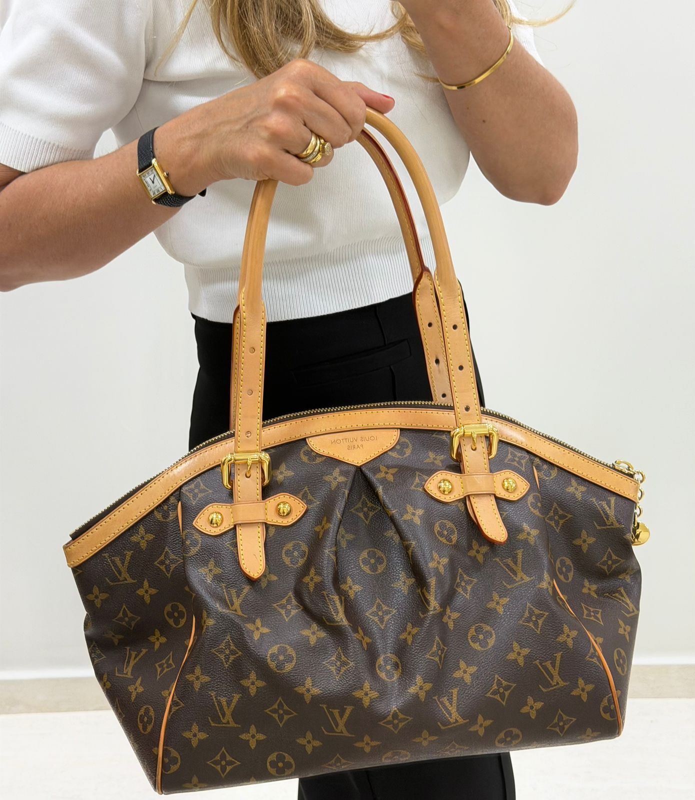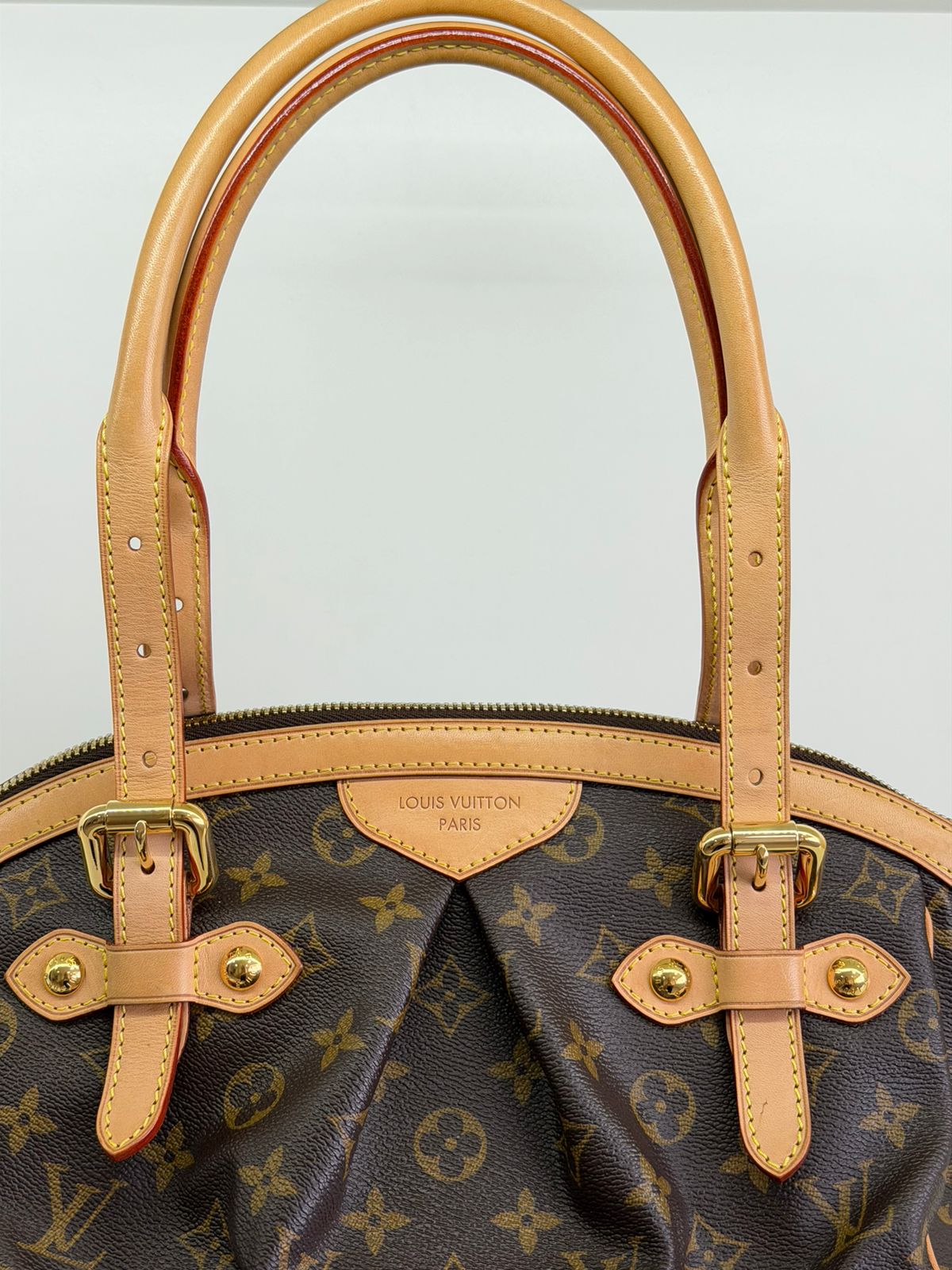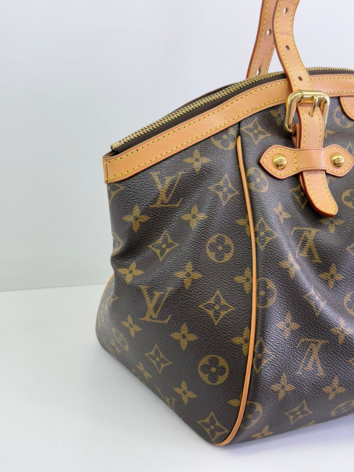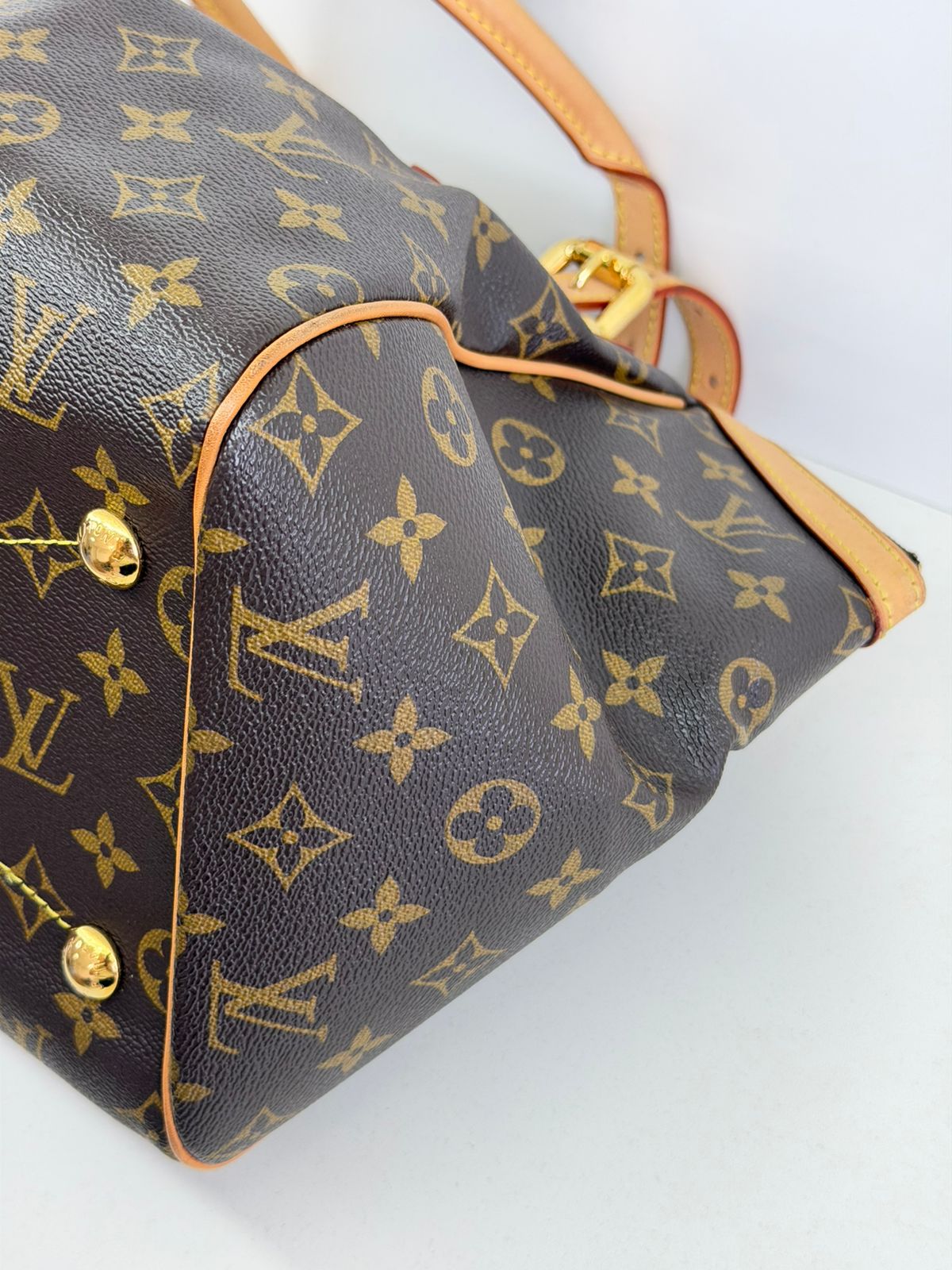 Bolsa Louis Vuitton Tivolli GM, confeccionada em canvas monogram. Possui acabamento em couro Vachetta, ferragens no dourado, fecho principal em zíper com chaveiro, compartimento interno único, com três bolsos planos, possui alças duplas. Uma bolsa espaçosa, funcional ótima opção para o dia a dia.