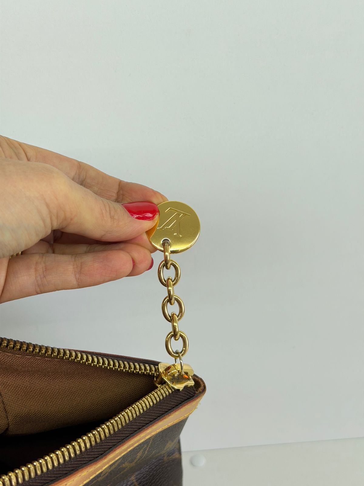 - Confeccionada em canvas monogram;