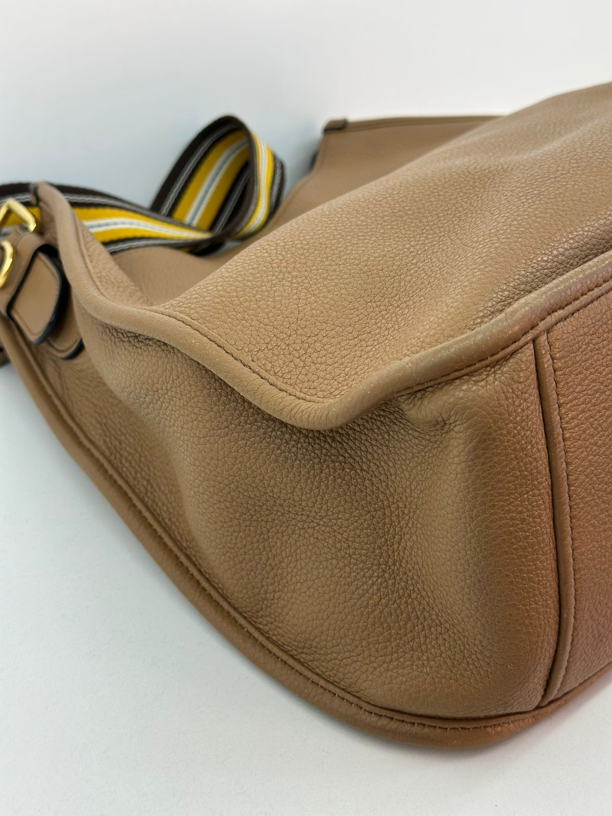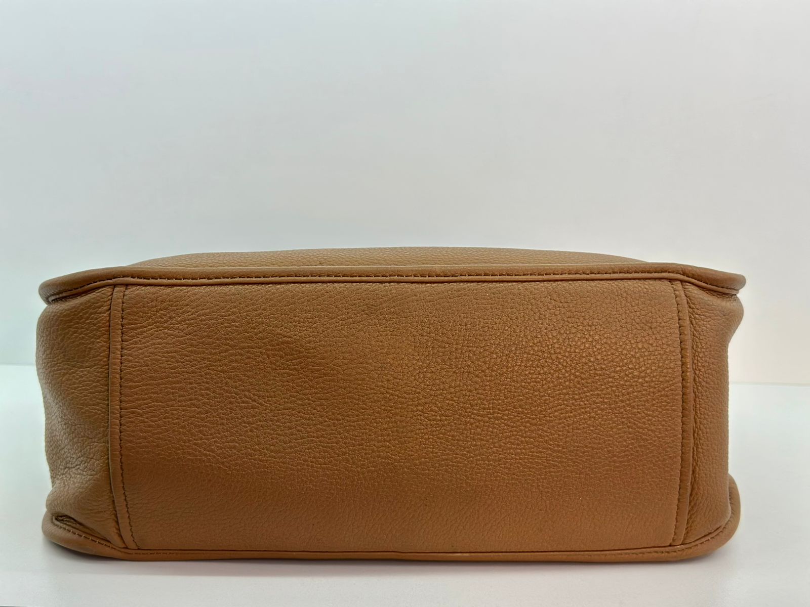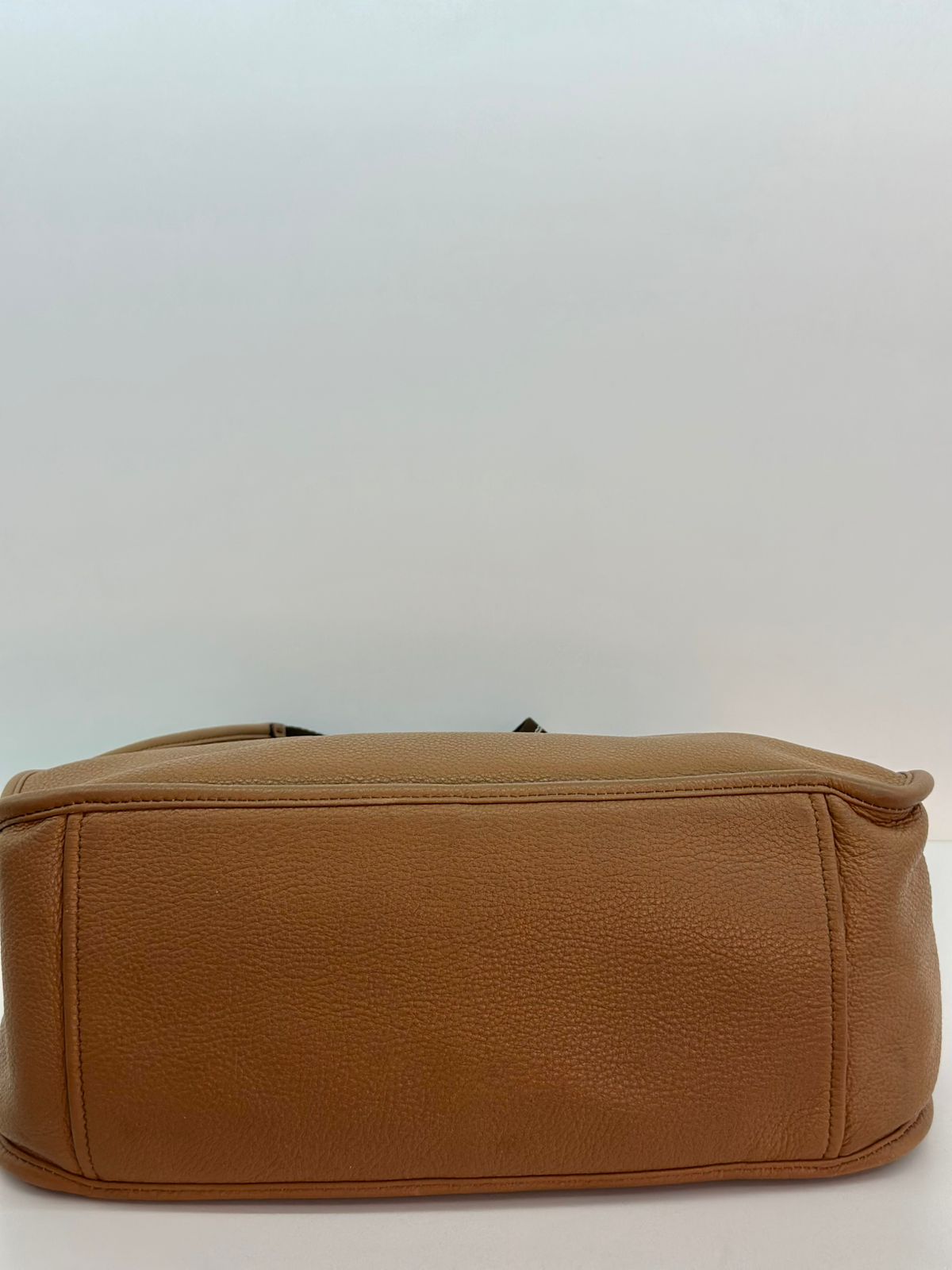 • Confeccionada em couro Daino Vitello na cor caramelo;