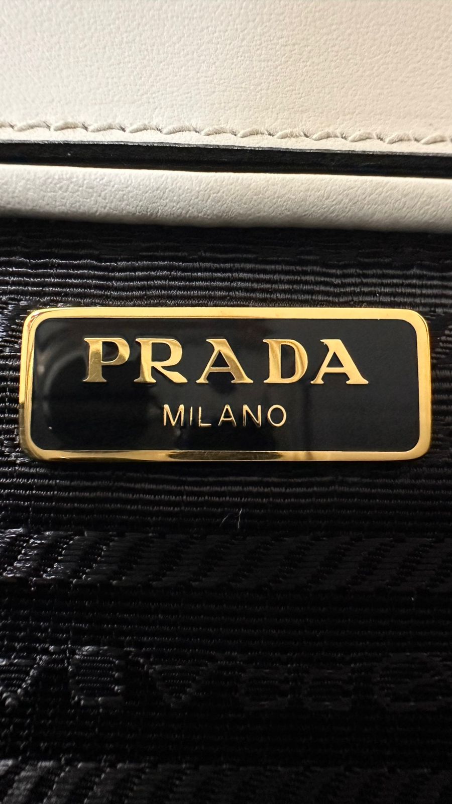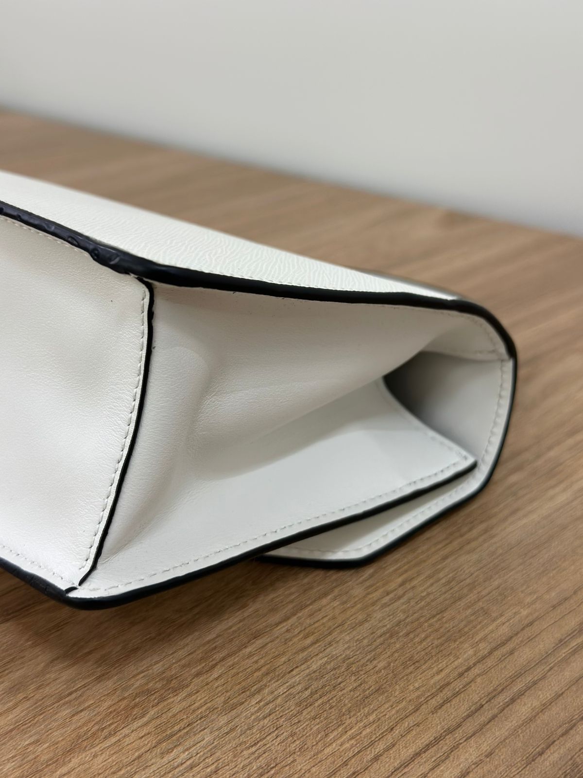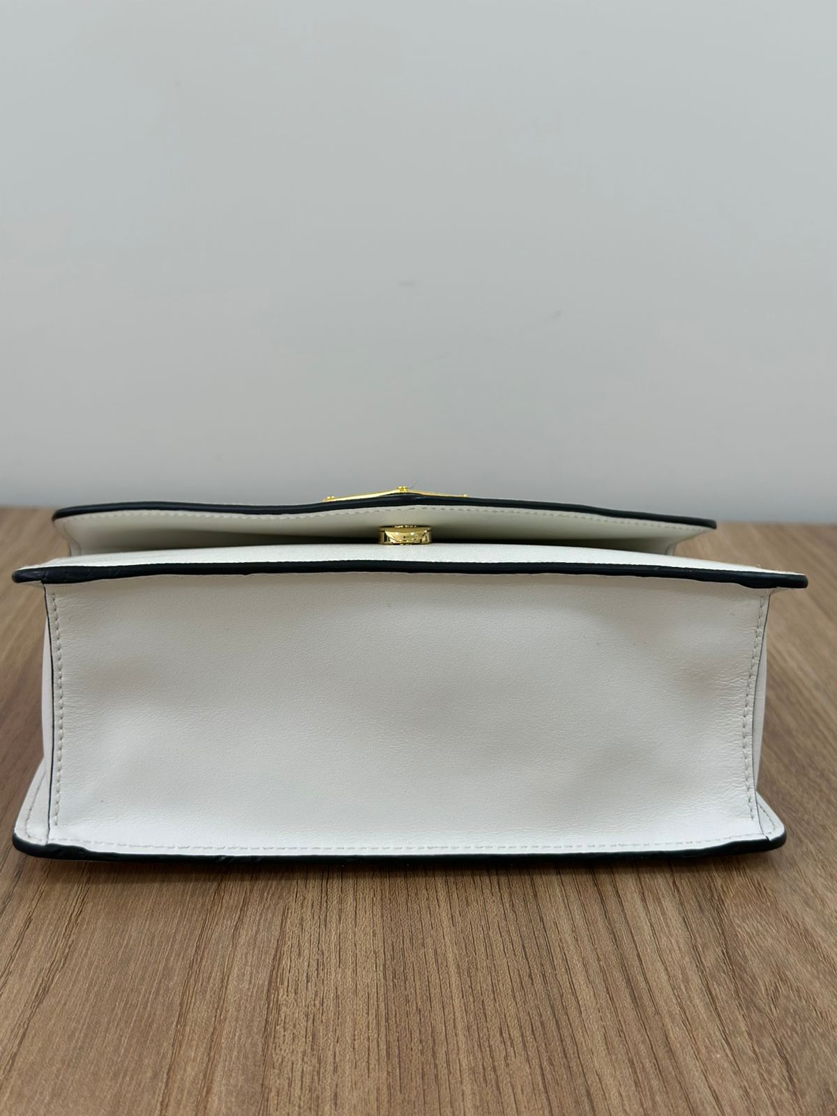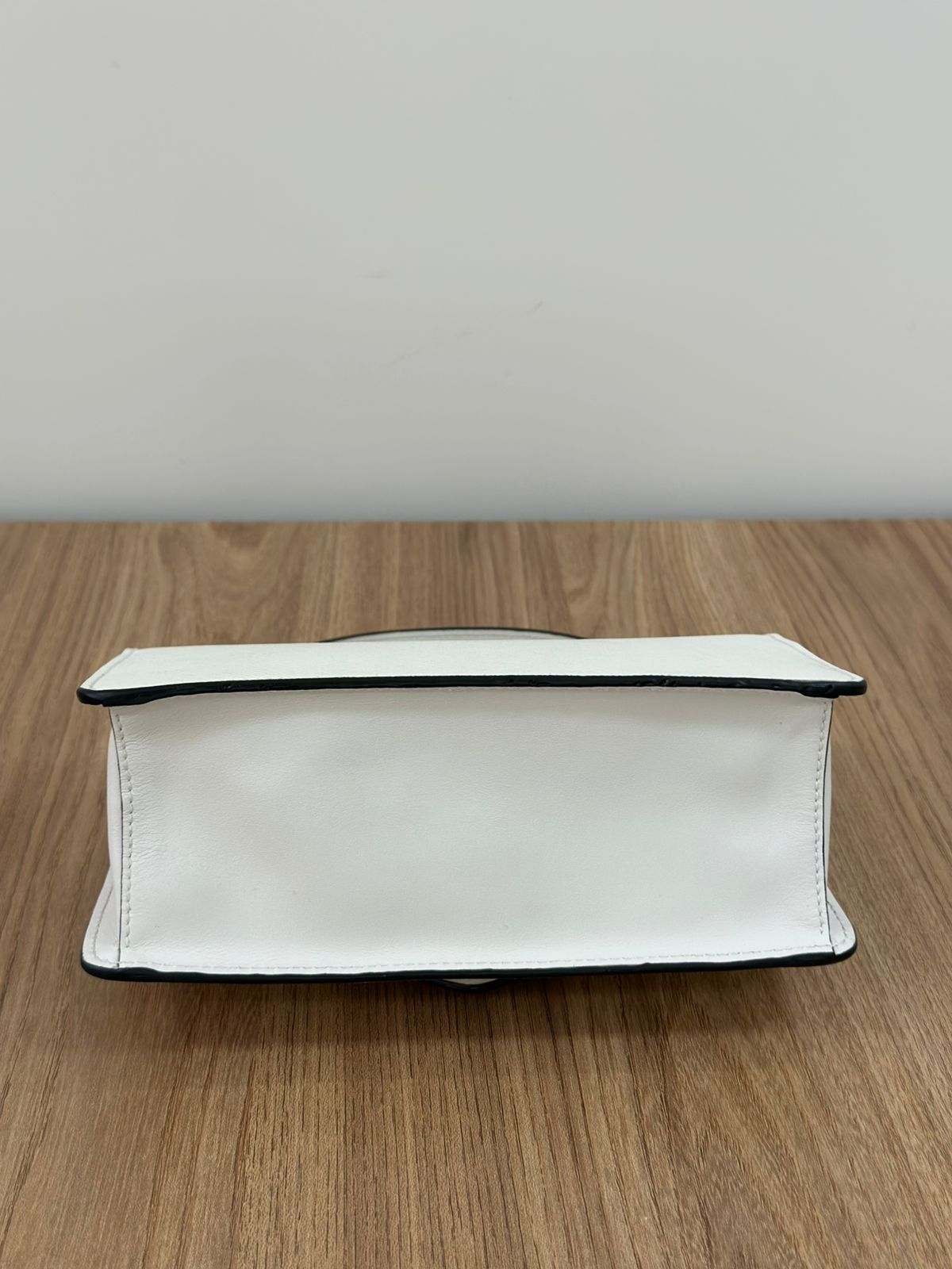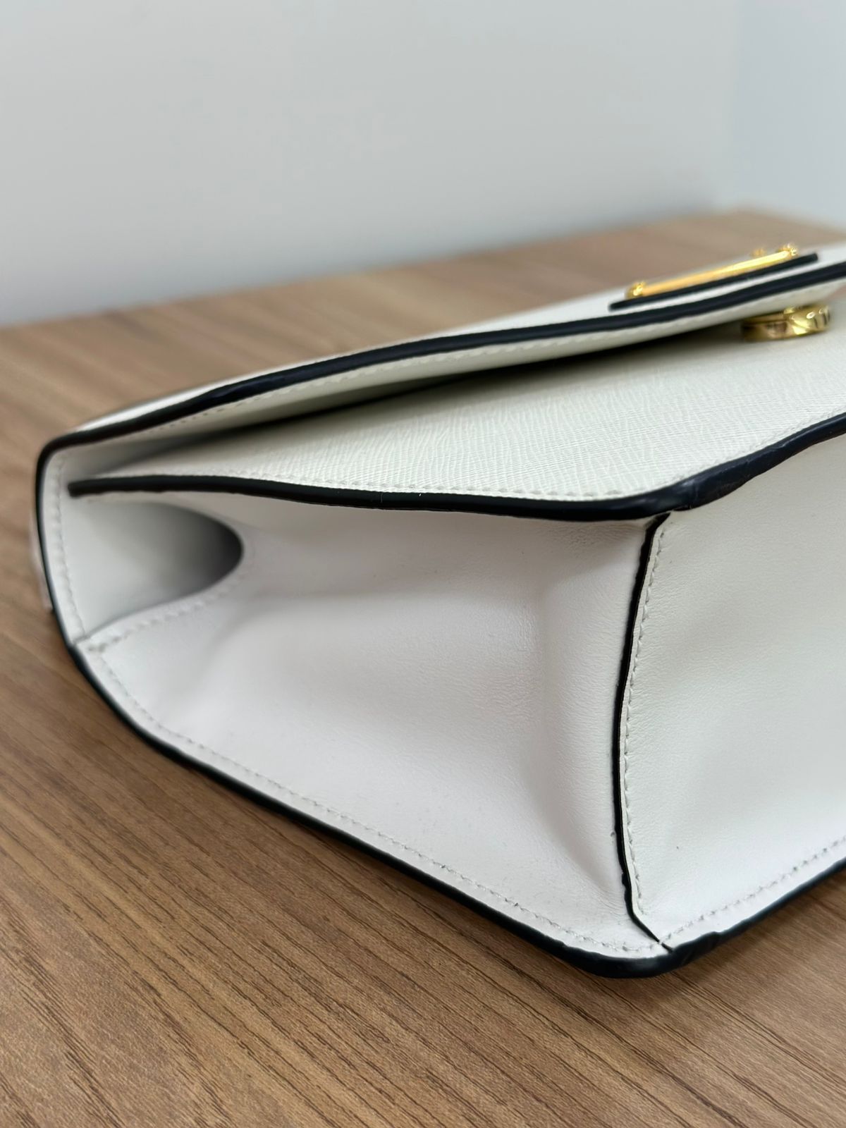 - Couro Saffiano na cor branca;