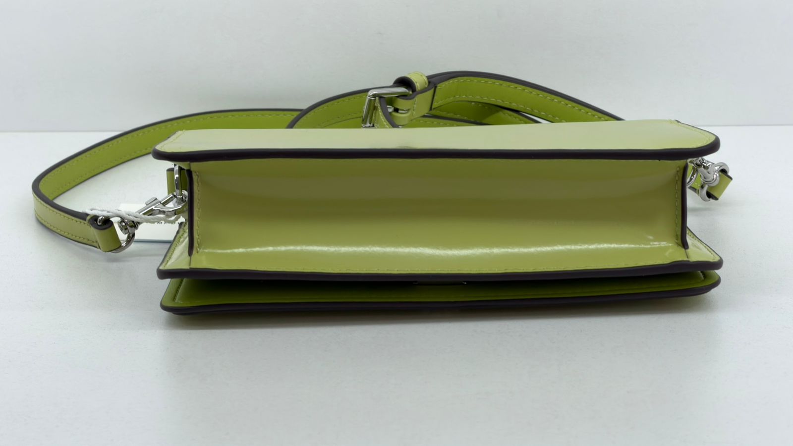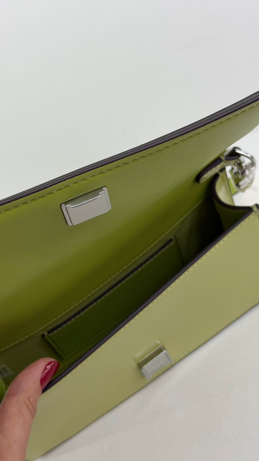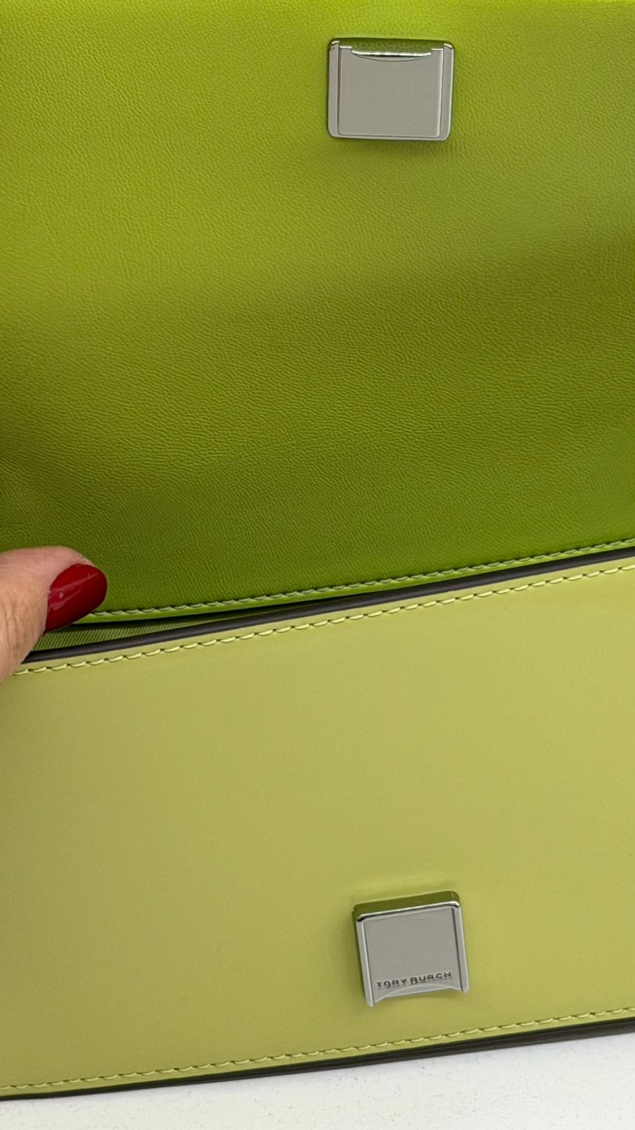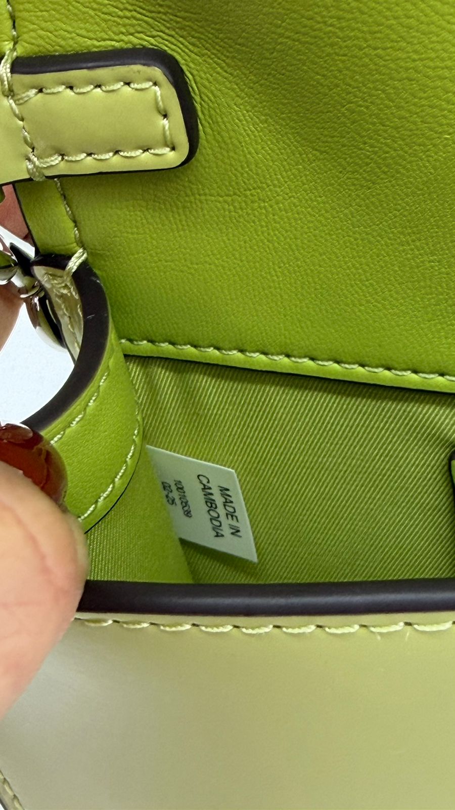 •.Em couro no verde;