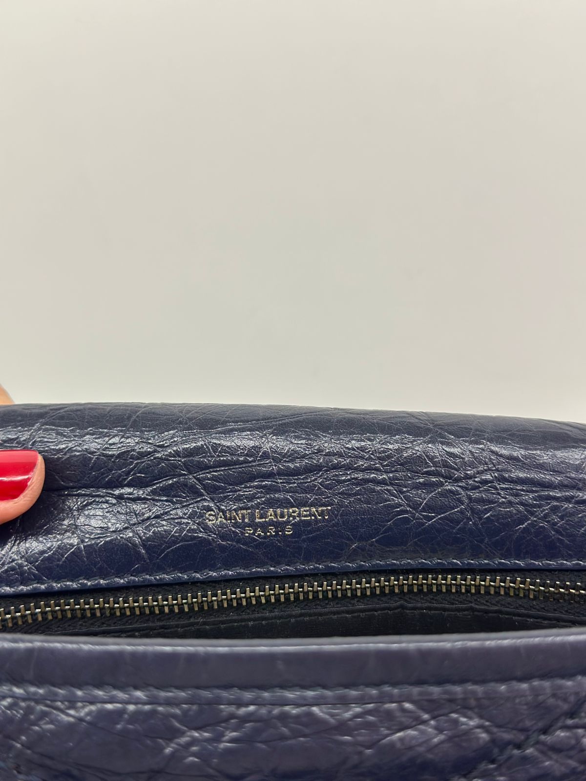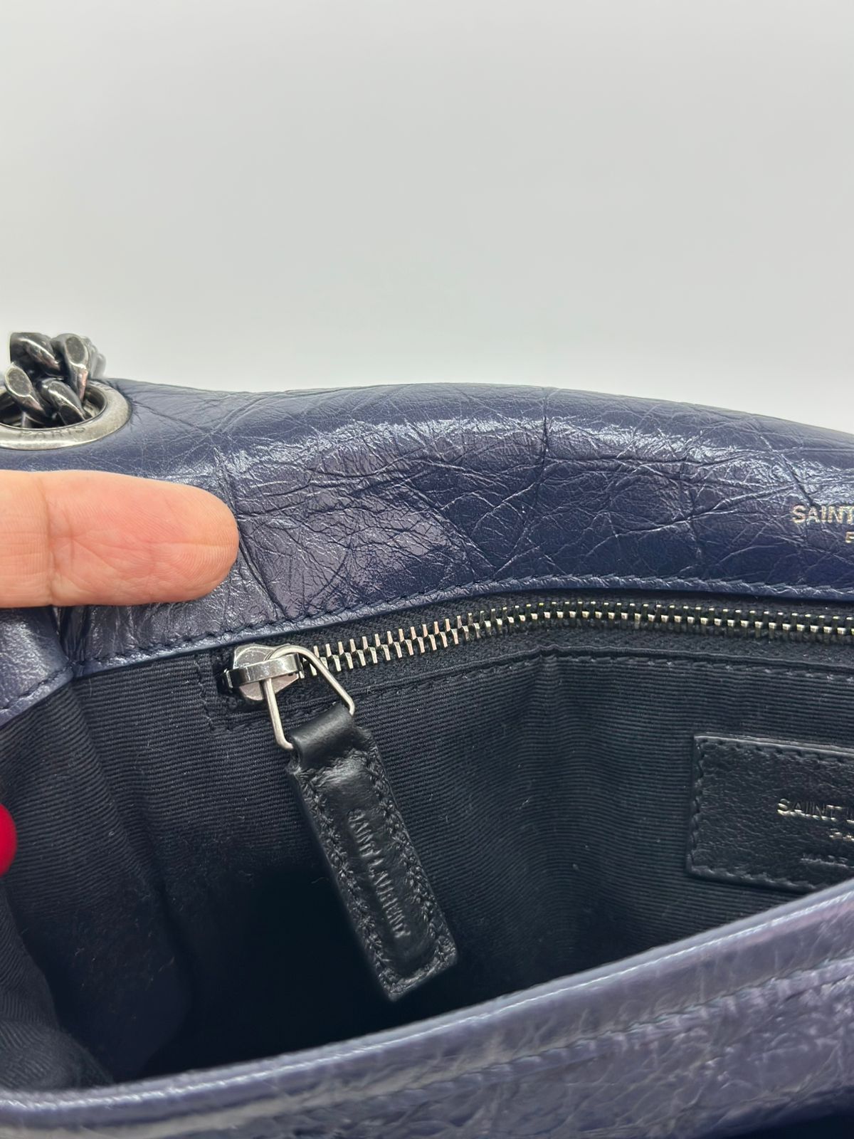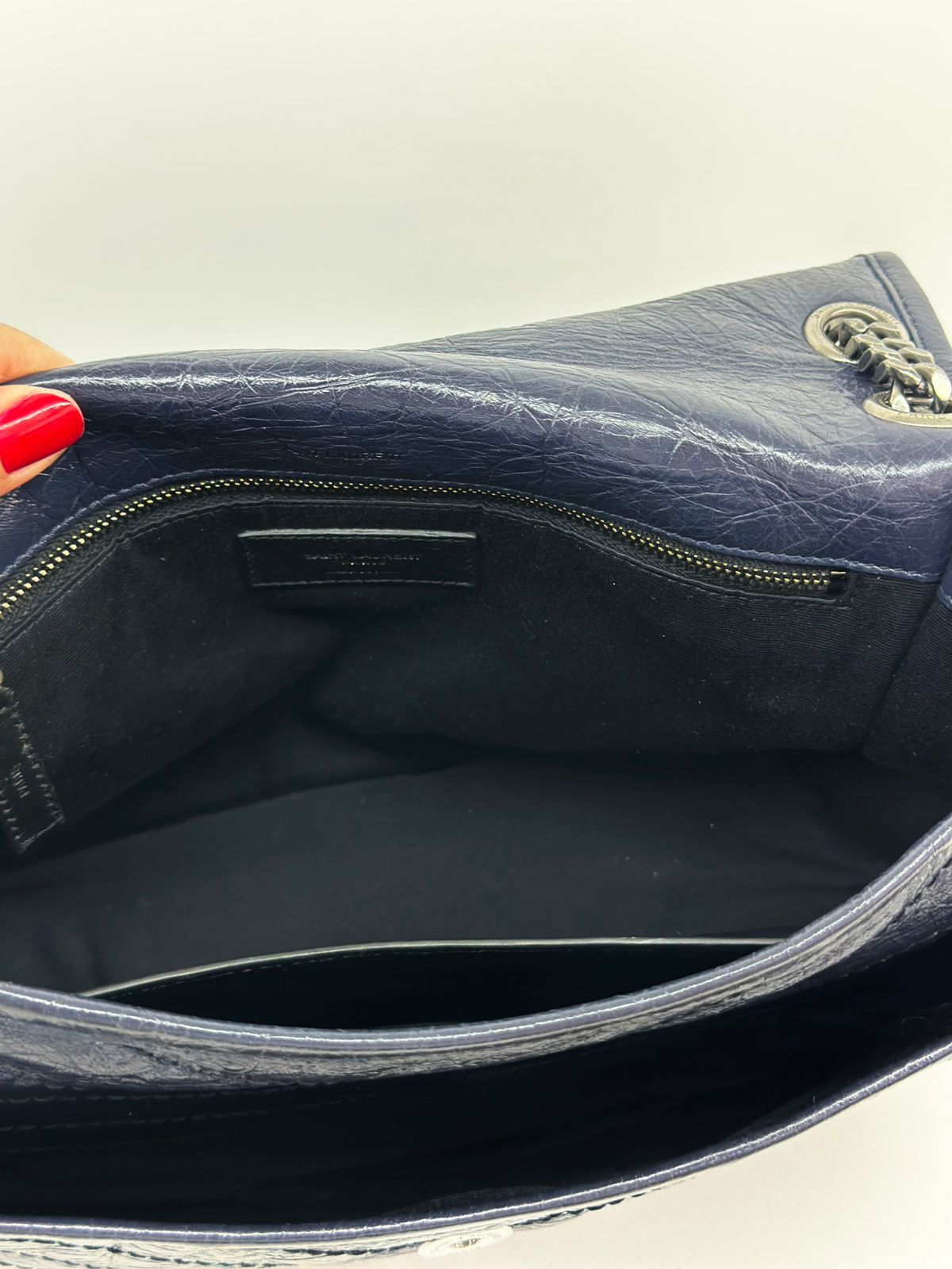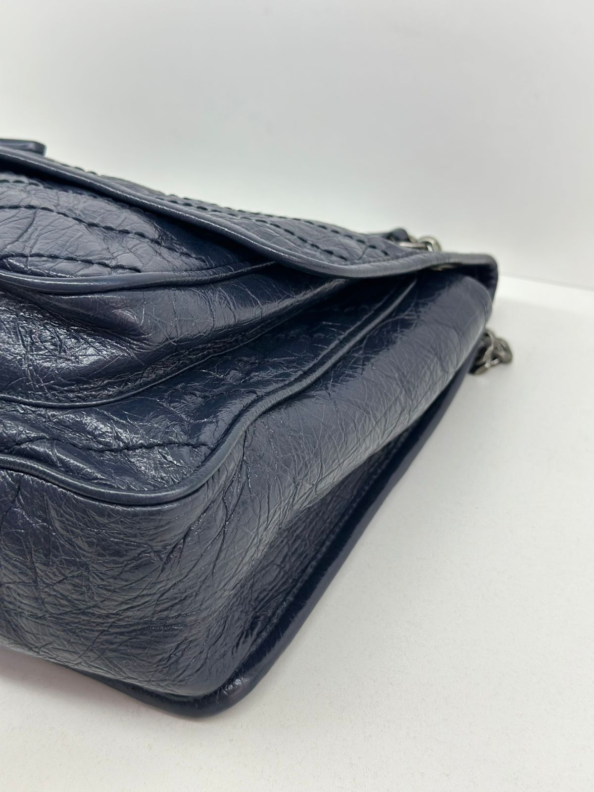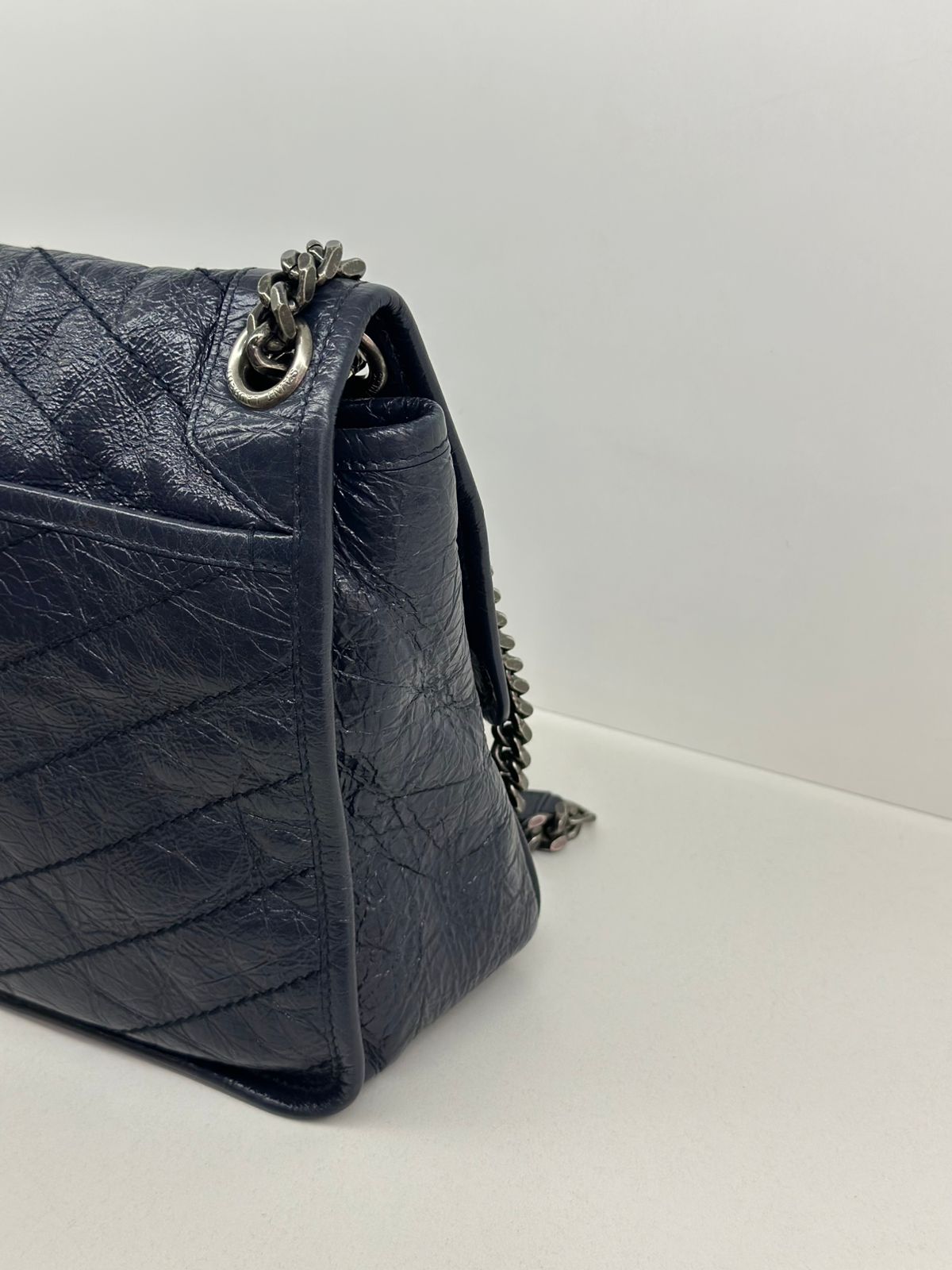 - Alça em couro e corrente.