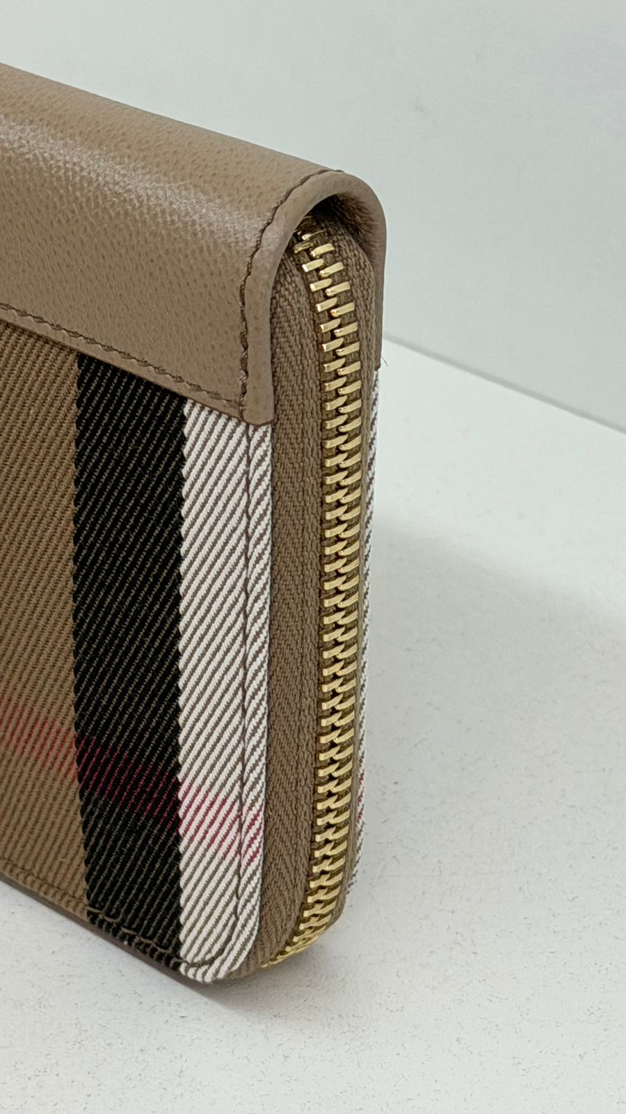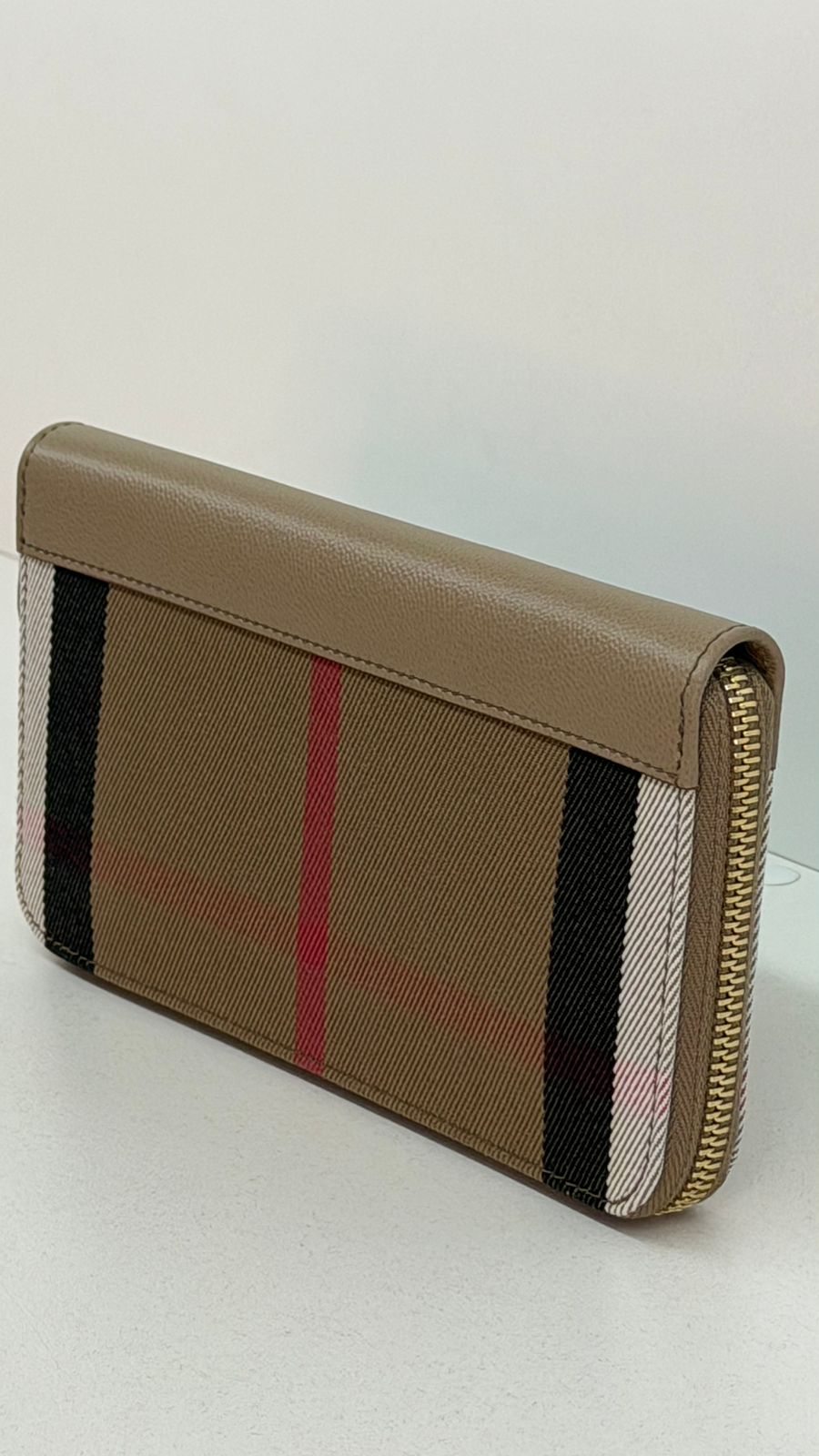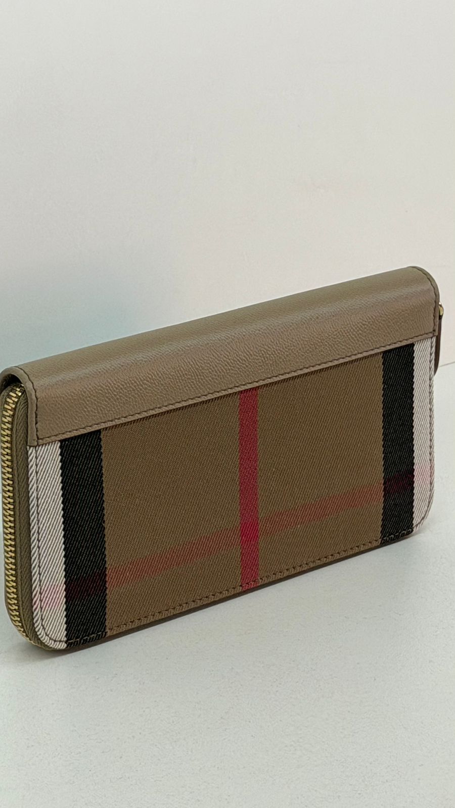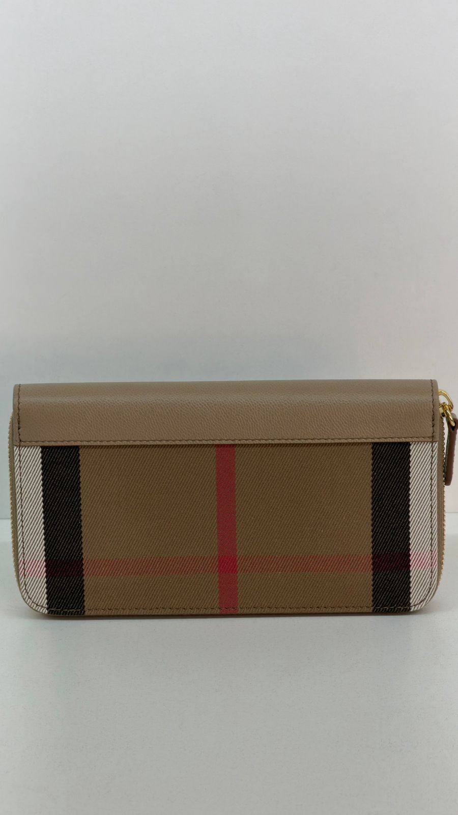 Carteira Burberry Large Zip Around House Check, confeccionada em couro calfskim no bege, fechamento por zíper, ferragens no dourado, compartimento interno duplo sendo separado por um bolso com fecho em zíper e compartimento para cartões. Elegante e atemporal, esta carteira Burberry, com o xadrez clássico da marca, com detalhes que adiciona um toque de luxo discreto, espaço interno funcional, garantindo organização e praticidade.