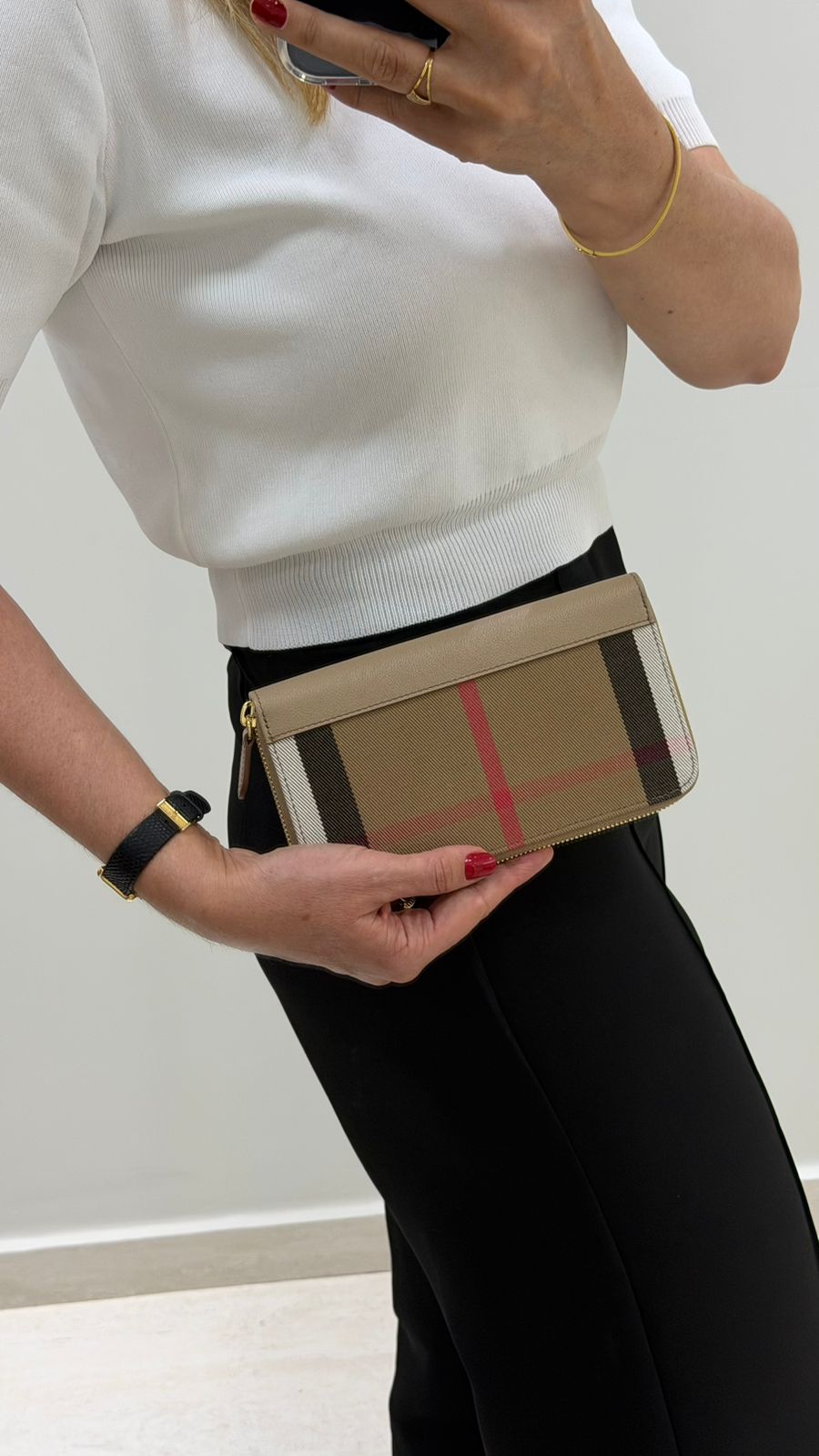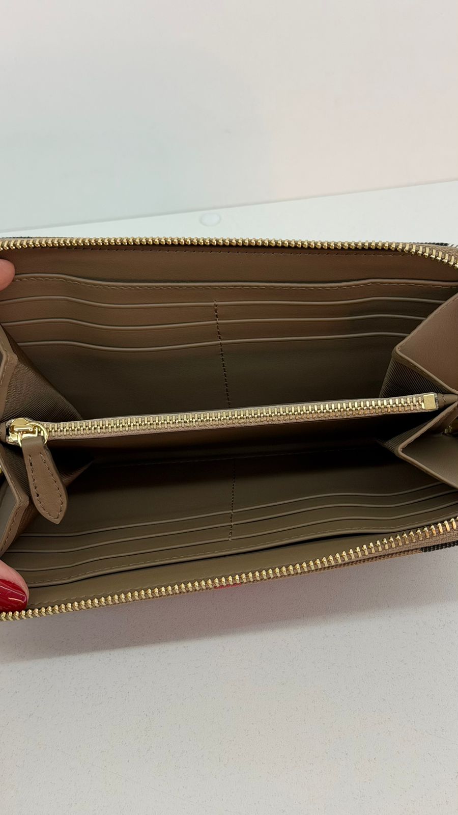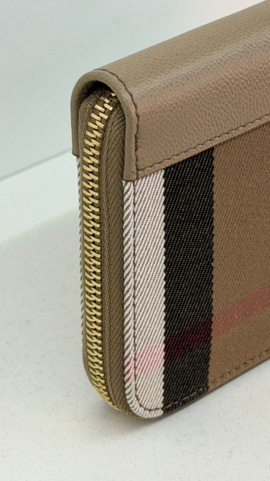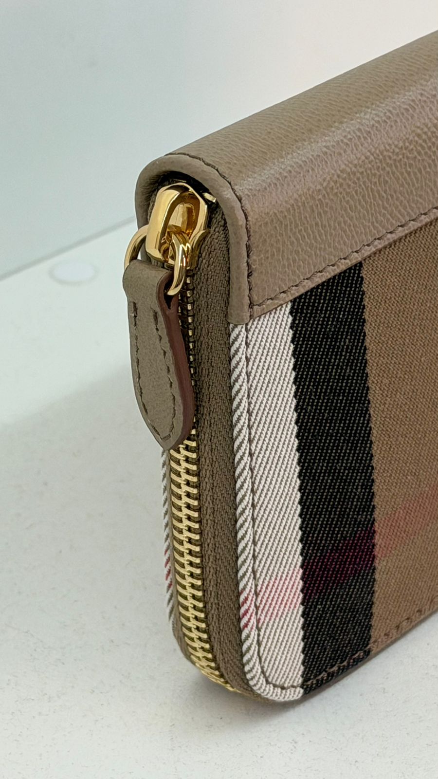 Carteira Burberry Large Zip Around House Check, confeccionada em couro calfskim no bege, fechamento por zíper, ferragens no dourado, compartimento interno duplo sendo separado por um bolso com fecho em zíper e compartimento para cartões. Elegante e atemporal, esta carteira Burberry, com o xadrez clássico da marca, com detalhes que adiciona um toque de luxo discreto, espaço interno funcional, garantindo organização e praticidade.