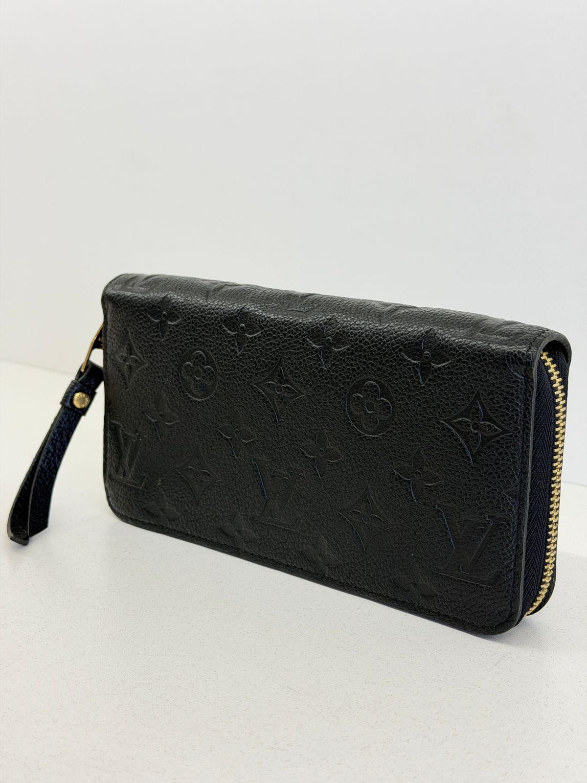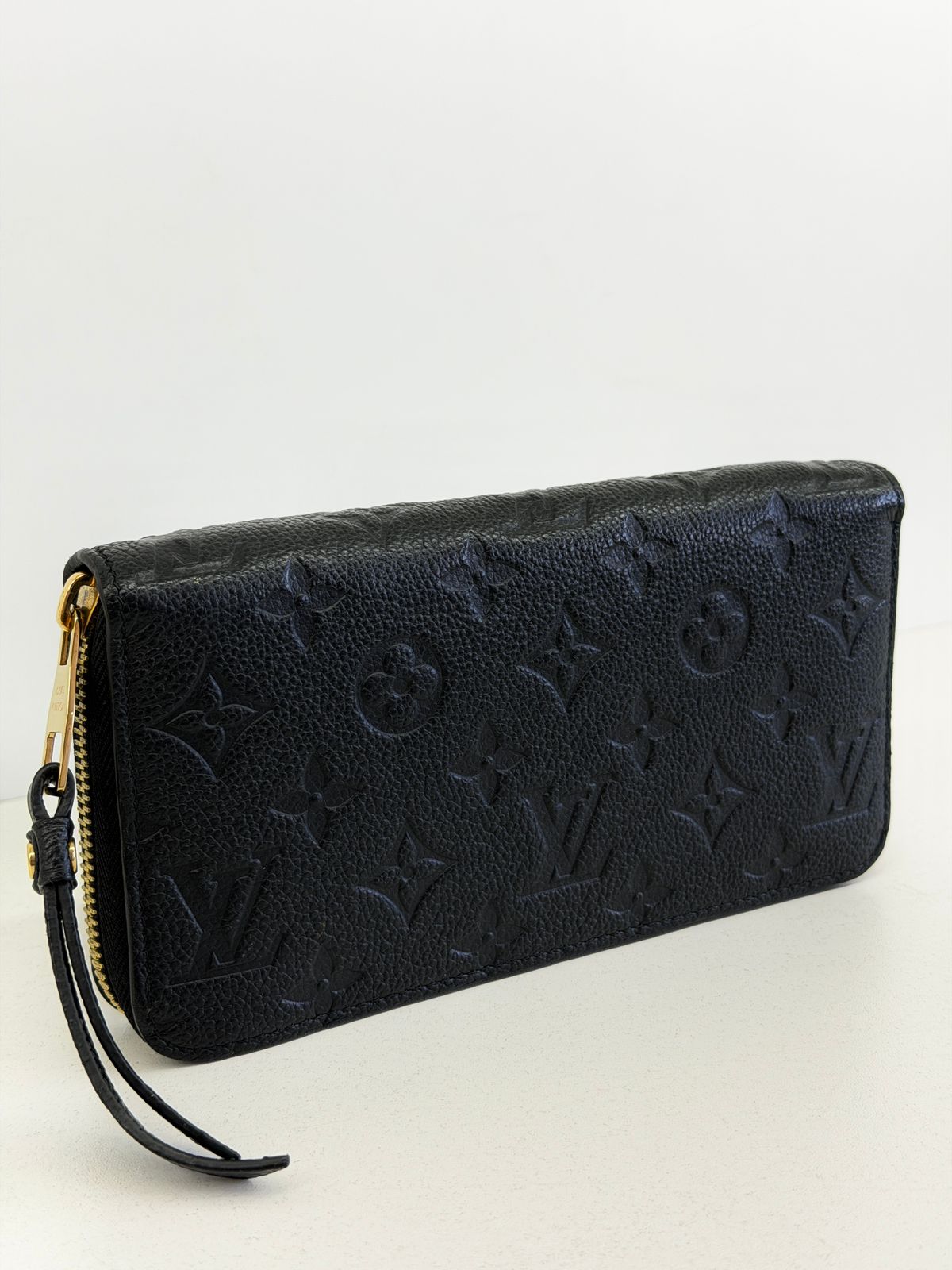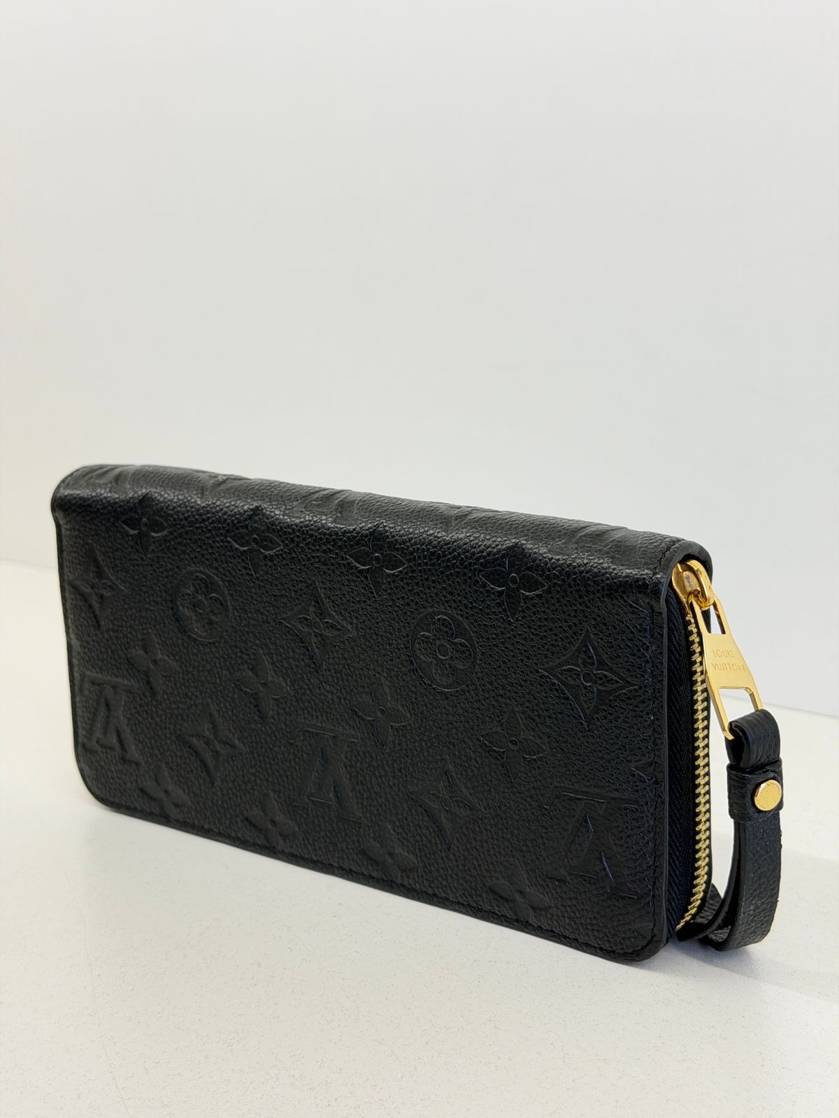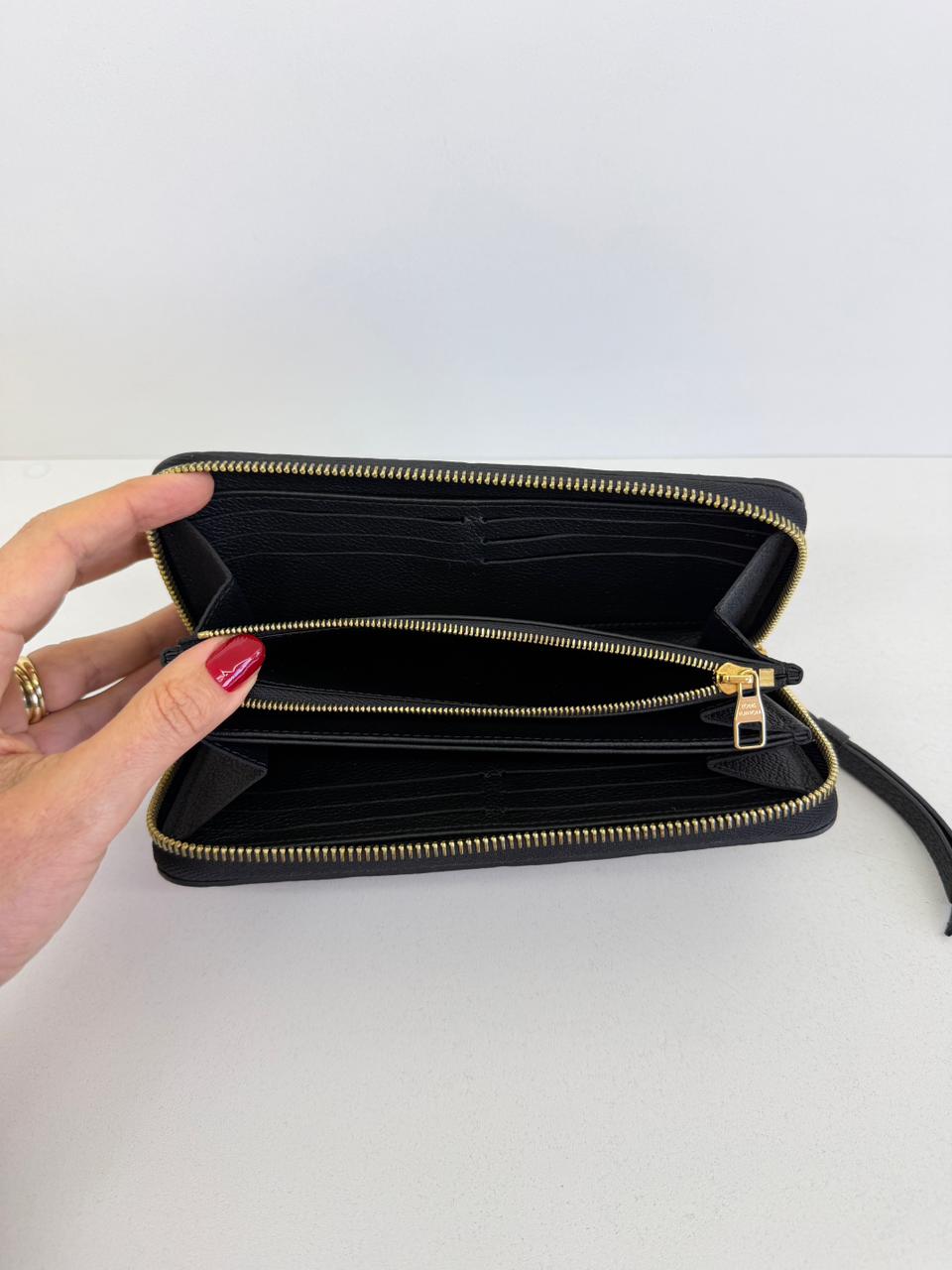Carteira Louis Vuitton Zippy Empreinte, confeccionada em couro no preto, estampa em canvas monogram Empreinte gravado em alto relevo, fechamento por zíper, ferragens no dourado, compartimento interno duplo sendo separado por um bolso com fecho em zíper e compartimento para cartões. Perfeita para ser utilizada, dentro e fora da bolsa, sofisticação que nunca sai de moda.