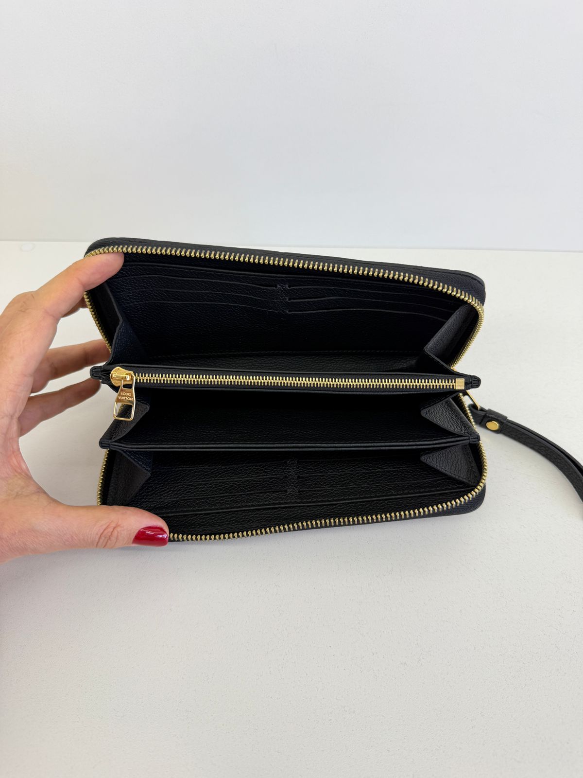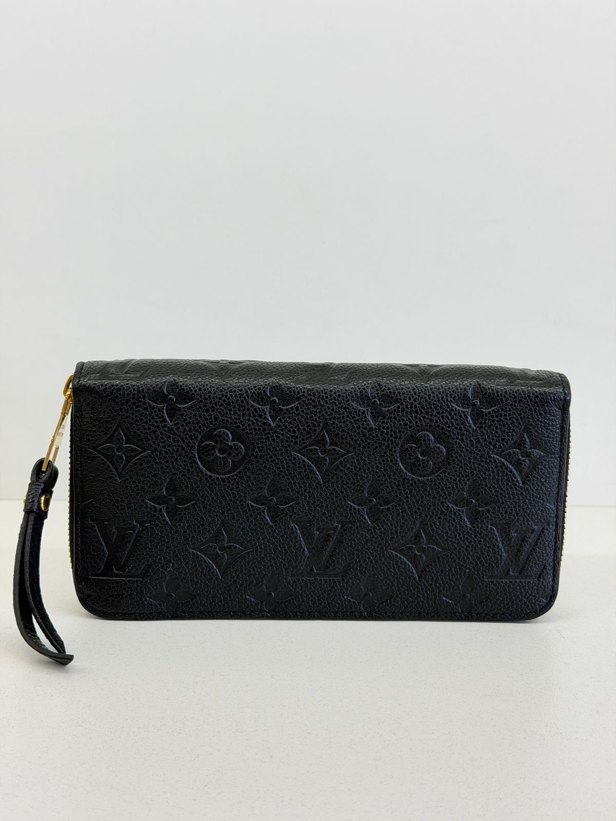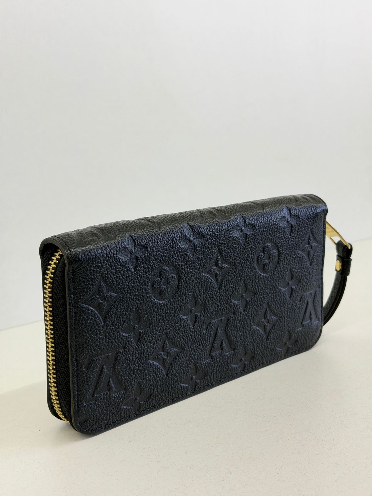 Carteira Louis Vuitton Zippy Empreinte, confeccionada em couro no preto, estampa em canvas monogram Empreinte gravado em alto relevo, fechamento por zíper, ferragens no dourado, compartimento interno duplo sendo separado por um bolso com fecho em zíper e compartimento para cartões. Perfeita para ser utilizada, dentro e fora da bolsa, sofisticação que nunca sai de moda.