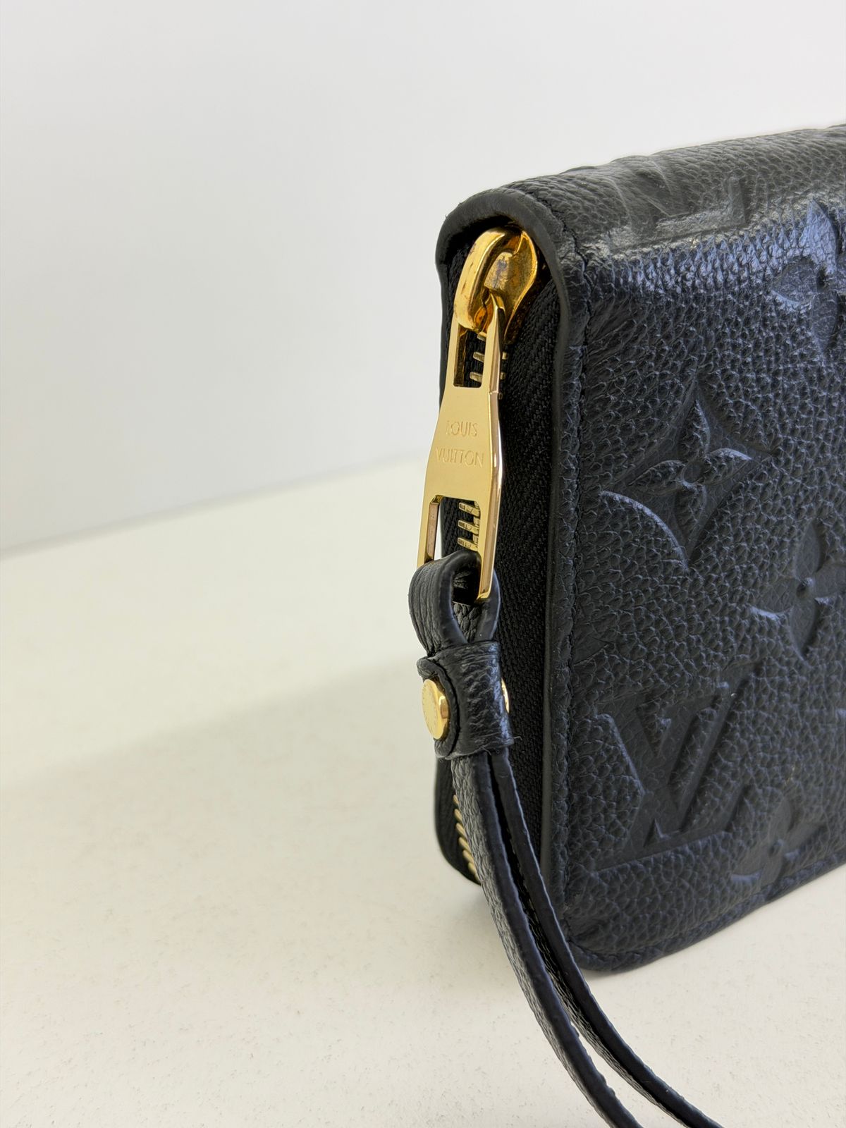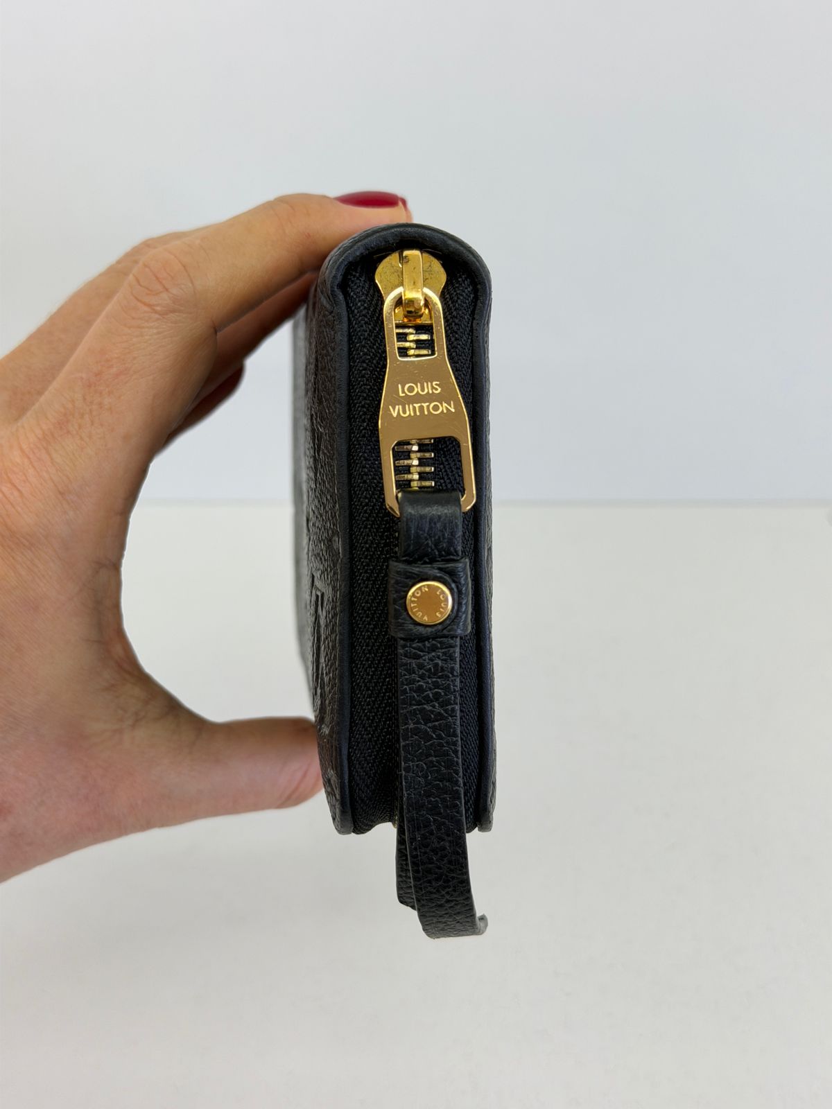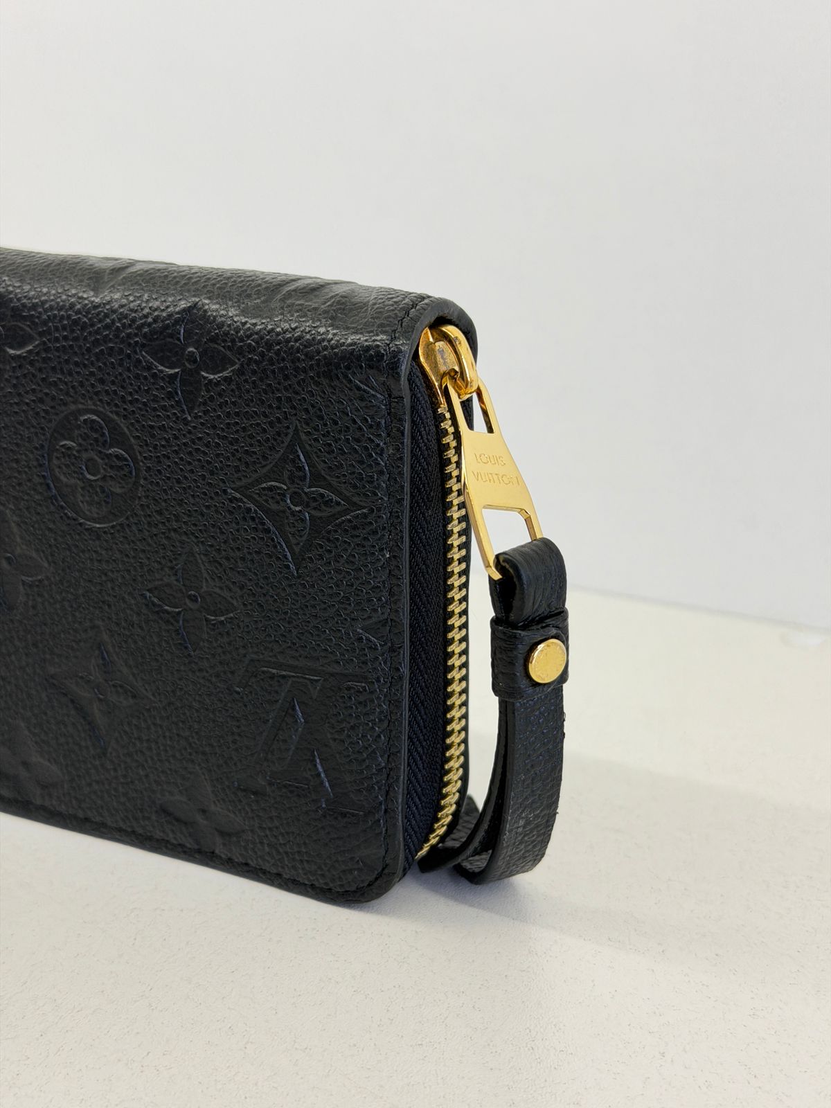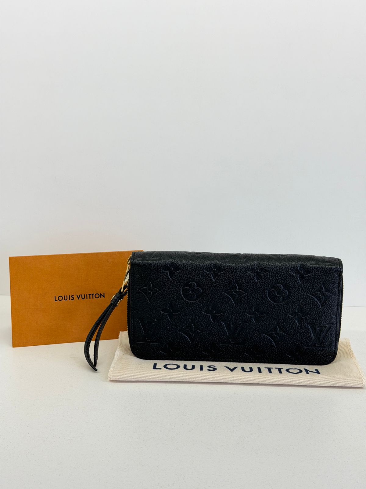 Carteira Louis Vuitton Zippy Empreinte, confeccionada em couro no preto, estampa em canvas monogram Empreinte gravado em alto relevo, fechamento por zíper, ferragens no dourado, compartimento interno duplo sendo separado por um bolso com fecho em zíper e compartimento para cartões. Perfeita para ser utilizada, dentro e fora da bolsa, sofisticação que nunca sai de moda.