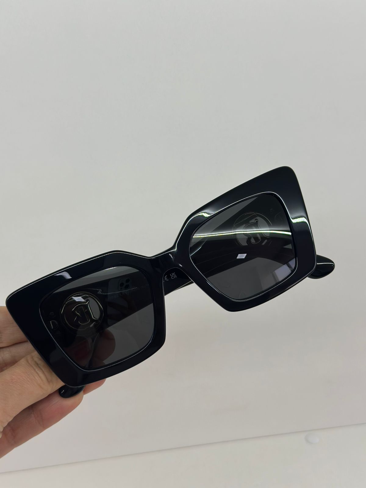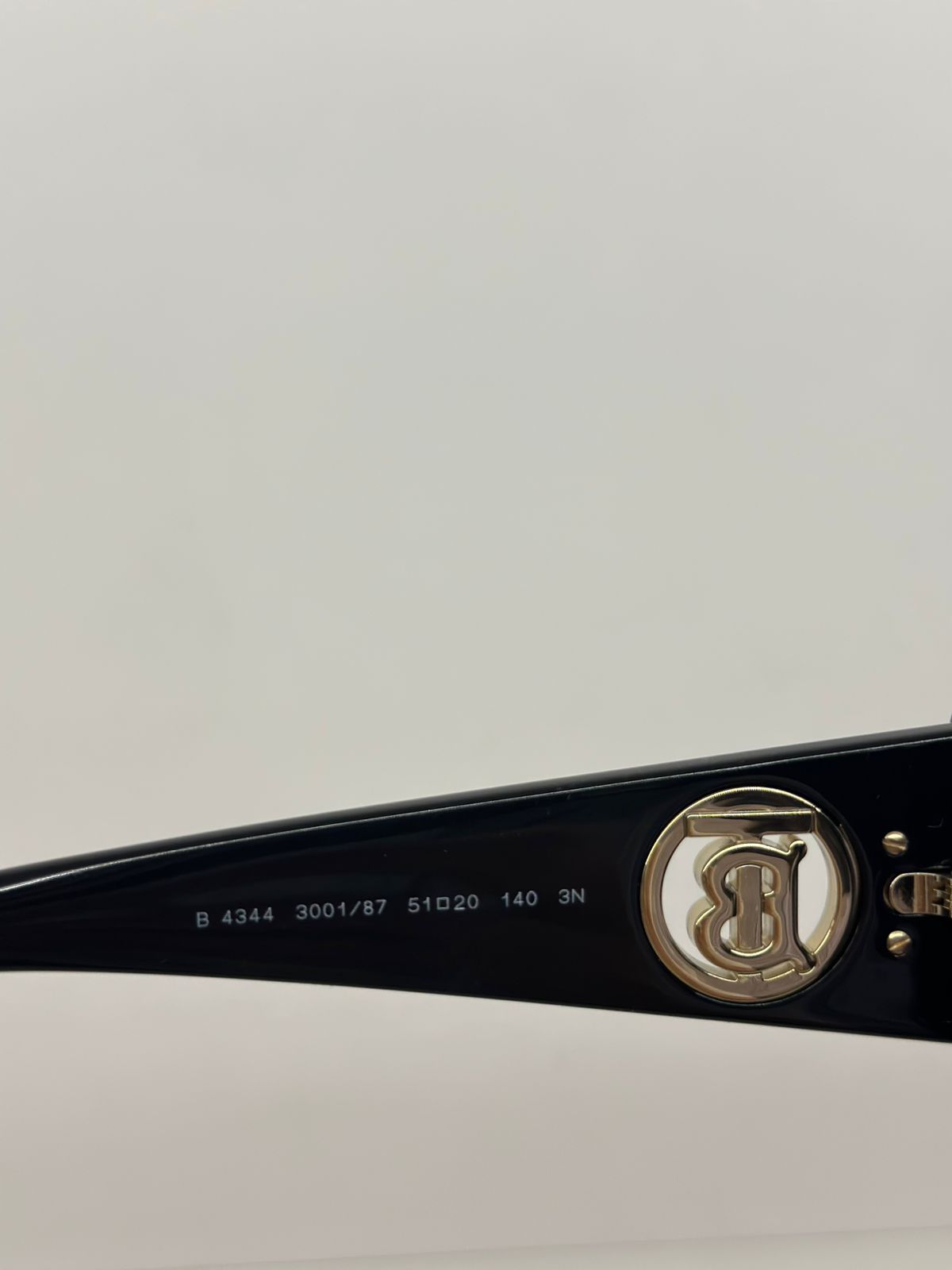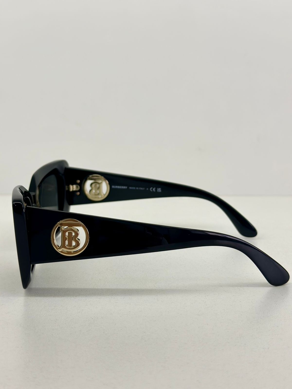 Óculos de sol Burberry Daisey, feminino, confeccionado no acetato na cor preta, hastes grossas com detalhe em metal com as iniciais da marca, armação quadrada com base arredondada e lentes pretas. Versão modernas dos anos 60, um óculos que traz feminilidade, elegância.